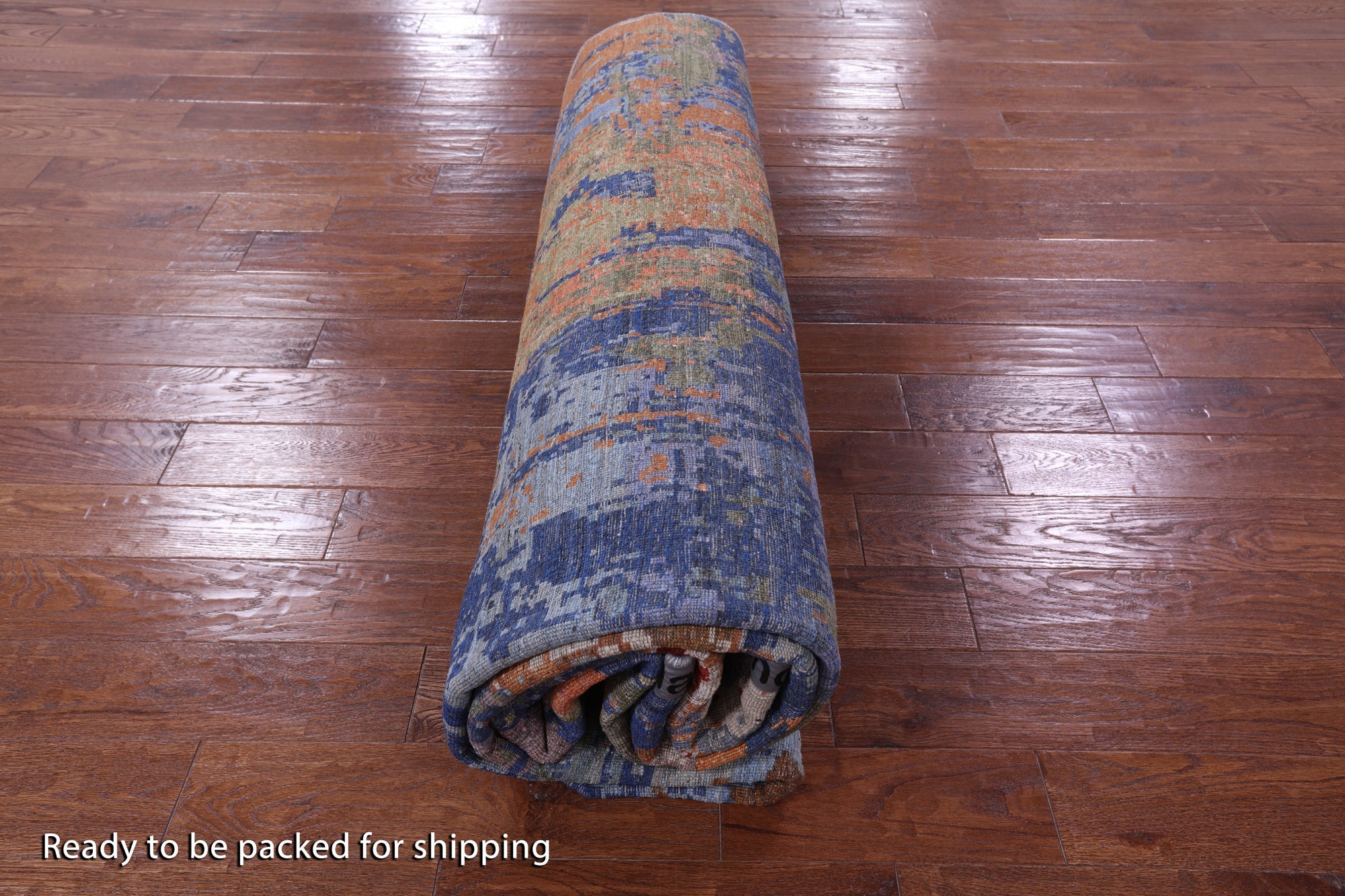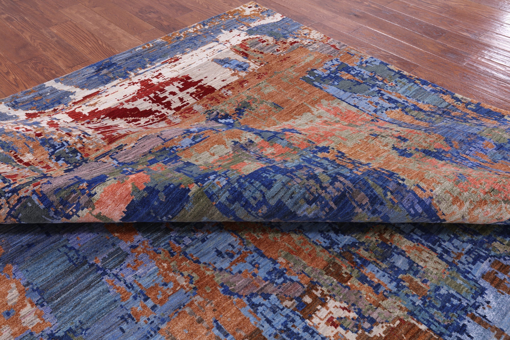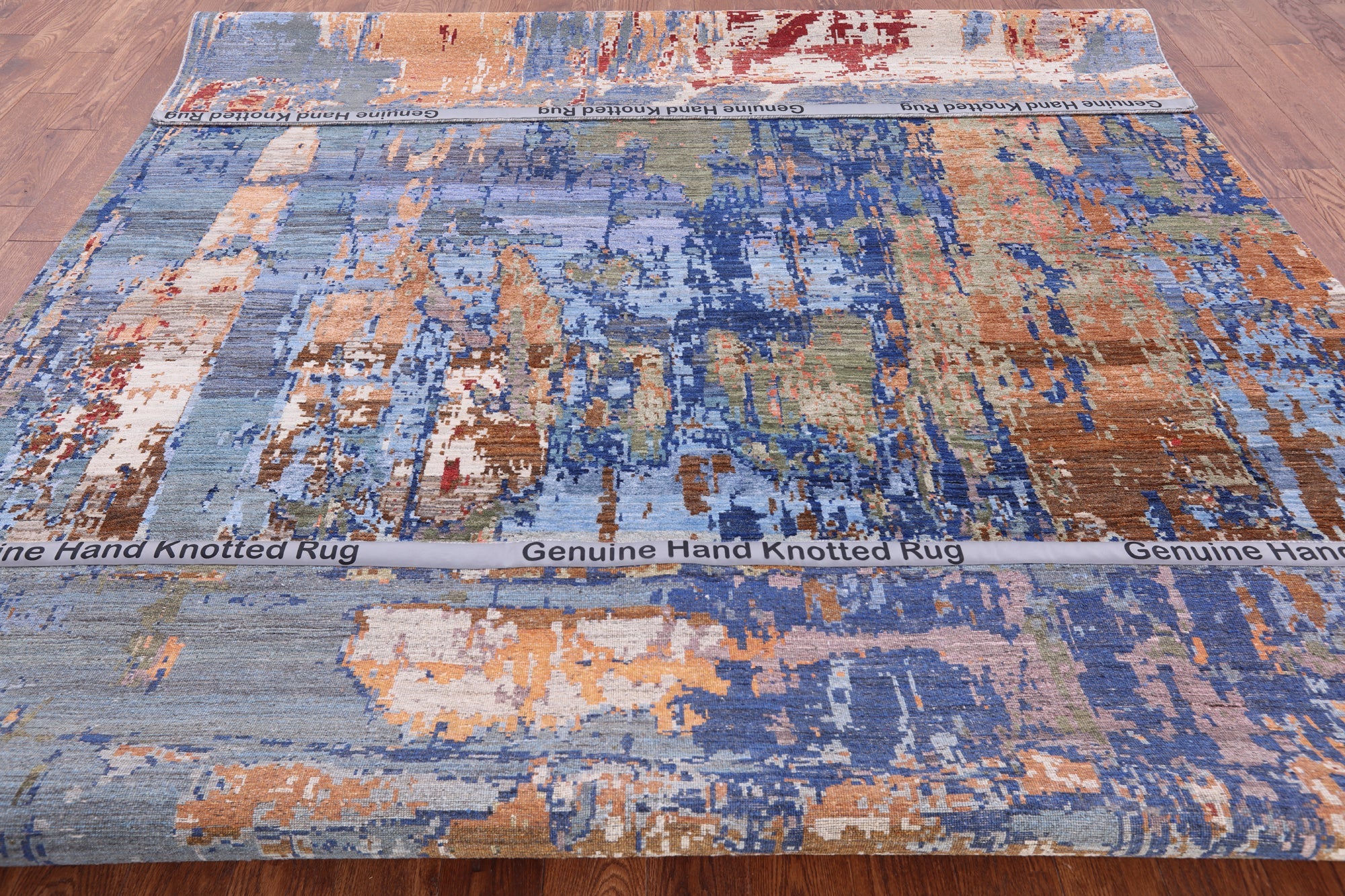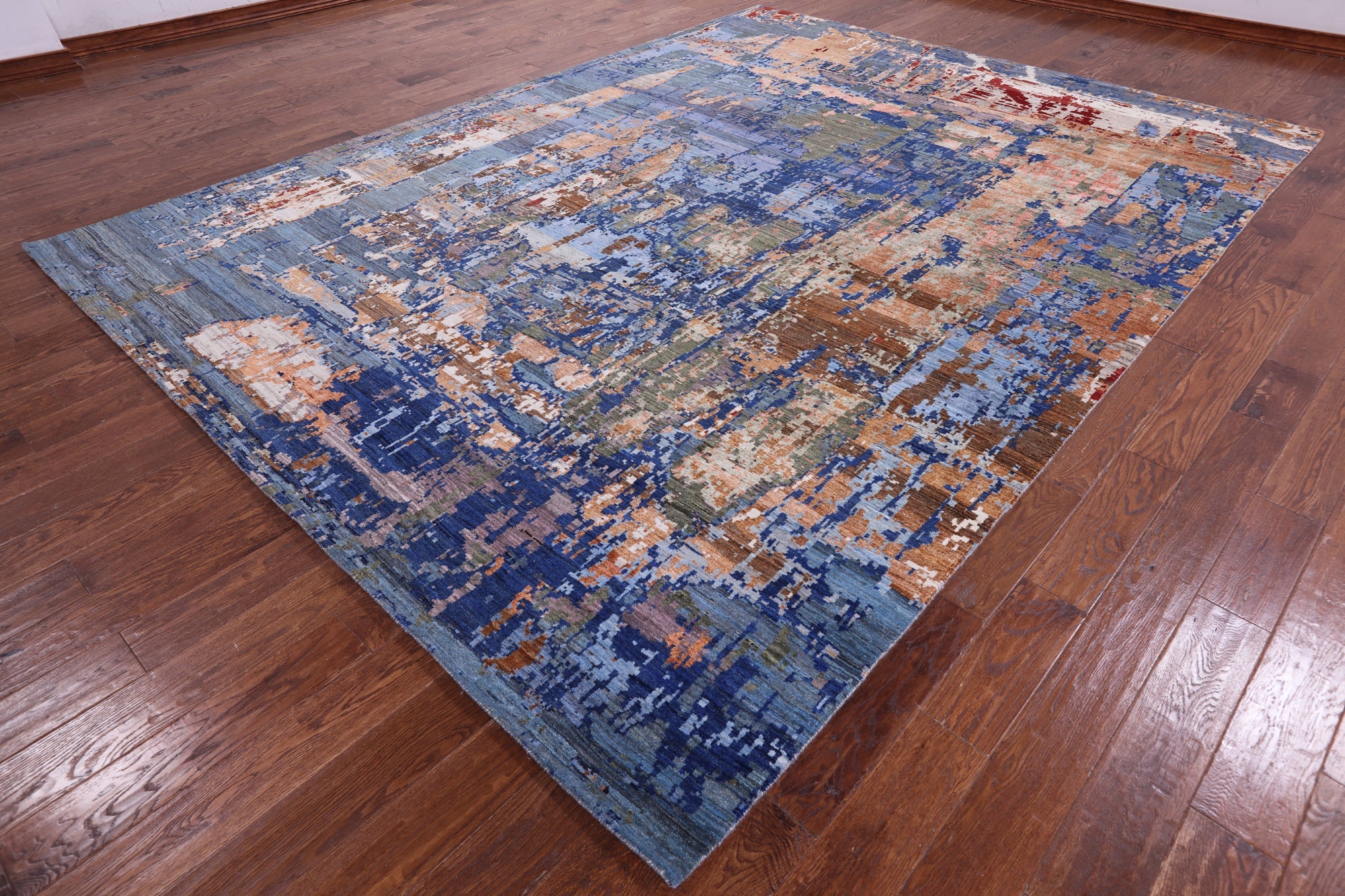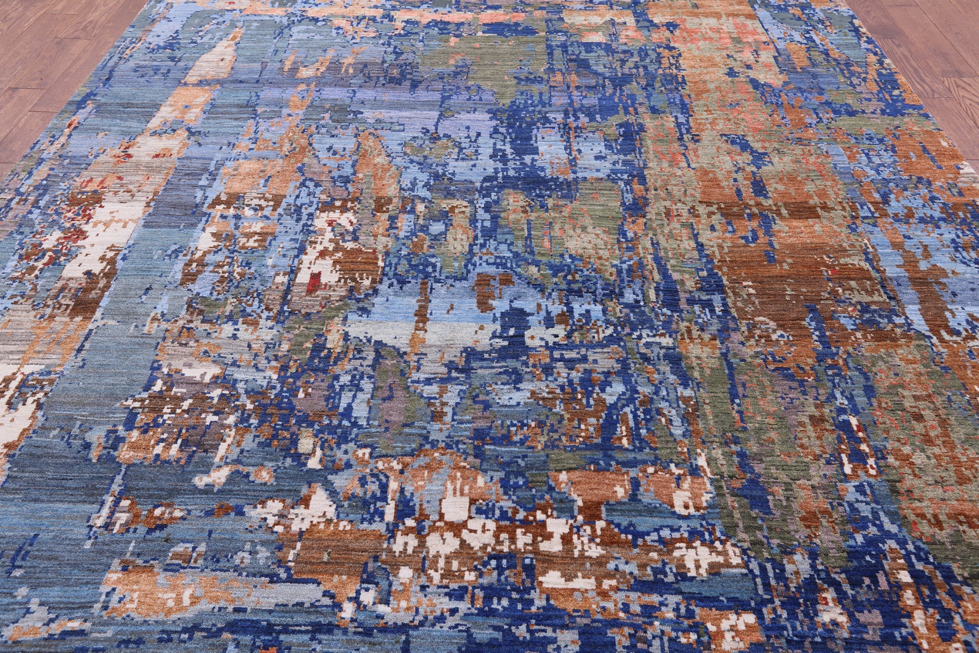 9' 0" X 11' 11" Abstract Hand Knotted Wool & Silk Rug - Q8780