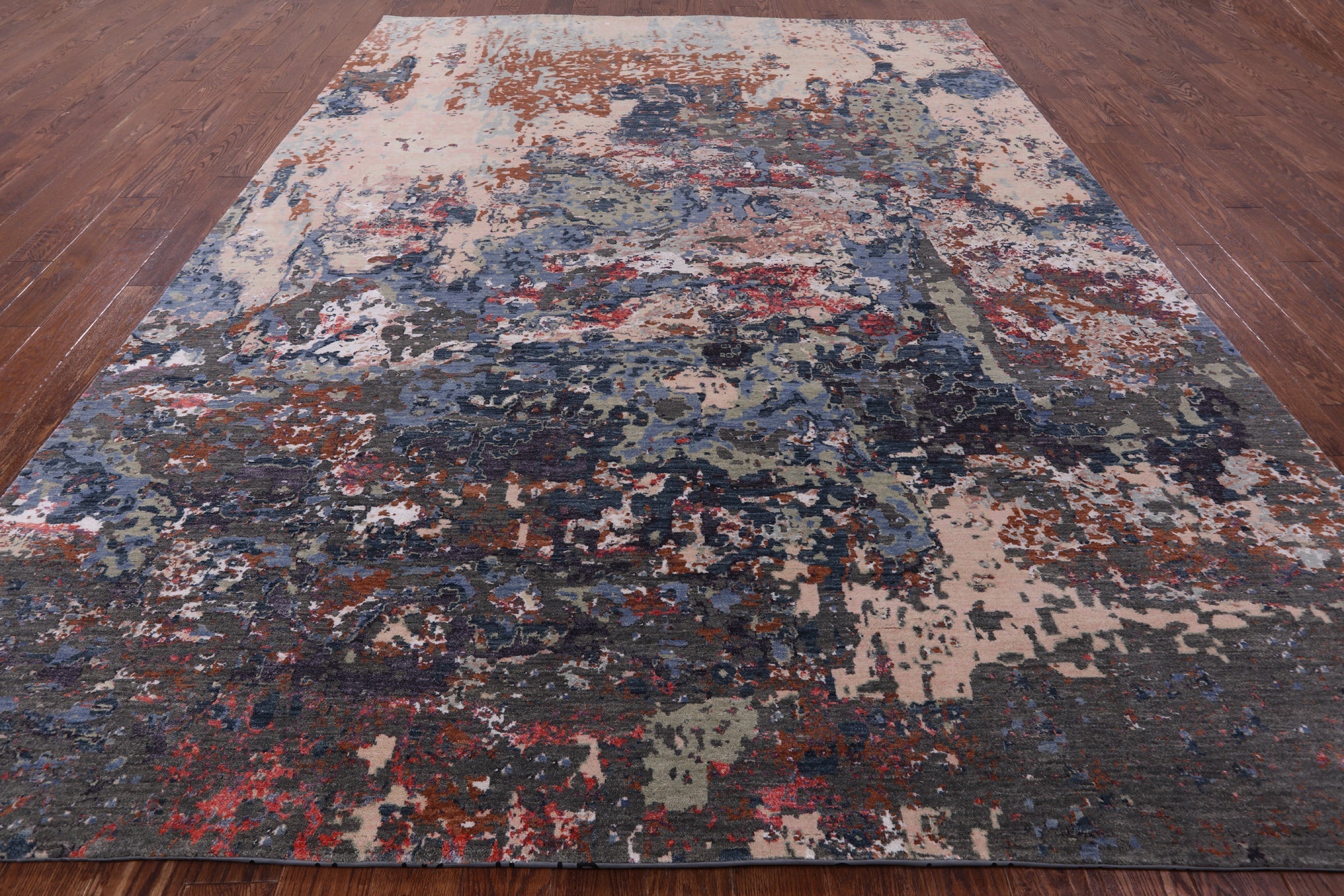 9' 0" X 11' 11" Abstract Handmade Wool & Silk Area Rug - Q6336 is backordered and will ship as soon as it is back in stock.