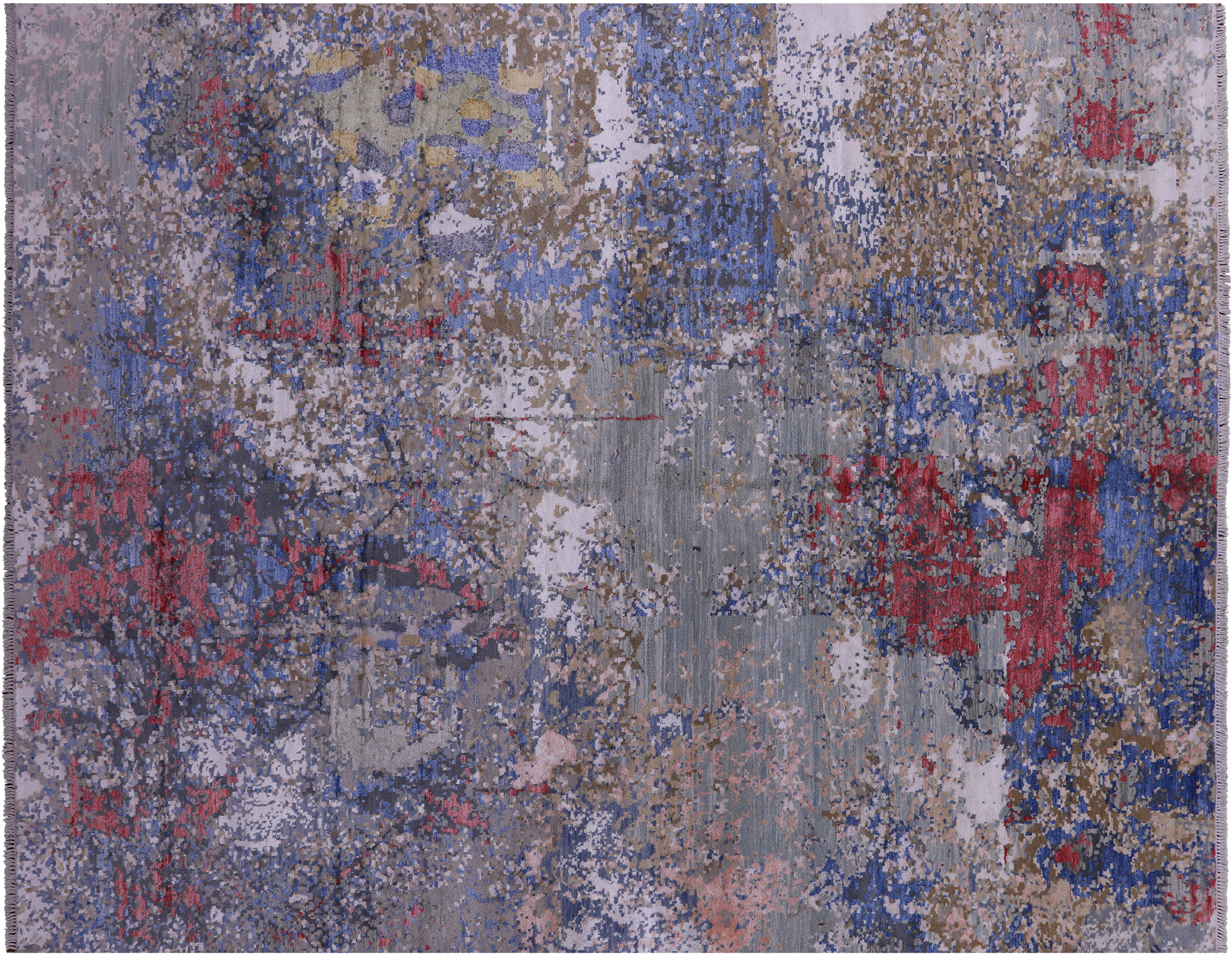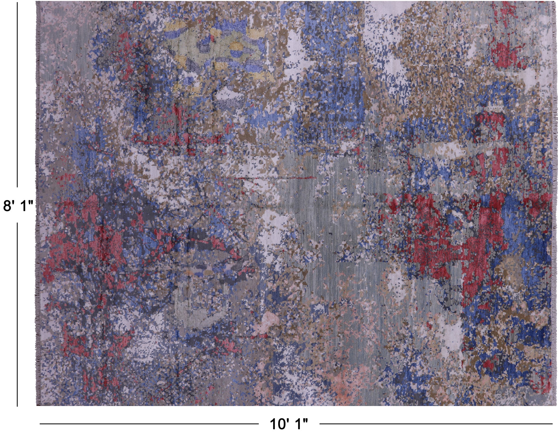 Abstract Wool & Silk Hand Knotted Rug 8' 1" X 10' 1" - Q12094