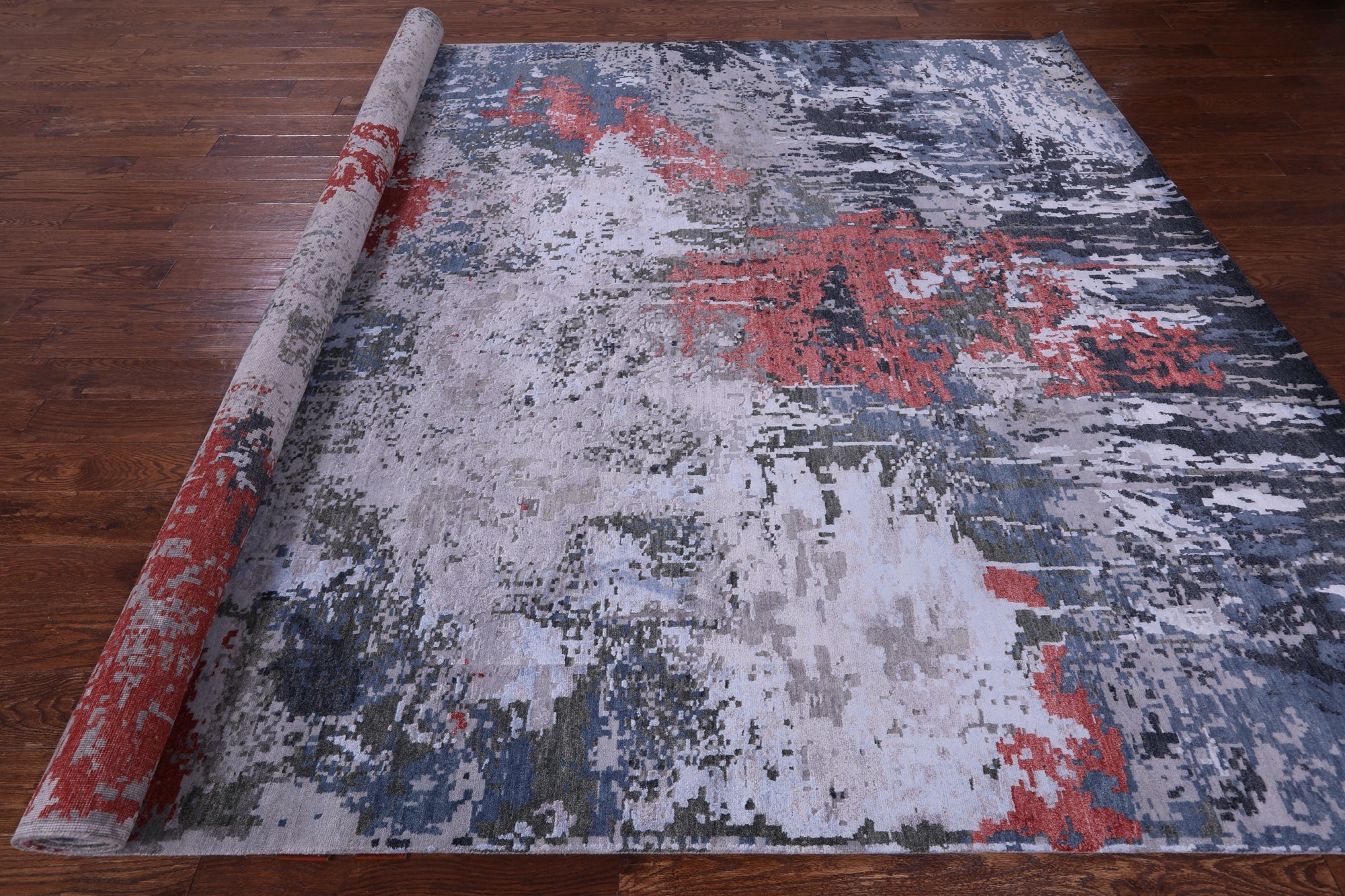 8' 11" X 12' 1" Abstract Wool & Silk Hand Knotted Rug - Q14866