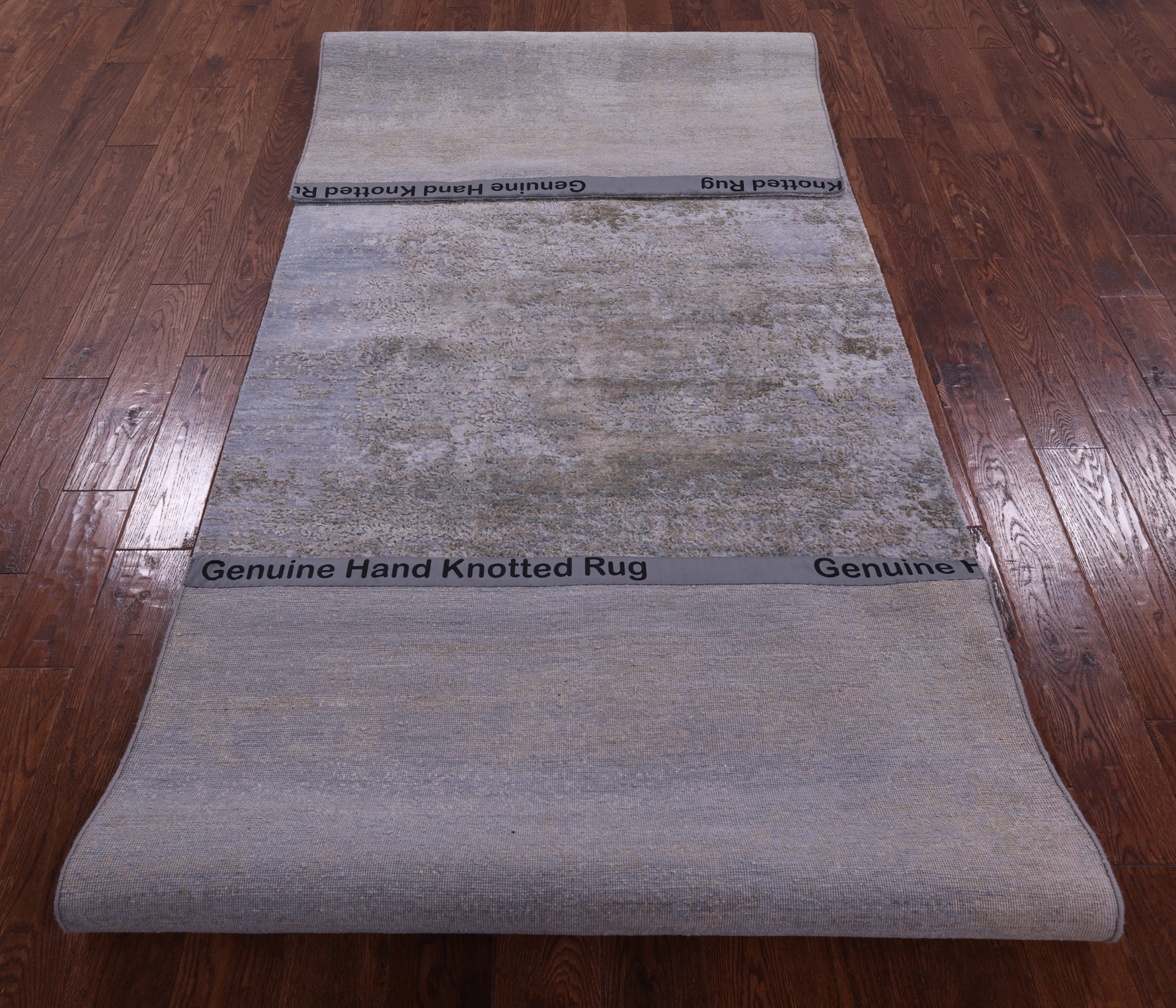 Hand Knotted Modern Wool & Silk Runner Rug 4' 0" X 12' 0" - Q9075