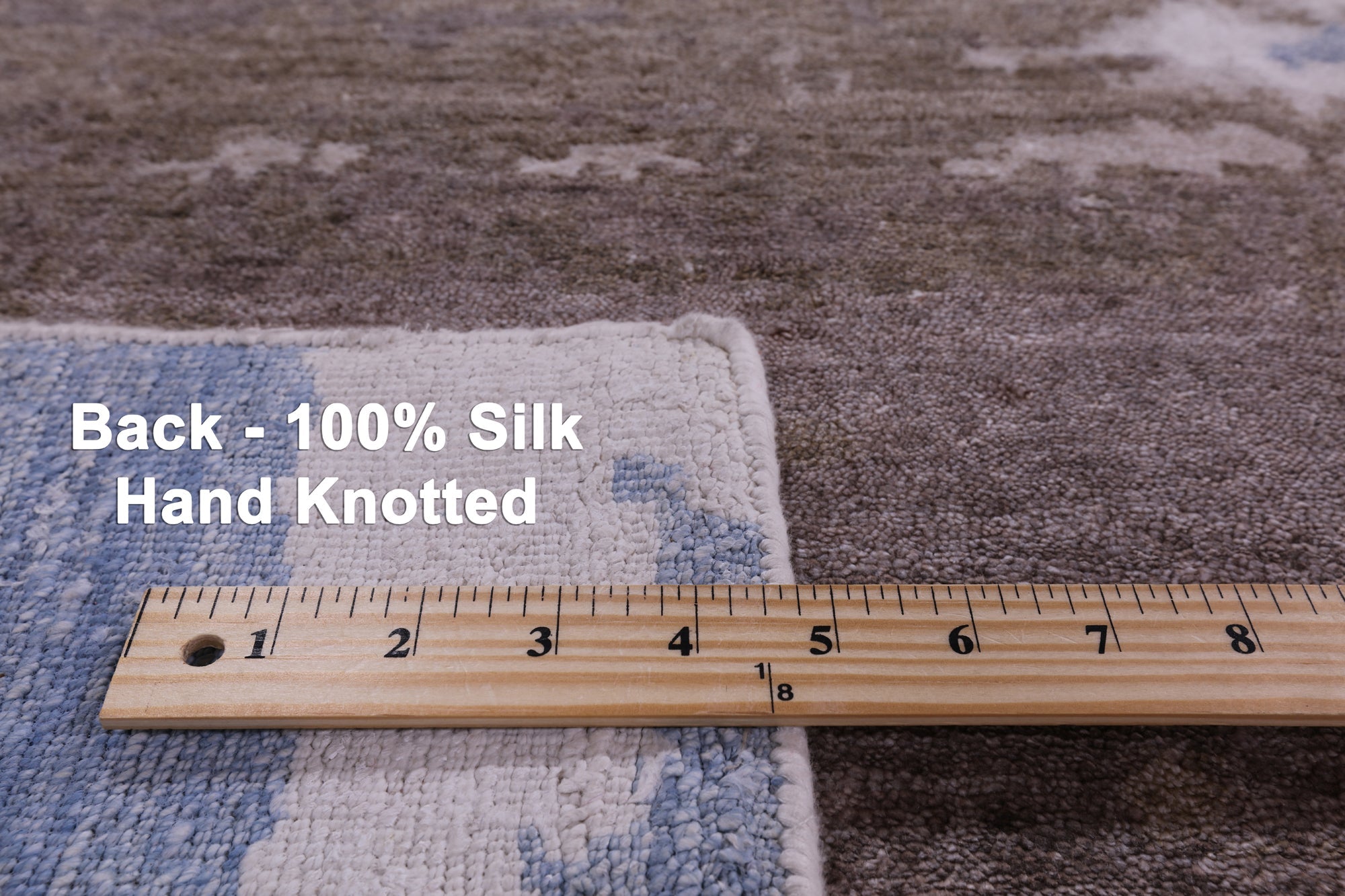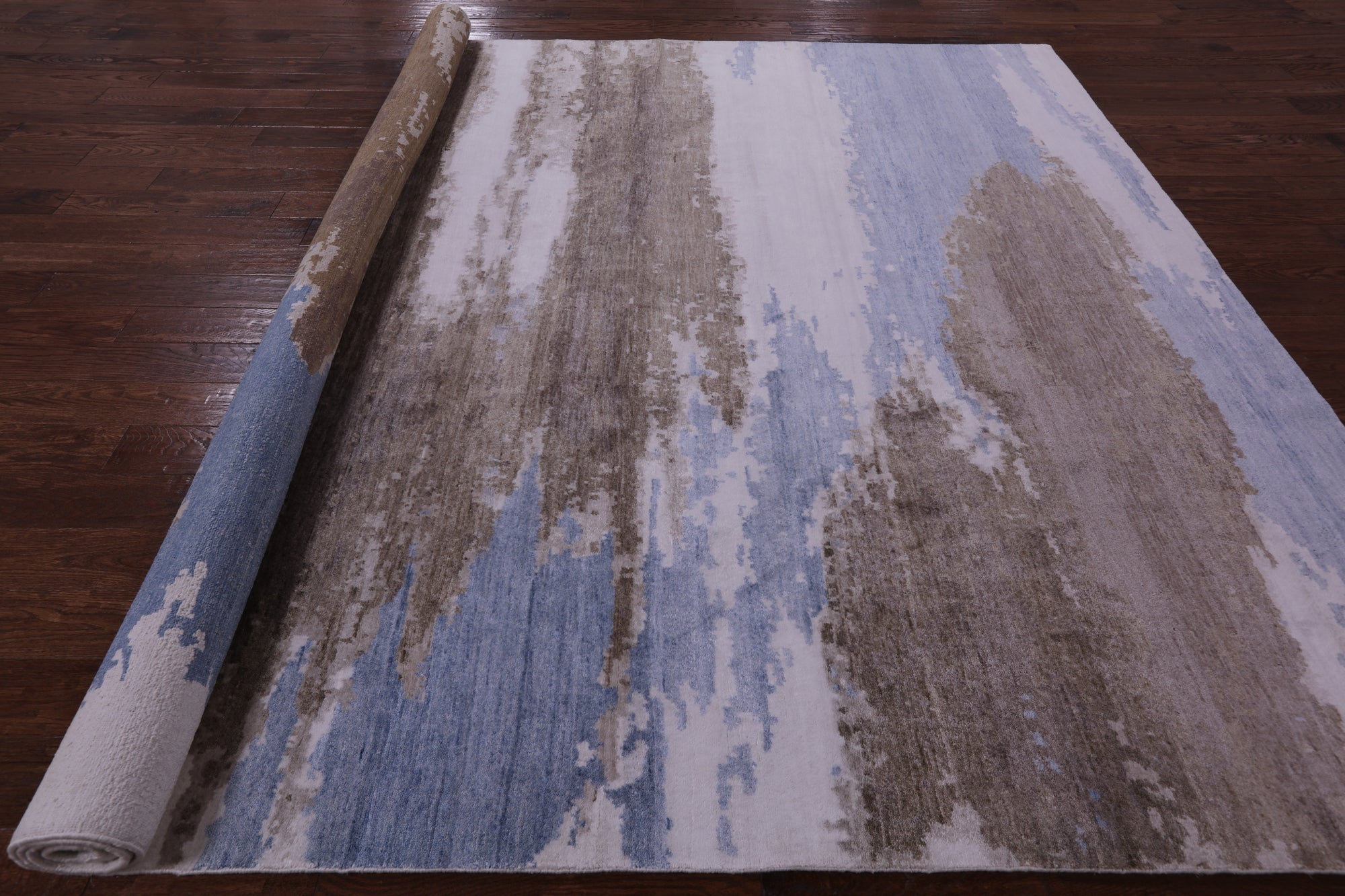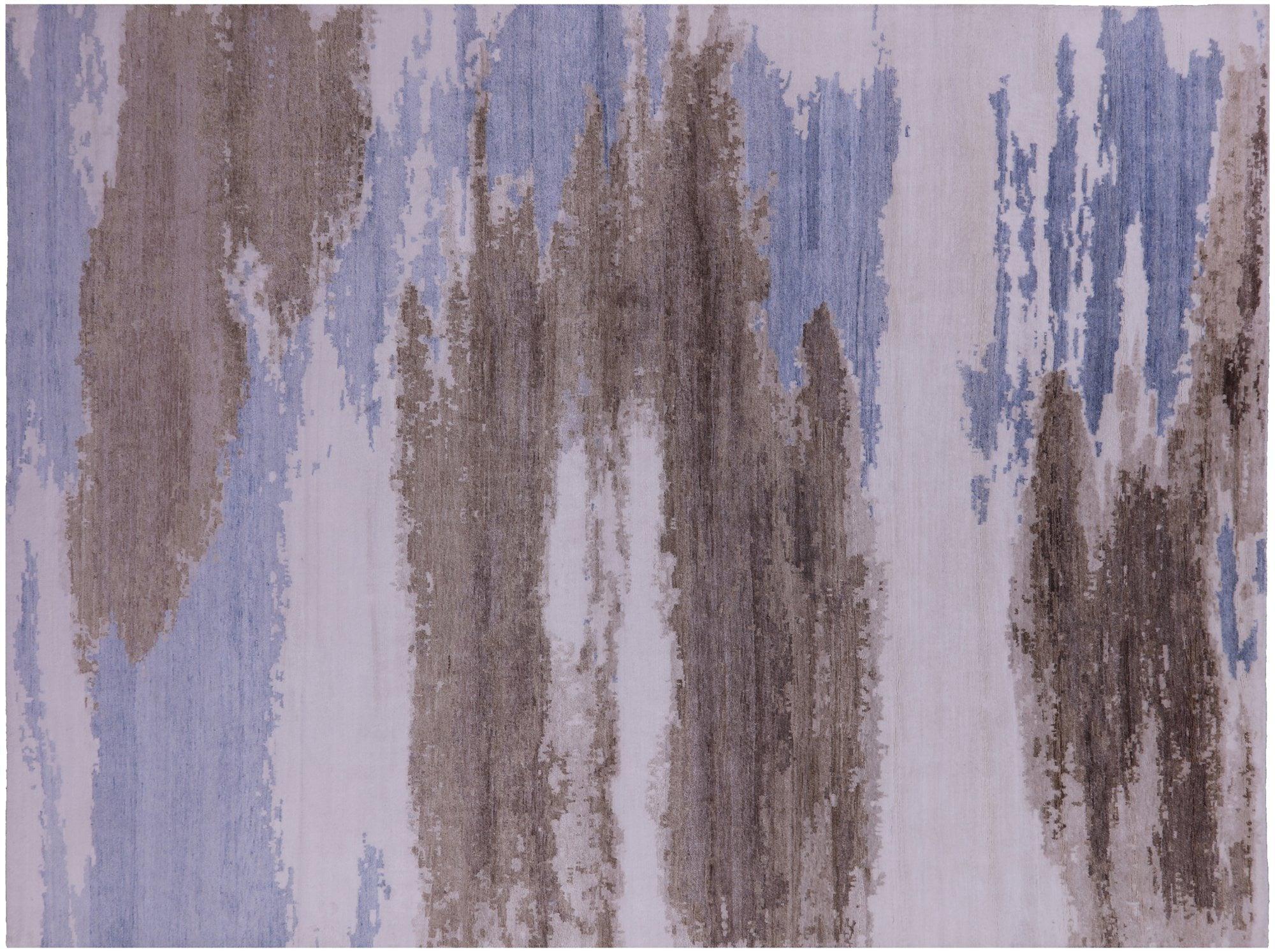 Modern Abstract Silk Hand Knotted Rug 9' 1" X 11' 11" - Q5885