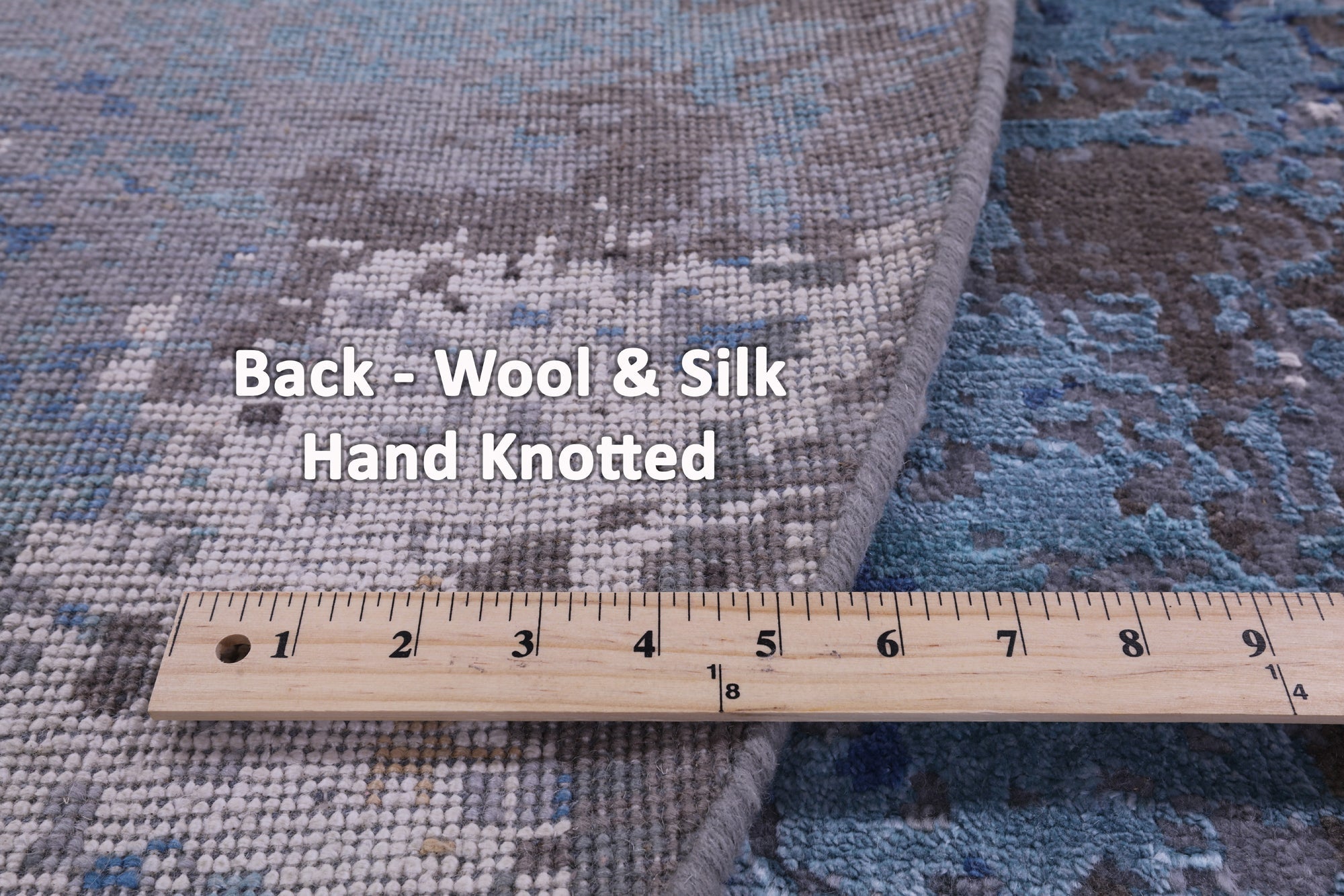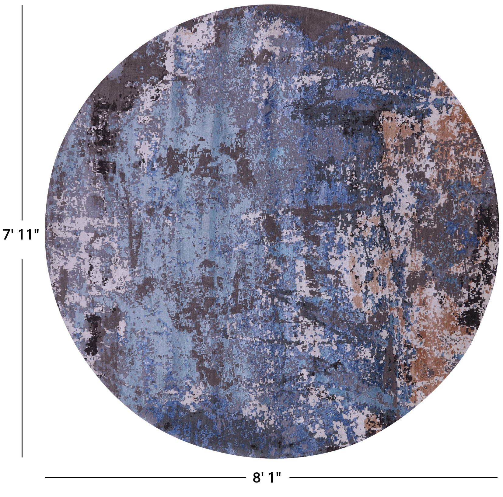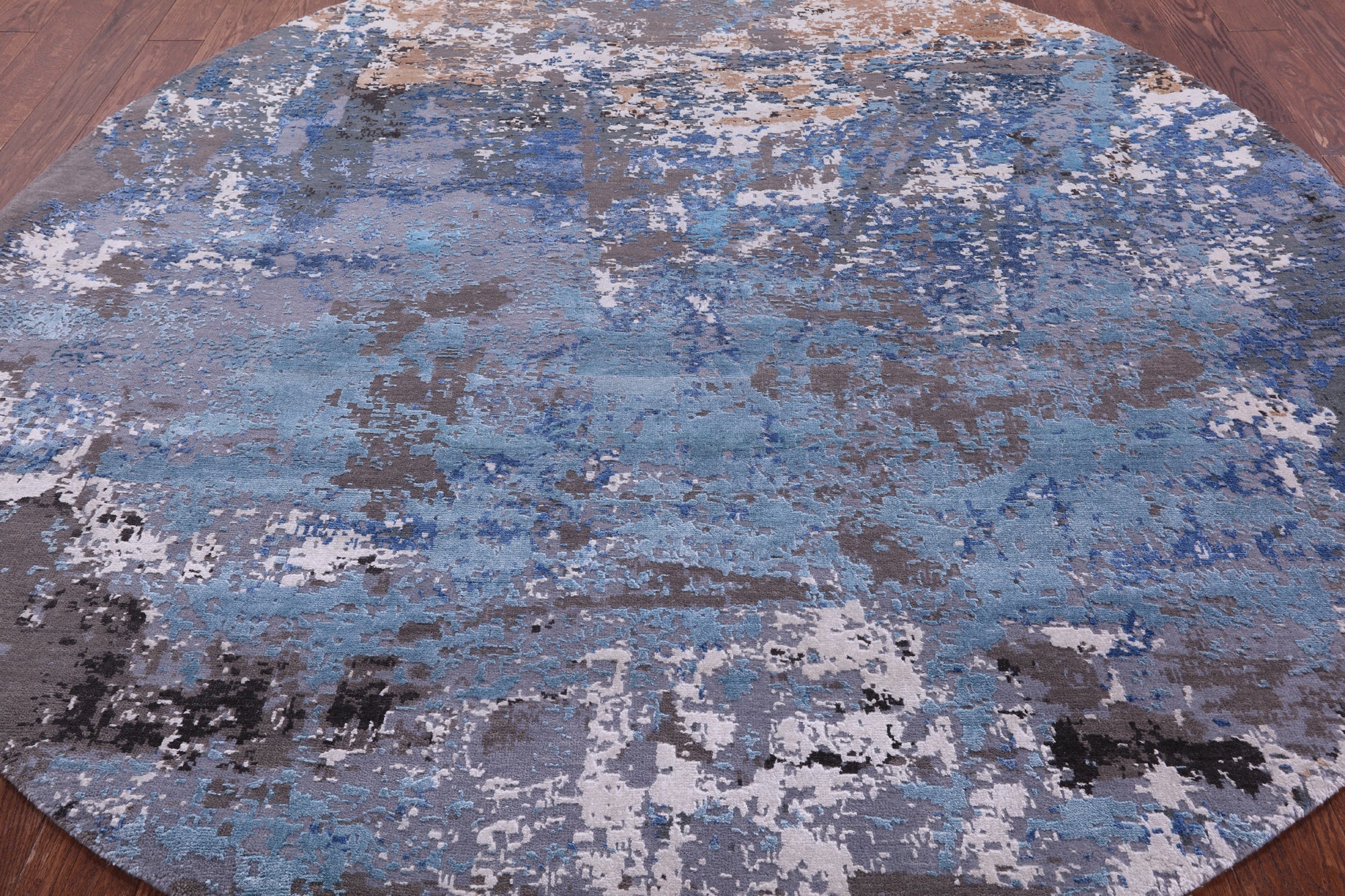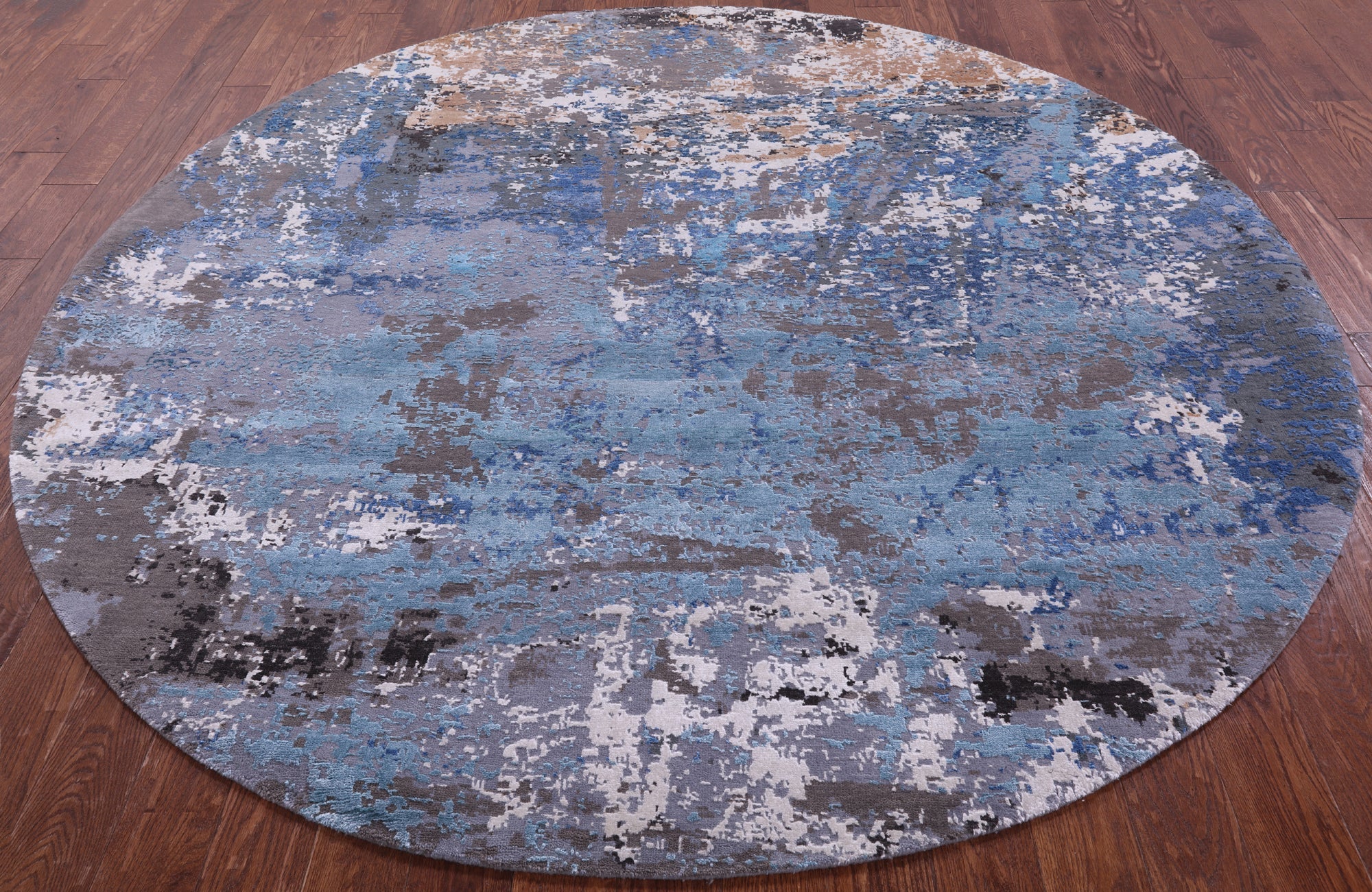 8' Round Handmade Wool & Silk Modern Abstract Rug - Q20143