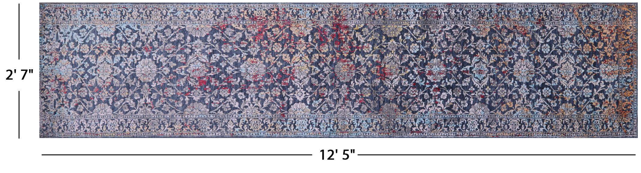 Runner Persian Tabriz Wool & Silk Handmade Rug 2' 7" X 12' 5" - Q11817