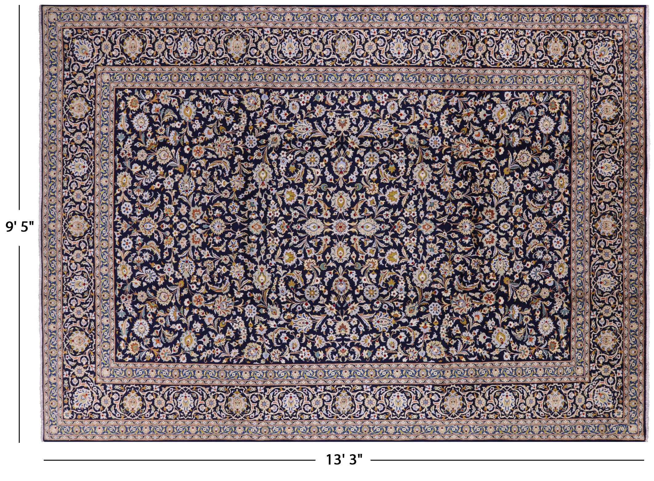 Blue New Signed Persian Kashan Handmade Wool Area Rug 9' 5" X 13' 3" - S2401