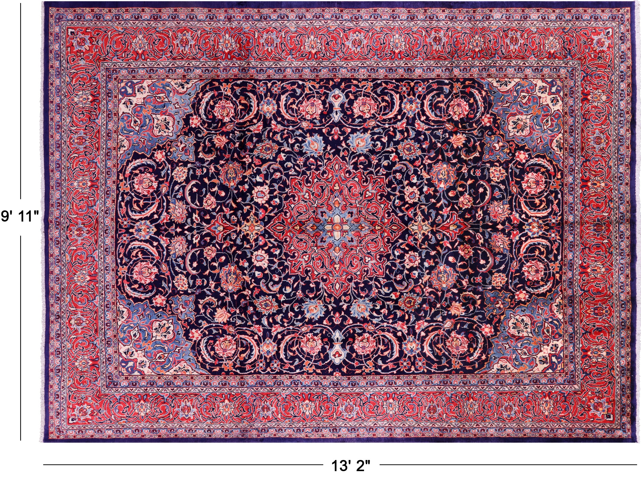 Blue 9' 11" X 13' 2" Persian Sarouk Wool Hand Knotted Area Rug - S1040 is backordered and will ship as soon as it is back in stock.