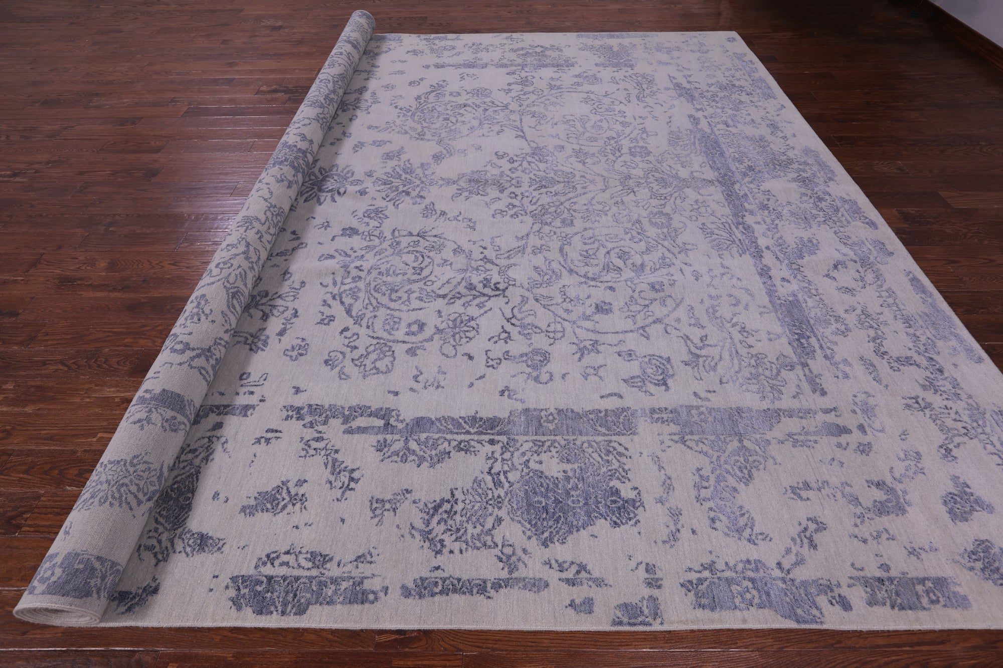 Grey Handmade Wool & Silk Persian Kashan Rug 11' 11" X 15' 1" - Q19215