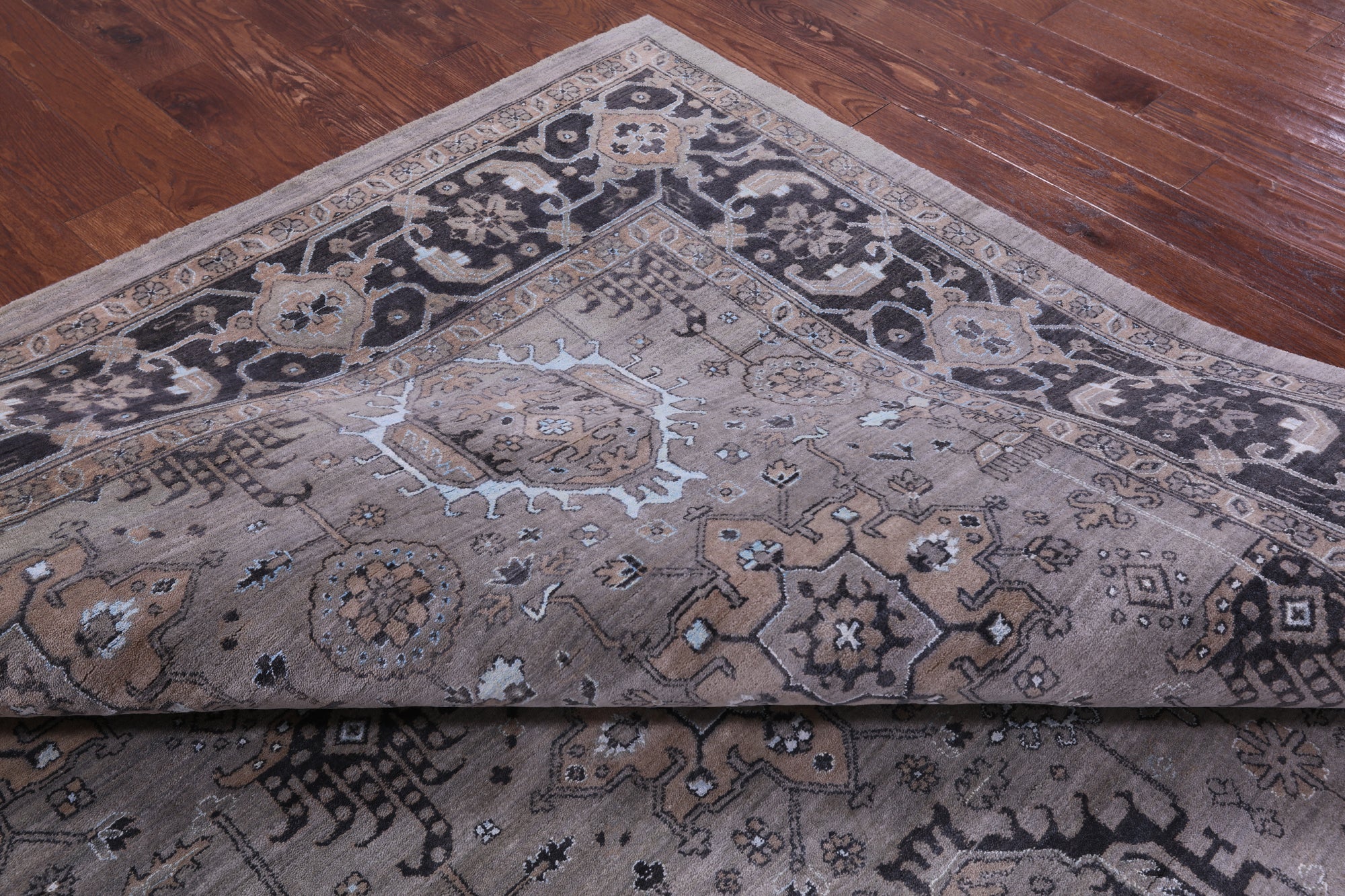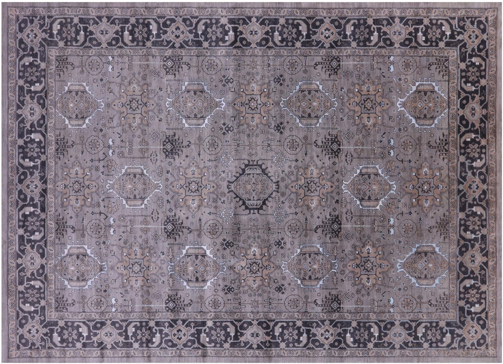 Grey 10' 0" X 14' 6" Super Heriz Serapi Hand Knotted Wool & Silk Rug - Q21606
