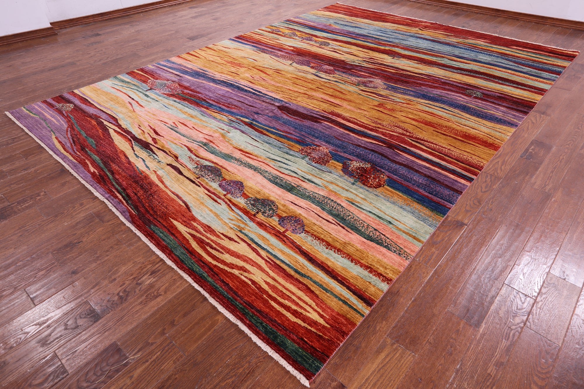 Gabbeh rugs are nothing short of simplistic and tribal, with designs consisting of primarily geometric shapes, animals, and plants. All done in a simplified way and based on the nomadic observation. Commonly brightly colored, these rugs are fun and beautiful and will add a warm touch to any home.