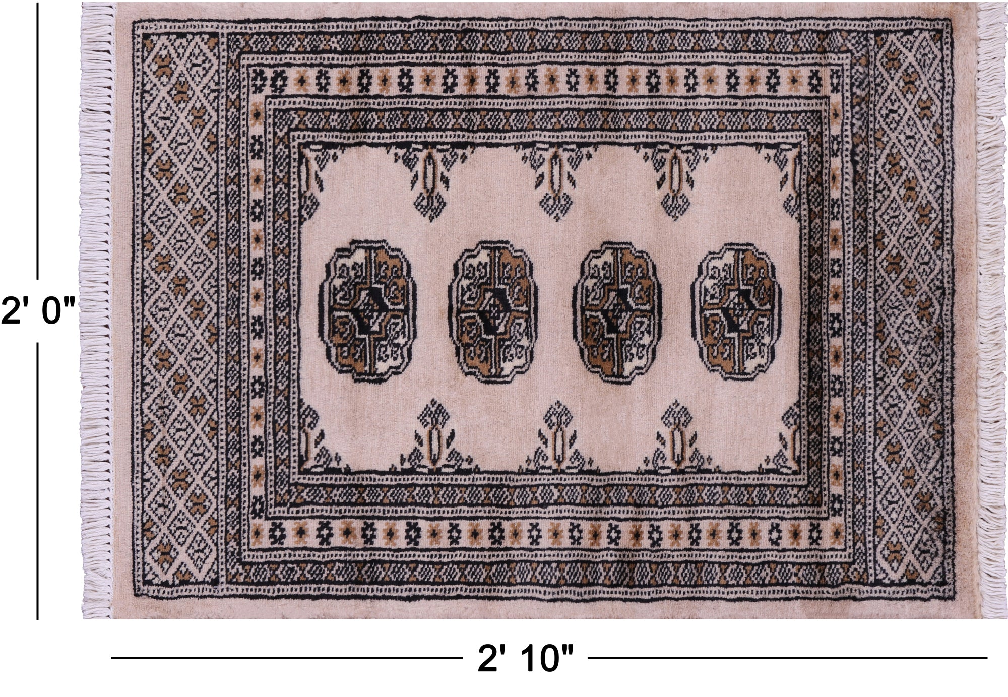 Ivory 2' 0" X 2' 10" Silky Bokhara Hand-Knotted Wool Rug - Q23843