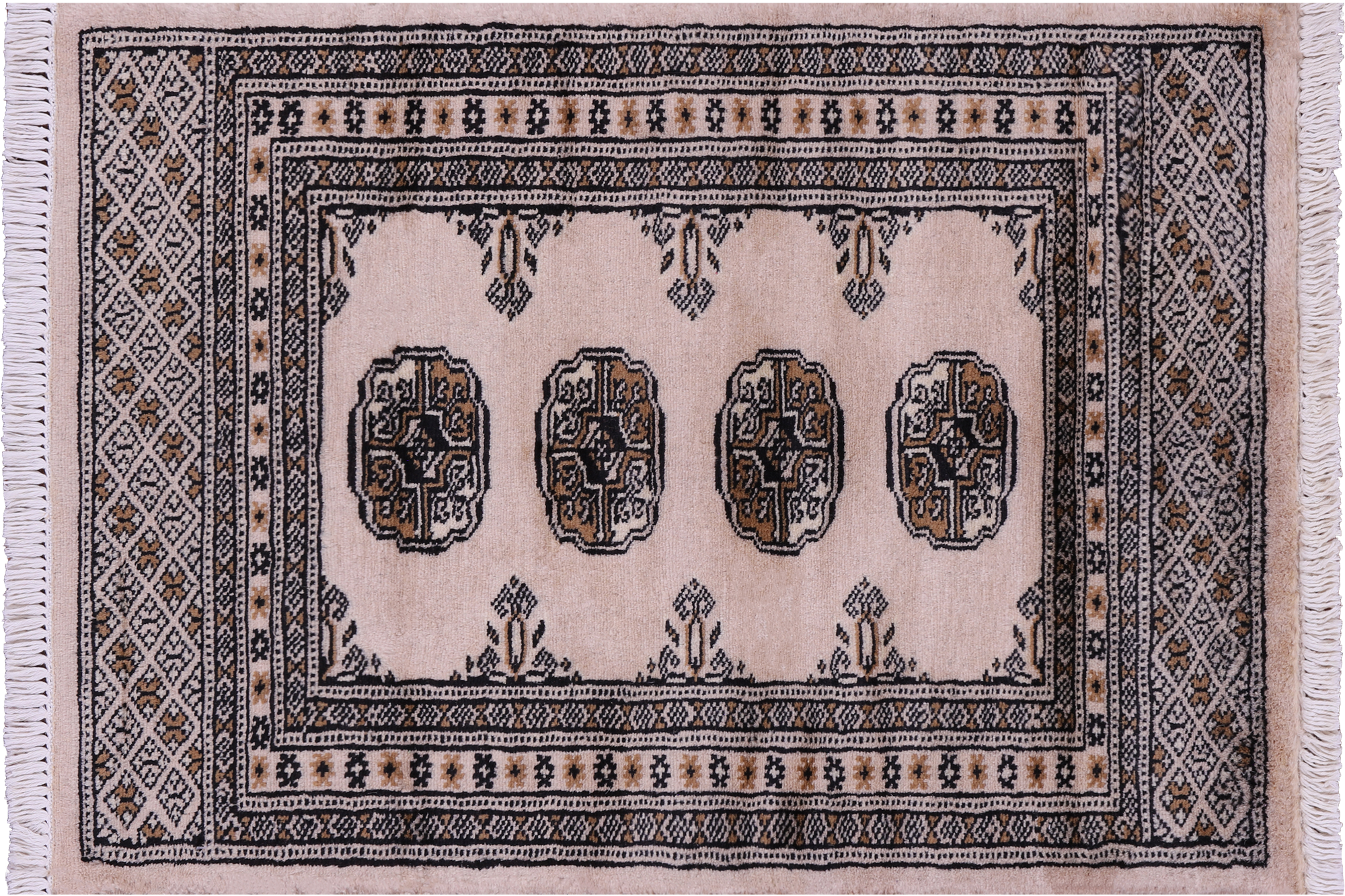 Ivory 2' 0" X 2' 10" Silky Bokhara Hand-Knotted Wool Rug - Q23843 is backordered and will ship as soon as it is back in stock.