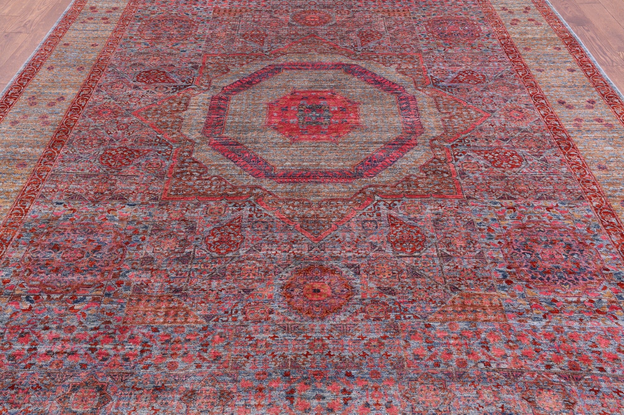 Originating in Cairo, Egypt, Mamluk rugs are prominent for their amazing ability to have extremely symmetrical designs. This creates a splendid mirror-like effect. The medallions can be seen as interlacing stars and polygons, with other geometric patterns surrounding. The colors commonly used for these traditional rugs are blues, rich reds, ivory, and greens.