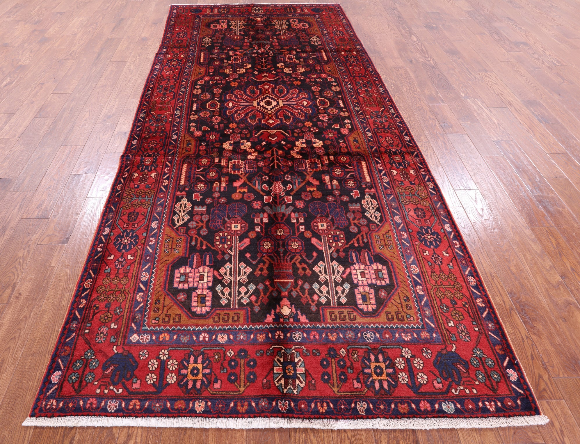 Black New Full Pile Wool Persian Nahavand Hand-Knotted Area Rug 5' 5" X 12' 2" - S1610