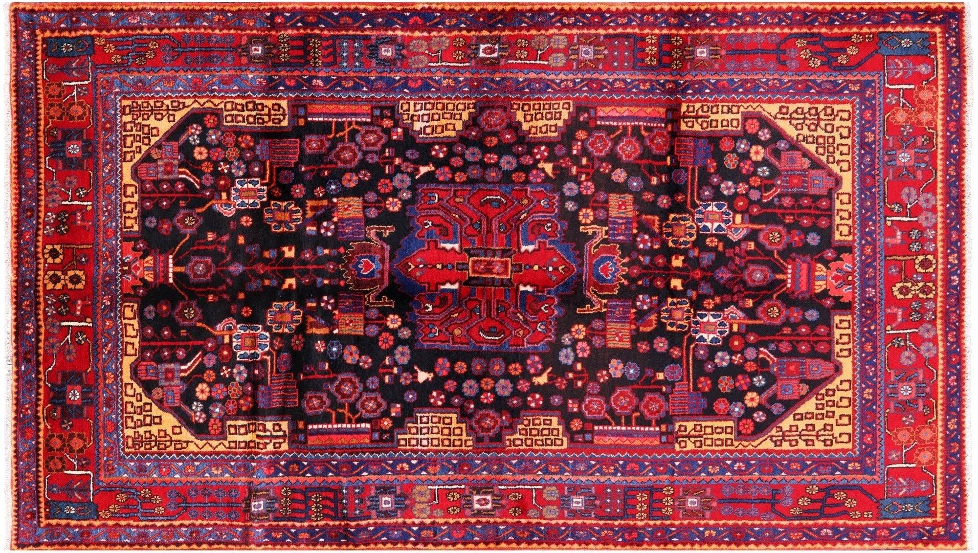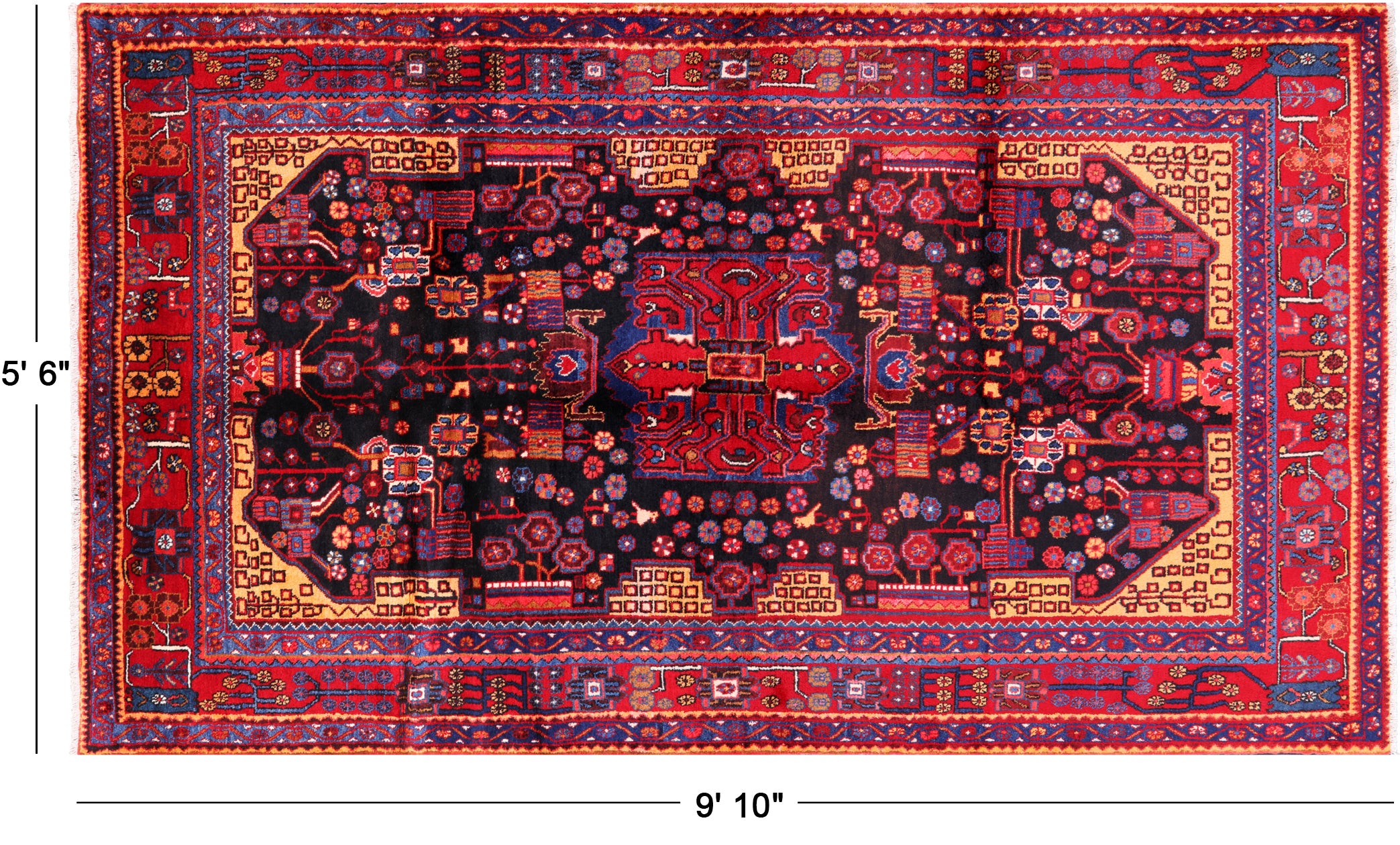 Black 5' 6" X 9' 10" New Hand Knotted Persian Nahavand Area Rug - S1042