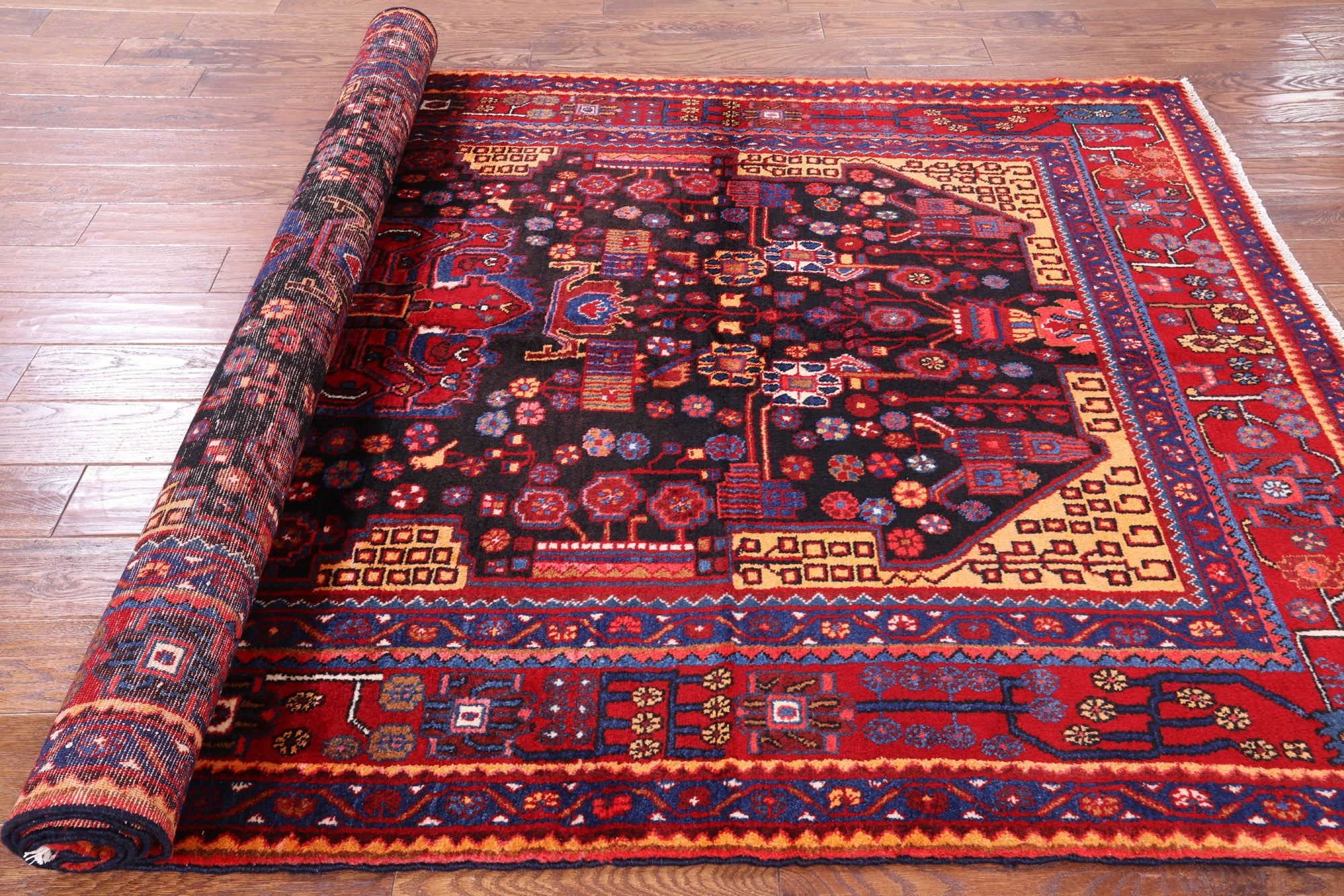 Nahavand rugs comes from the city of Nahavand in Persia. These rugs have a tribal style look, often using floral medallions and a variety of vegetable dyed colors such as reds, blues, greens and different shades of ivory. Nahavand rugs are made with very high quality wool, which gives it a shine. They are very durable rugs that will last a lifetime.