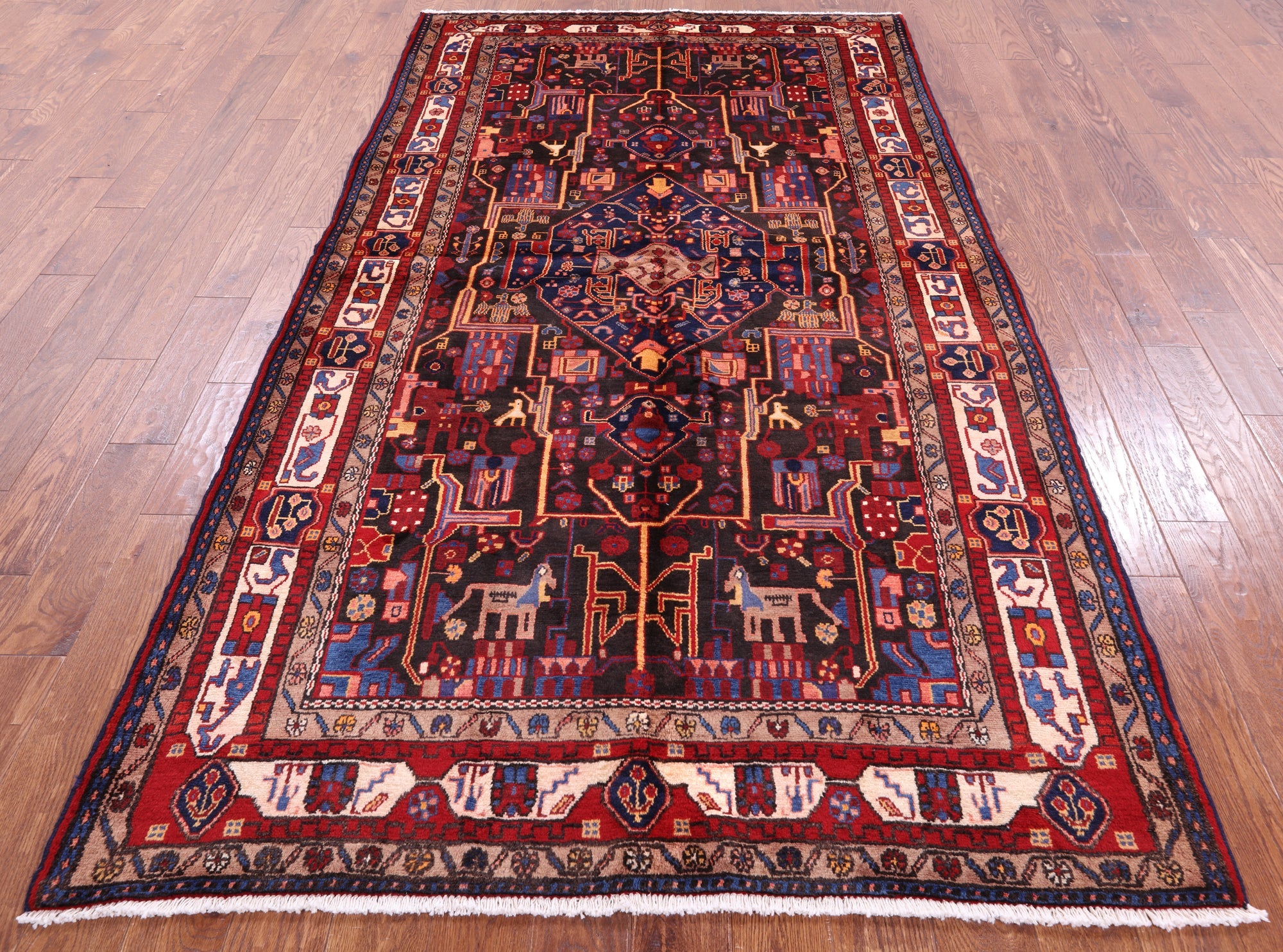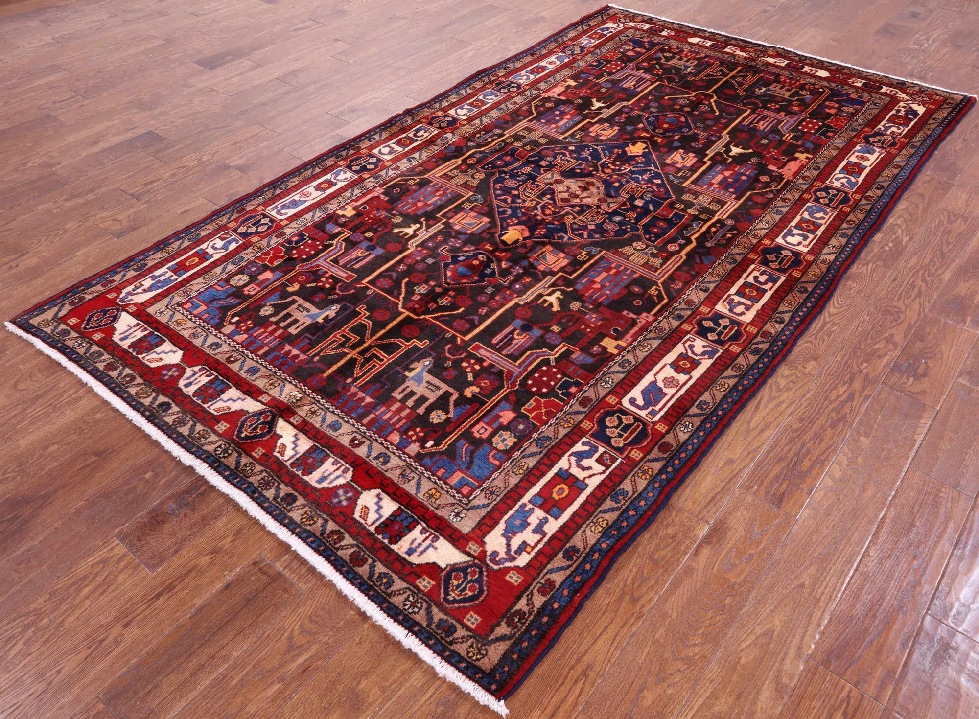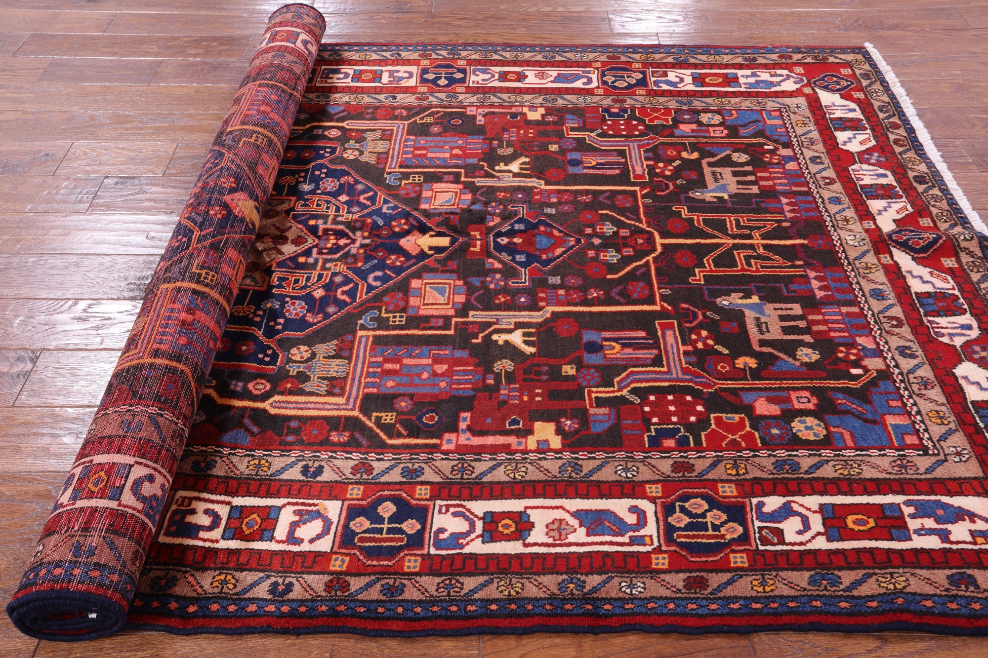 Nahavand rugs comes from the city of Nahavand in Persia. These rugs have a tribal style look, often using floral medallions and a variety of vegetable dyed colors such as reds, blues, greens and different shades of ivory. Nahavand rugs are made with very high quality wool, which gives it a shine. They are very durable rugs that will last a lifetime.
