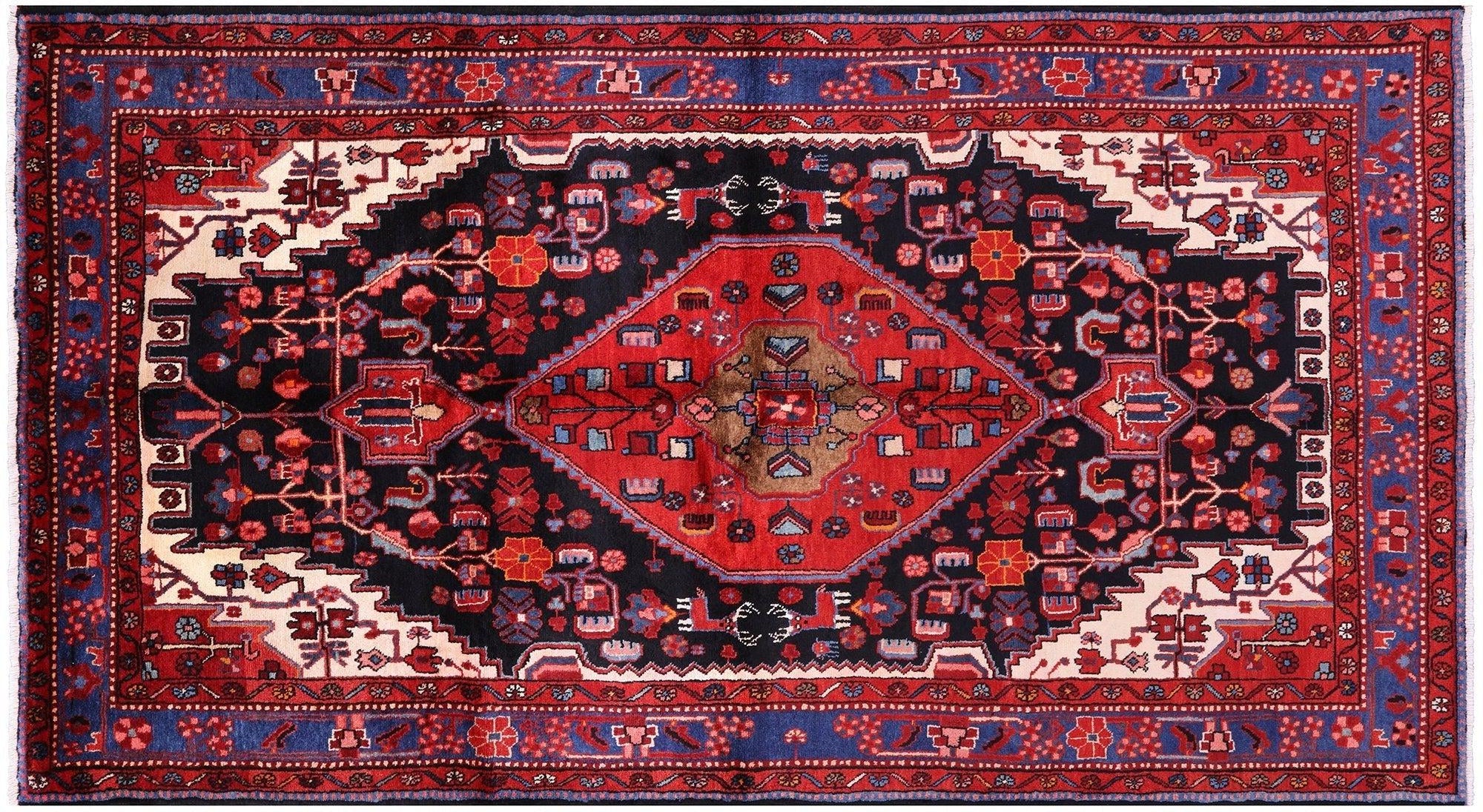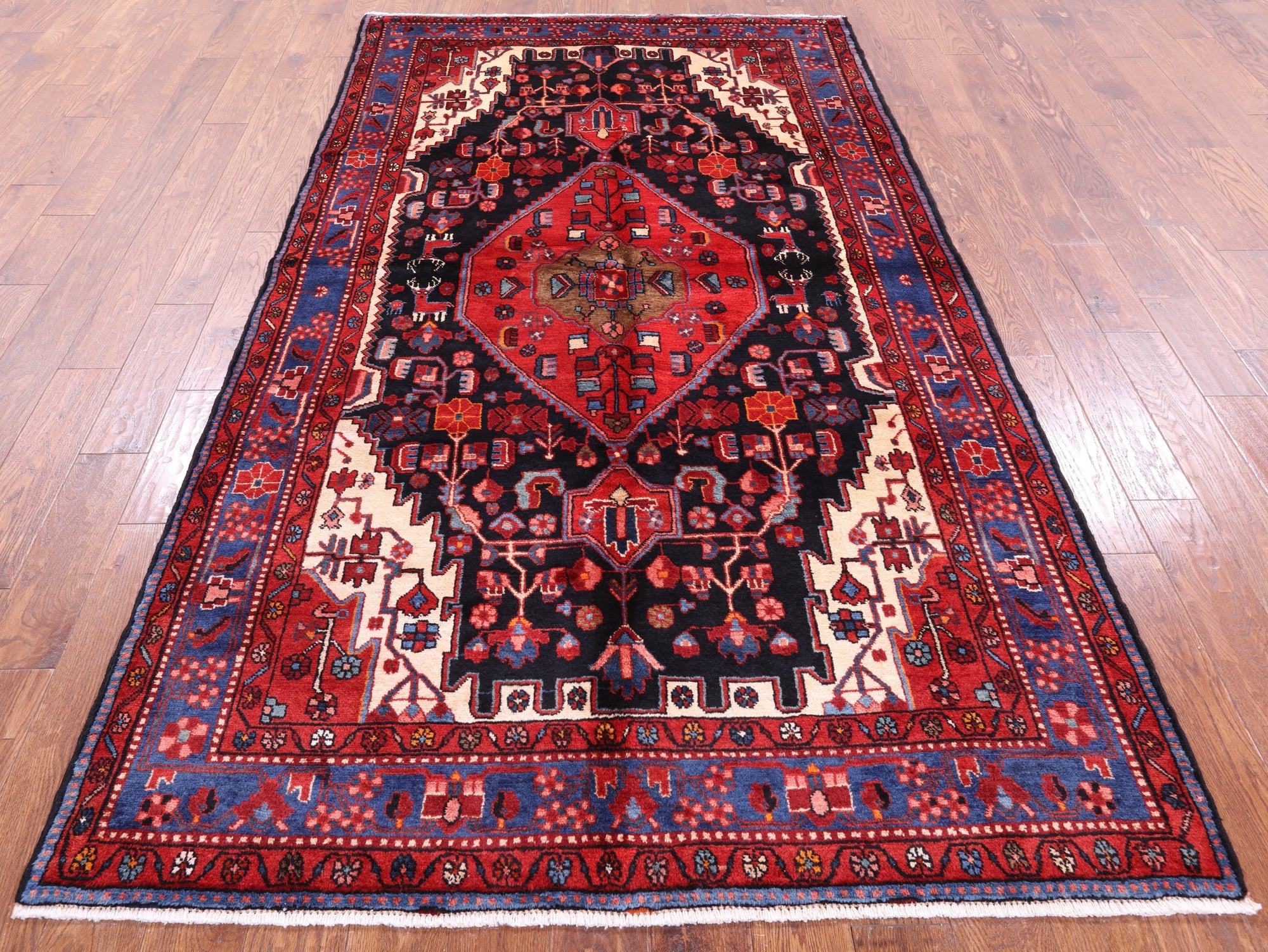 Black New Persian Hamadan Hand Knotted Rug 5' 3" X 9' 5" - S2175