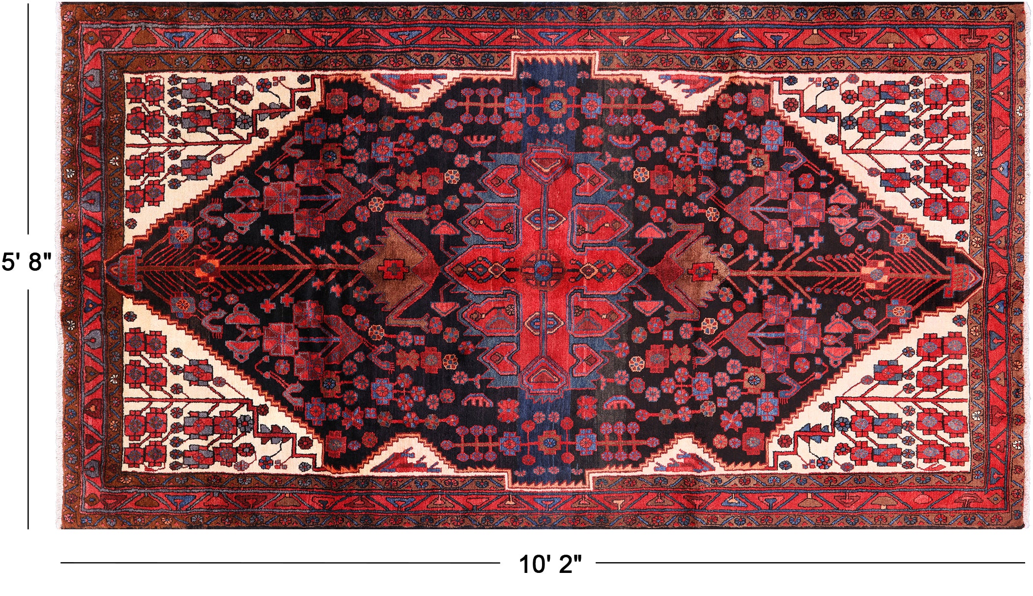 Nahavand rugs comes from the city of Nahavand in Persia. These rugs have a tribal style look, often using floral medallions and a variety of vegetable dyed colors such as reds, blues, greens and different shades of ivory. Nahavand rugs are made with very high quality wool, which gives it a shine. They are very durable rugs that will last a lifetime.