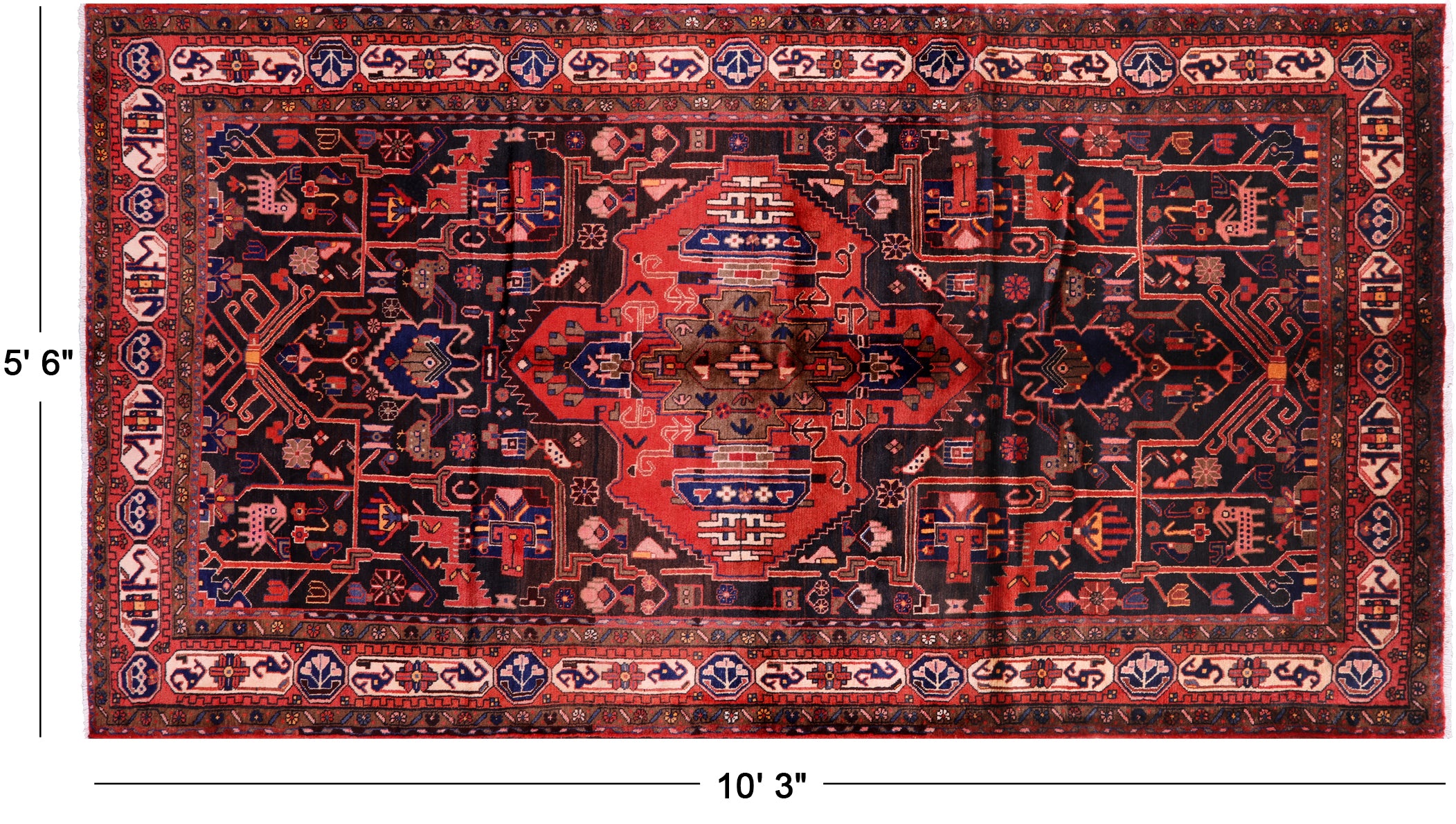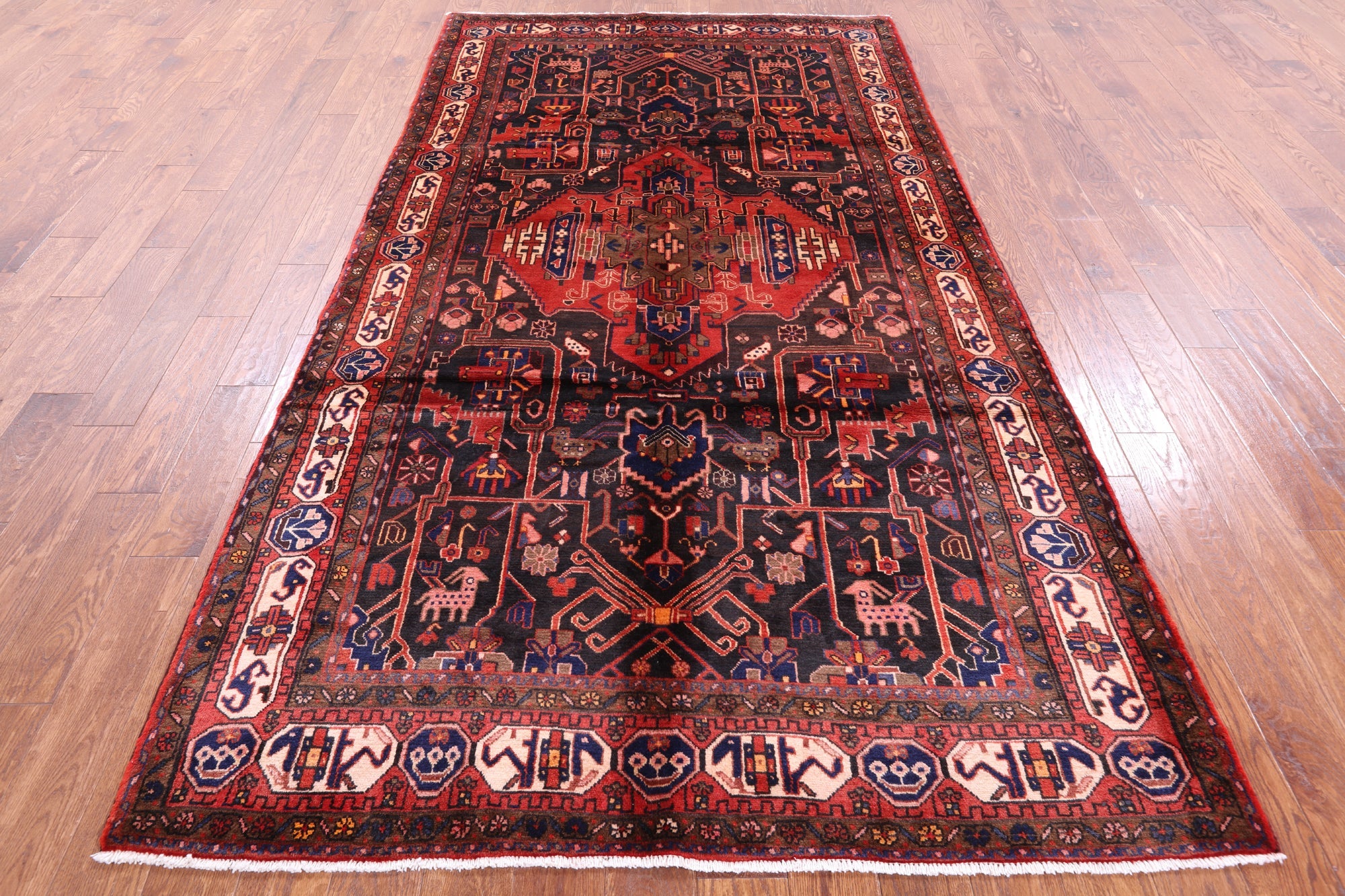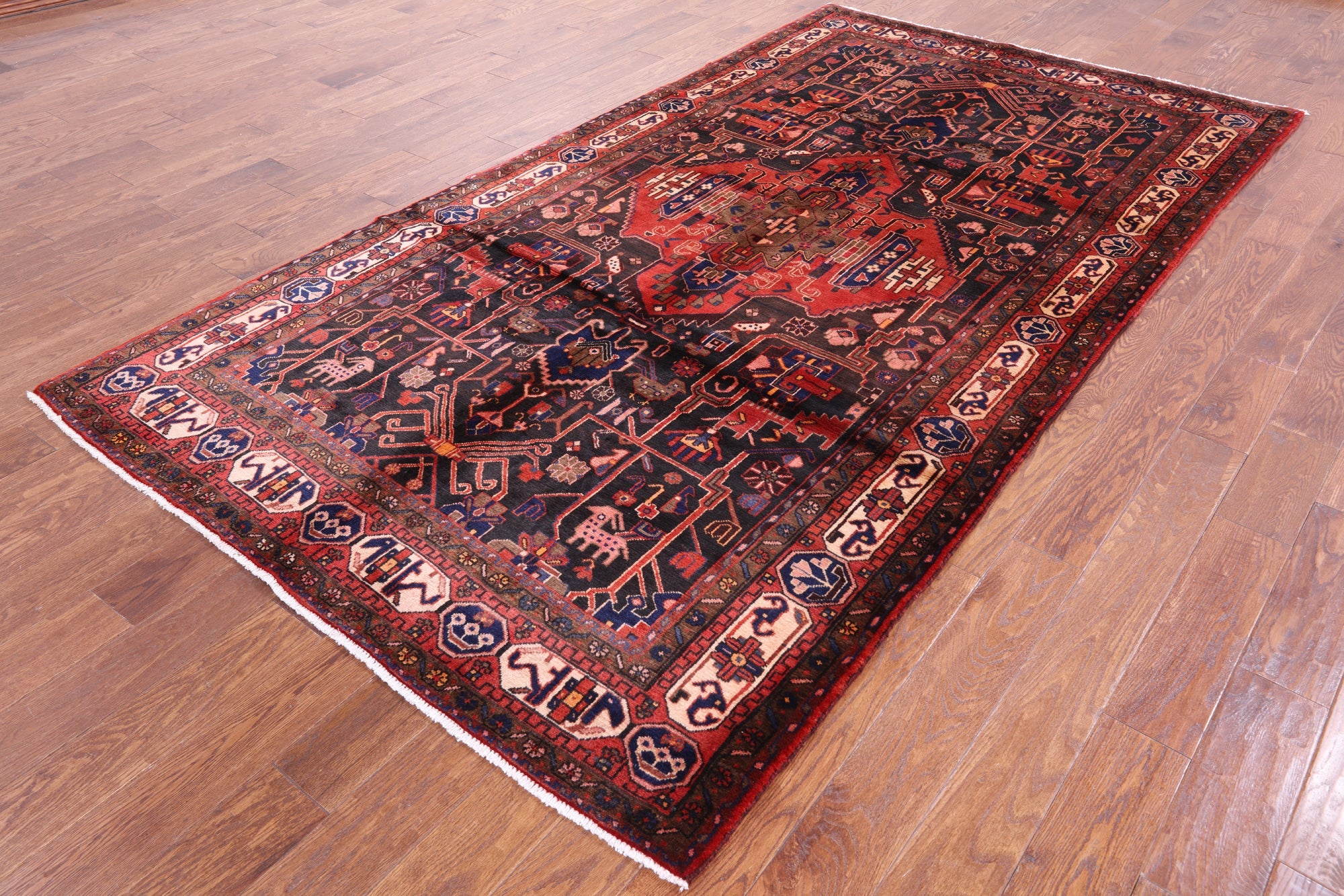 Nahavand rugs comes from the city of Nahavand in Persia. These rugs have a tribal style look, often using floral medallions and a variety of vegetable dyed colors such as reds, blues, greens and different shades of ivory. Nahavand rugs are made with very high quality wool, which gives it a shine. They are very durable rugs that will last a lifetime.