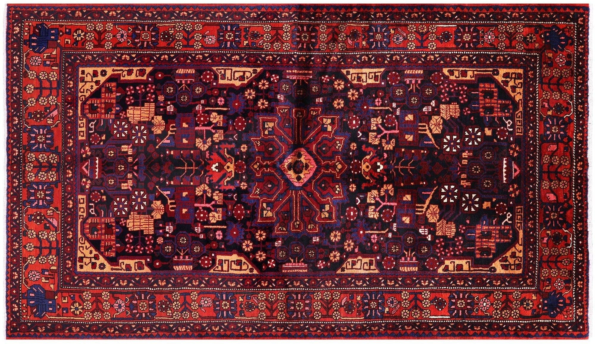 Black New Persian Nahavand Handmade Full Pile Wool Rug 5' 4" X 9' 7" - S2111