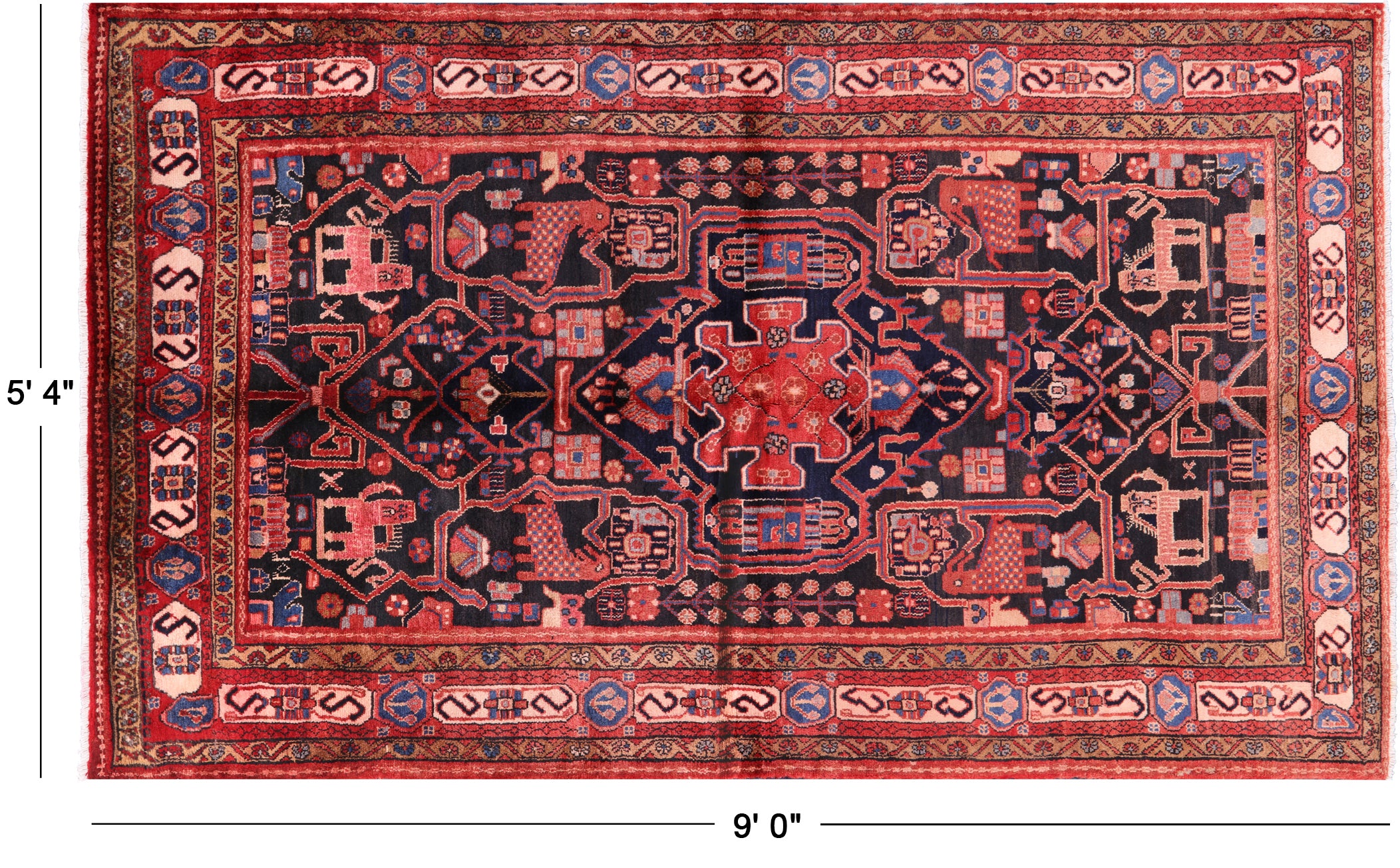 Black 5' 4" X 9' 0" New Persian Nahavand Handmade Rug - S1678