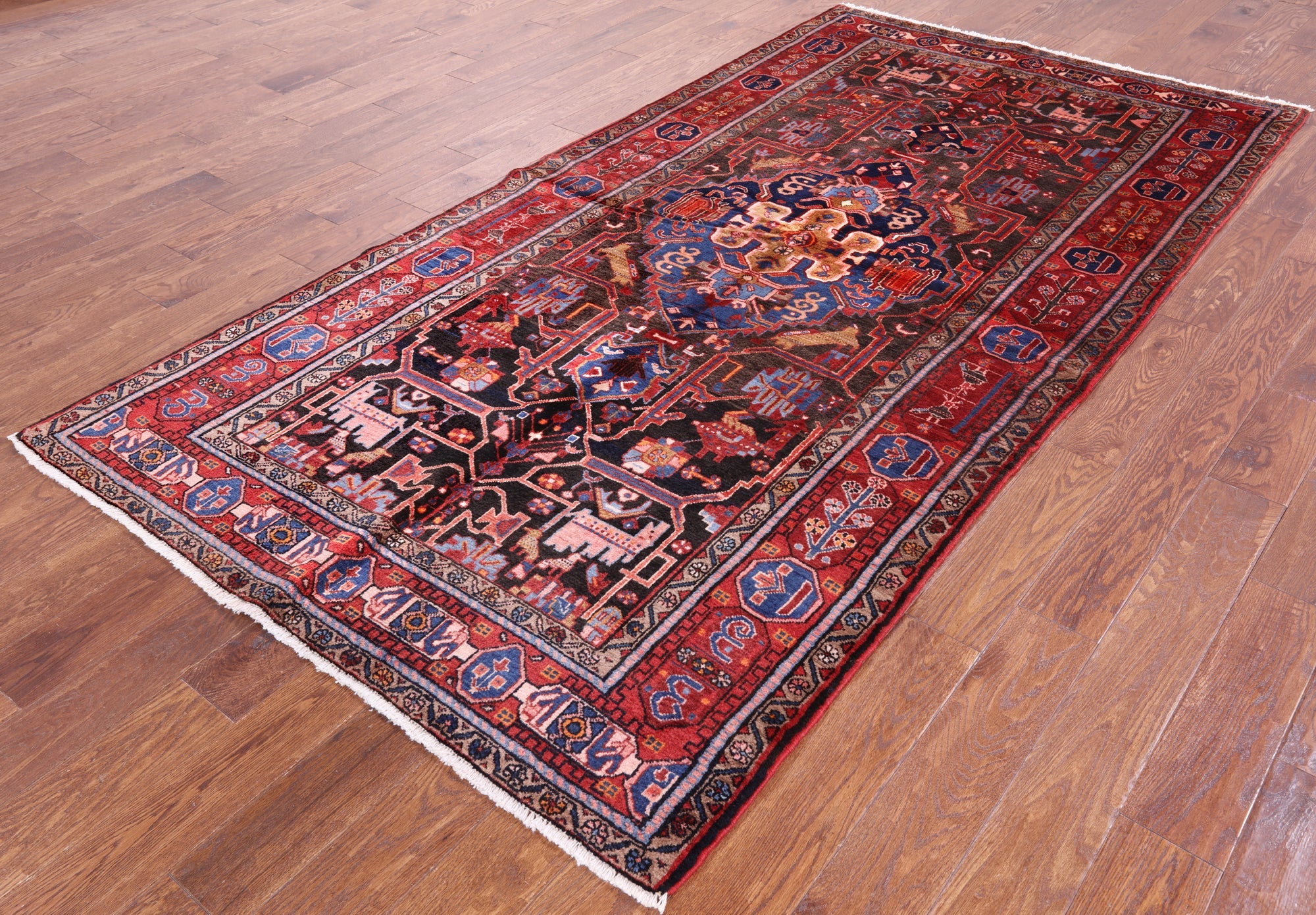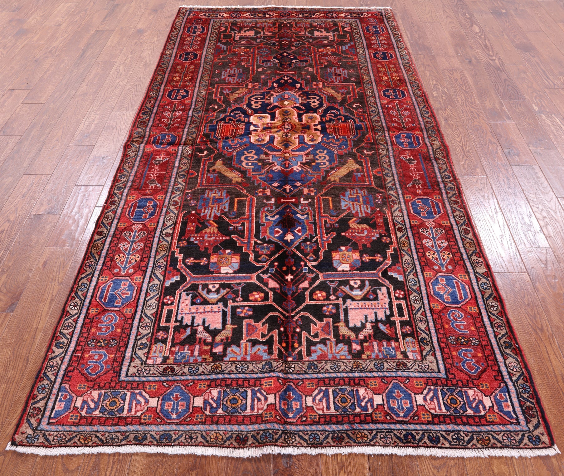 Nahavand rugs comes from the city of Nahavand in Persia. These rugs have a tribal style look, often using floral medallions and a variety of vegetable dyed colors such as reds, blues, greens and different shades of ivory. Nahavand rugs are made with very high quality wool, which gives it a shine. They are very durable rugs that will last a lifetime.