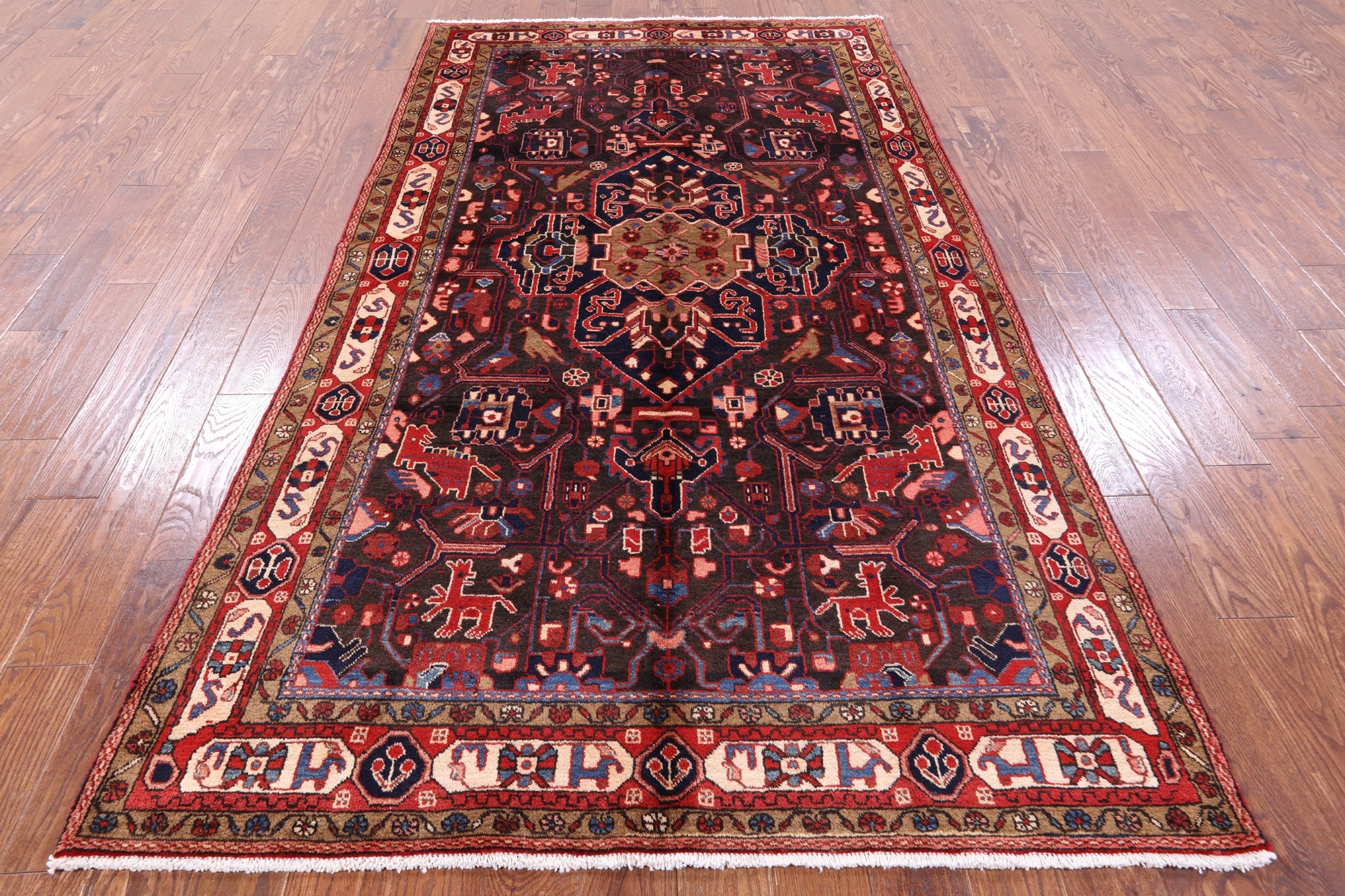 Nahavand rugs comes from the city of Nahavand in Persia. These rugs have a tribal style look, often using floral medallions and a variety of vegetable dyed colors such as reds, blues, greens and different shades of ivory. Nahavand rugs are made with very high quality wool, which gives it a shine. They are very durable rugs that will last a lifetime.