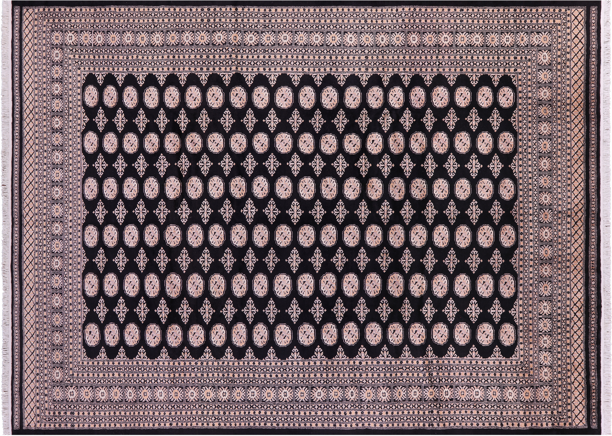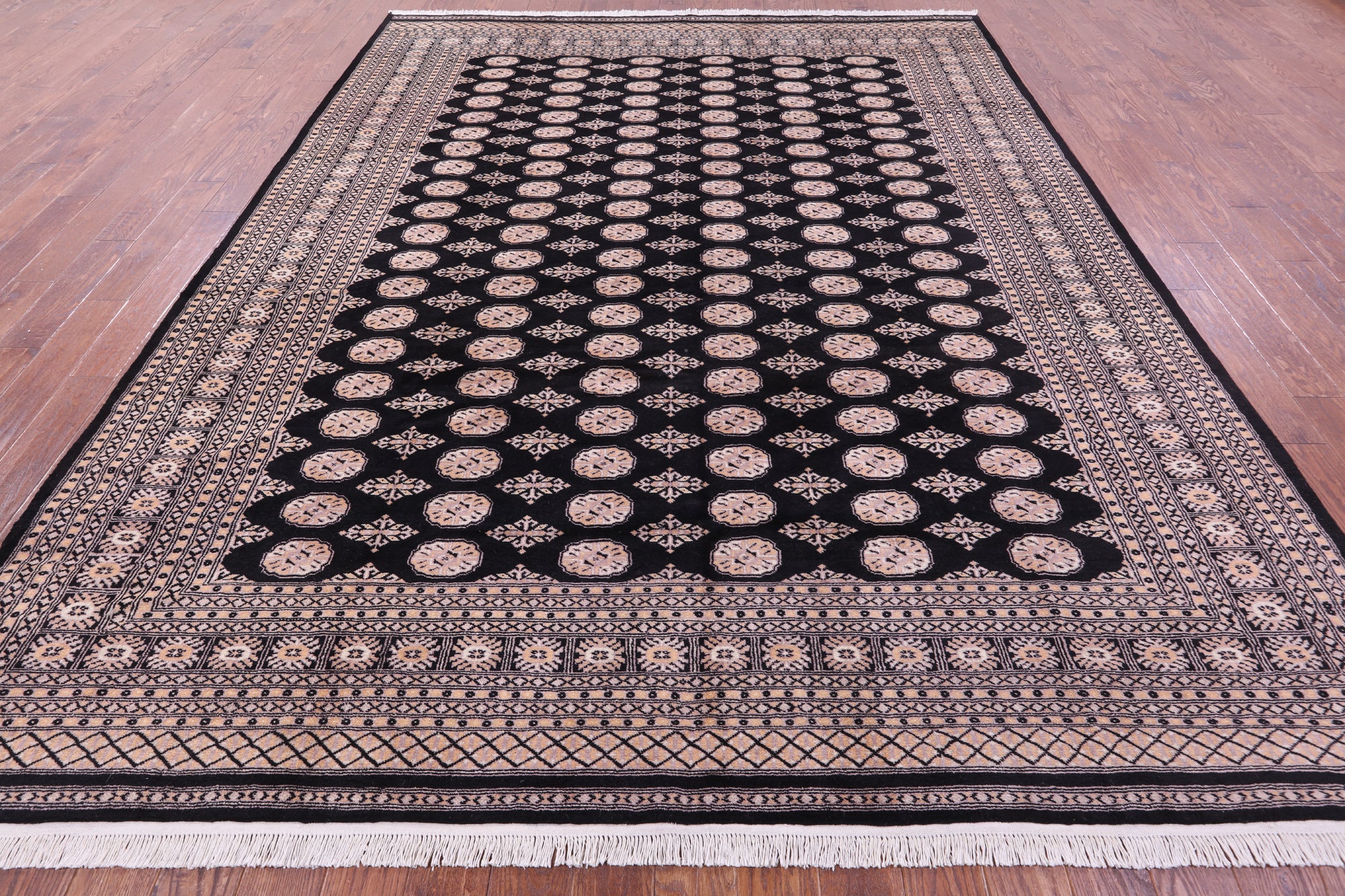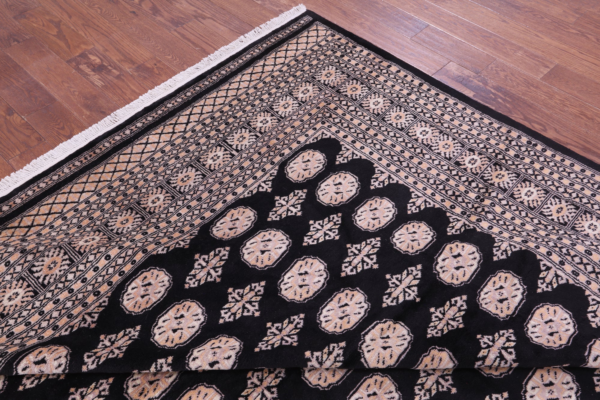 Black Silky Bokhara Hand-Knotted Wool Rug 9' 2" X 12' 0" - Q23763 is backordered and will ship as soon as it is back in stock.