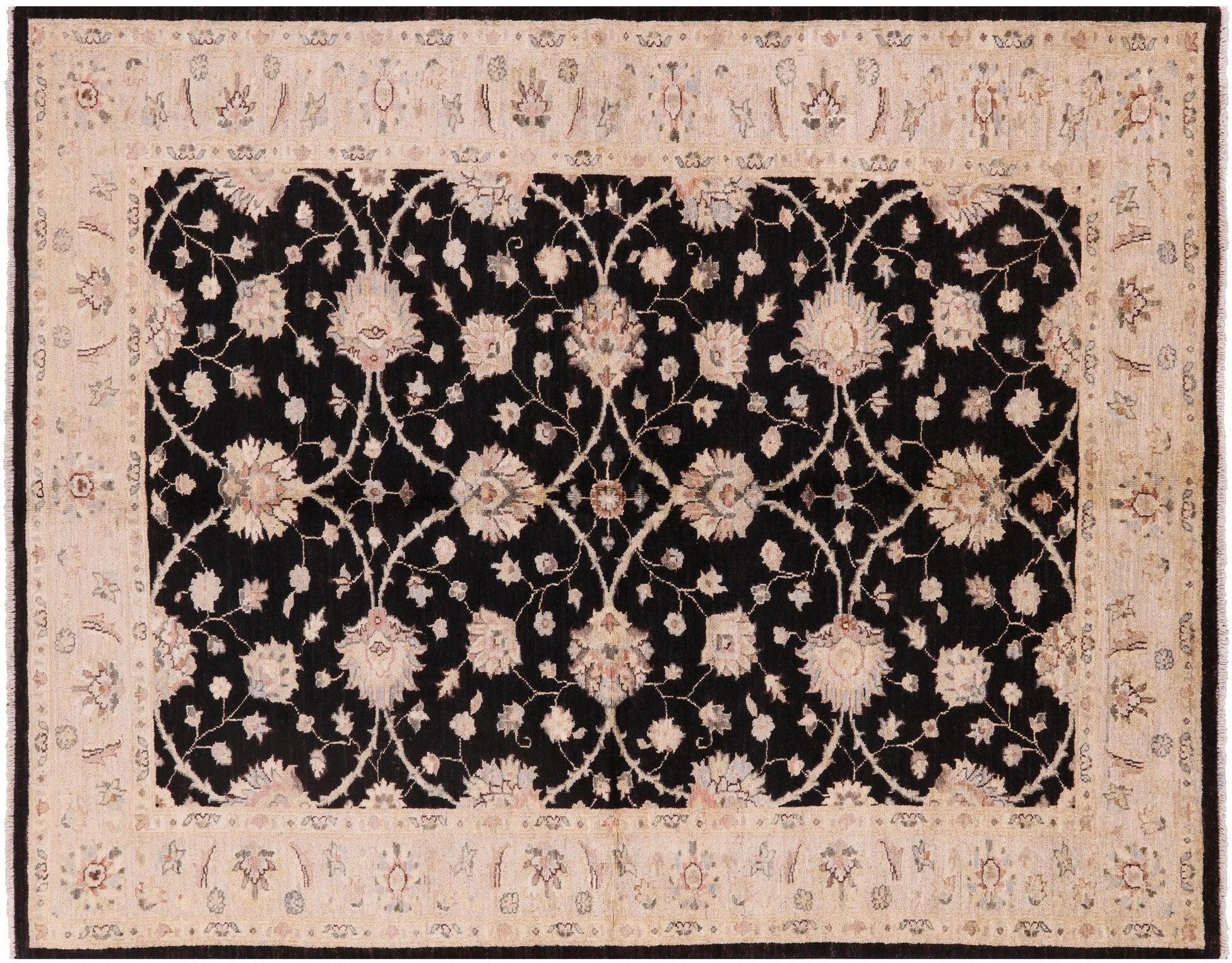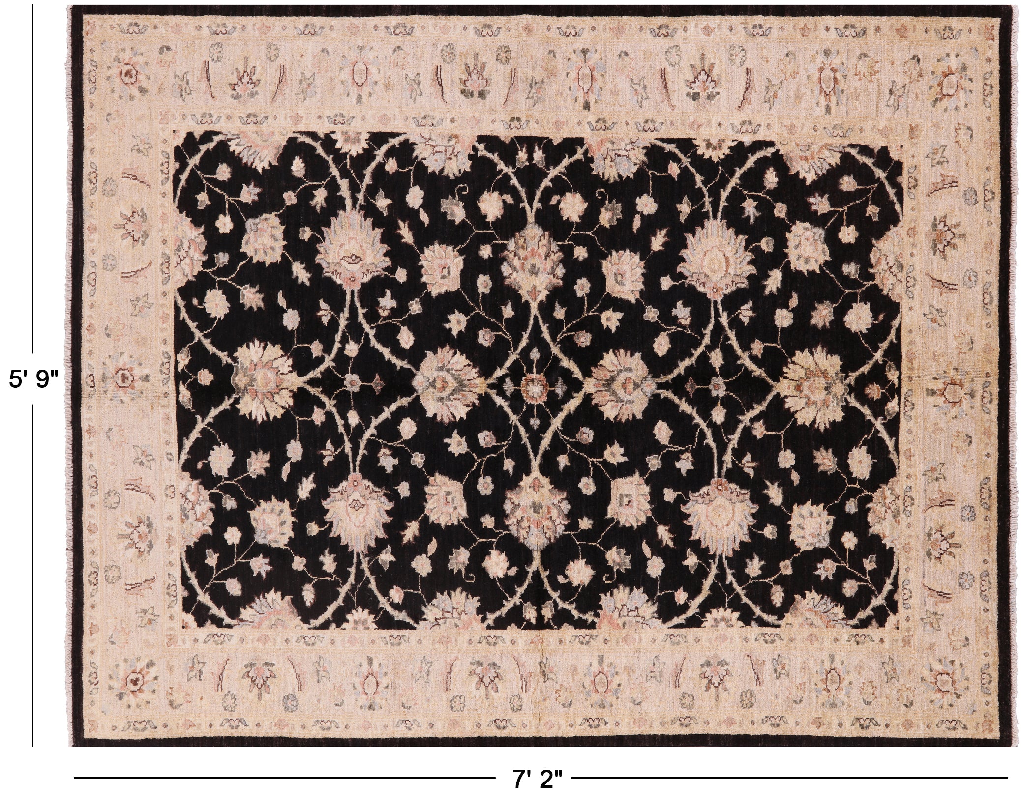 Black 5' 9" X 7' 2" Turkish Oushak Hand-Knotted Wool Rug - W145