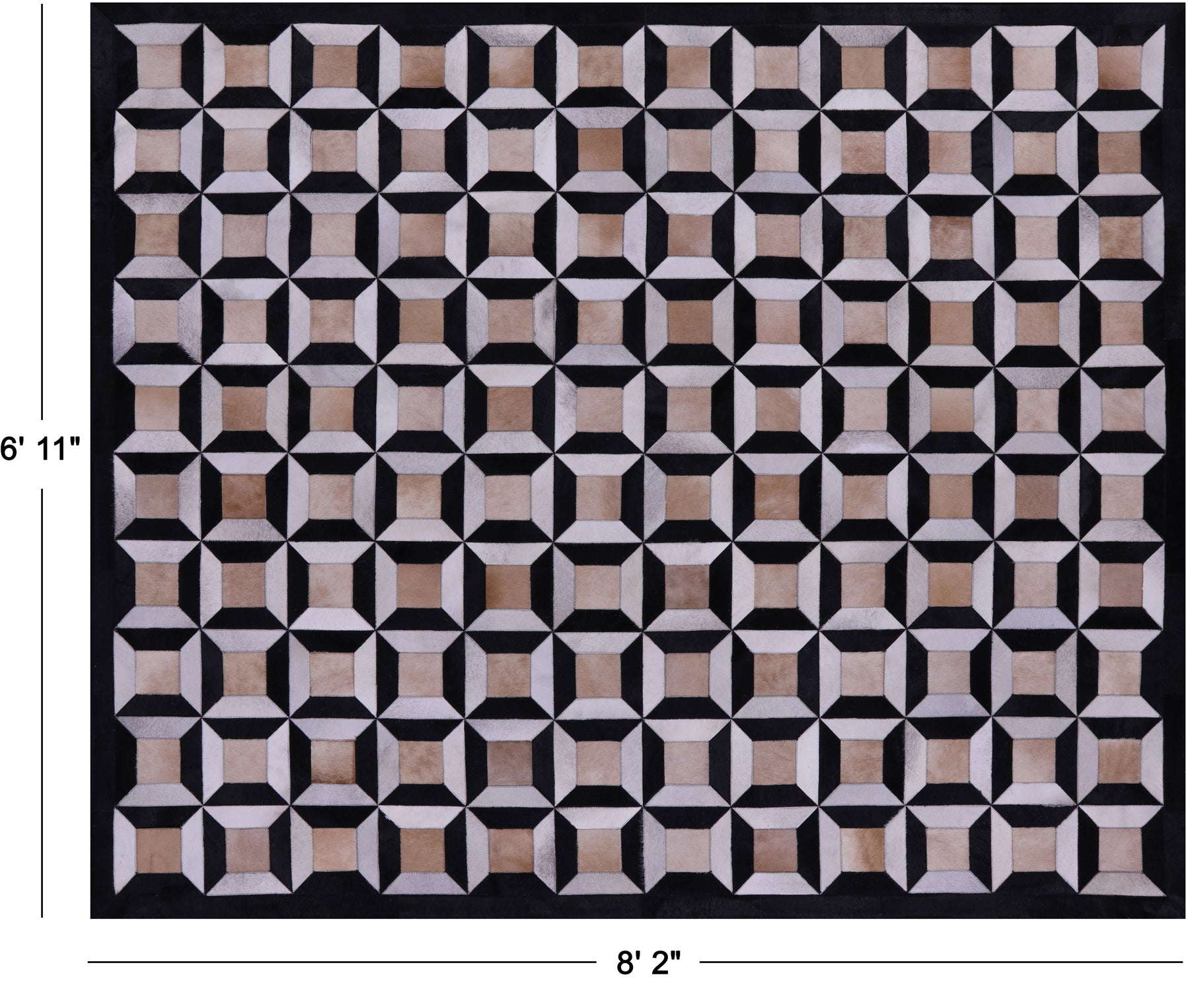 Black & White Natural Brown Cowhide Hand Stitched Rug 6' 11" X 8' 2" - C3373