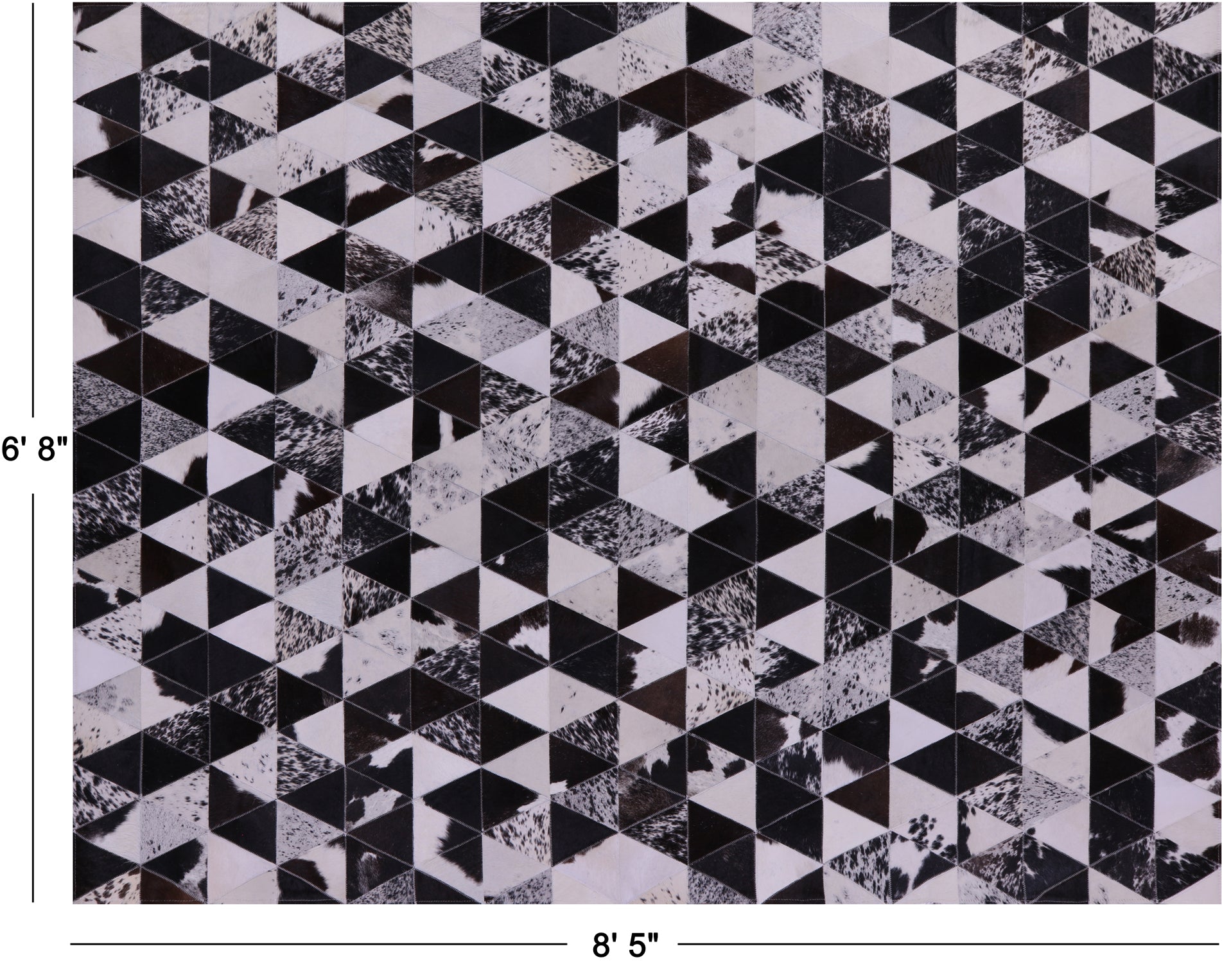 Black & White Salt & Pepper Natural Cowhide Hand Stitched Rug 6' 8" X 8' 5" - C3358