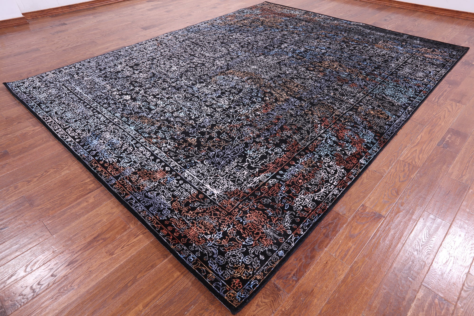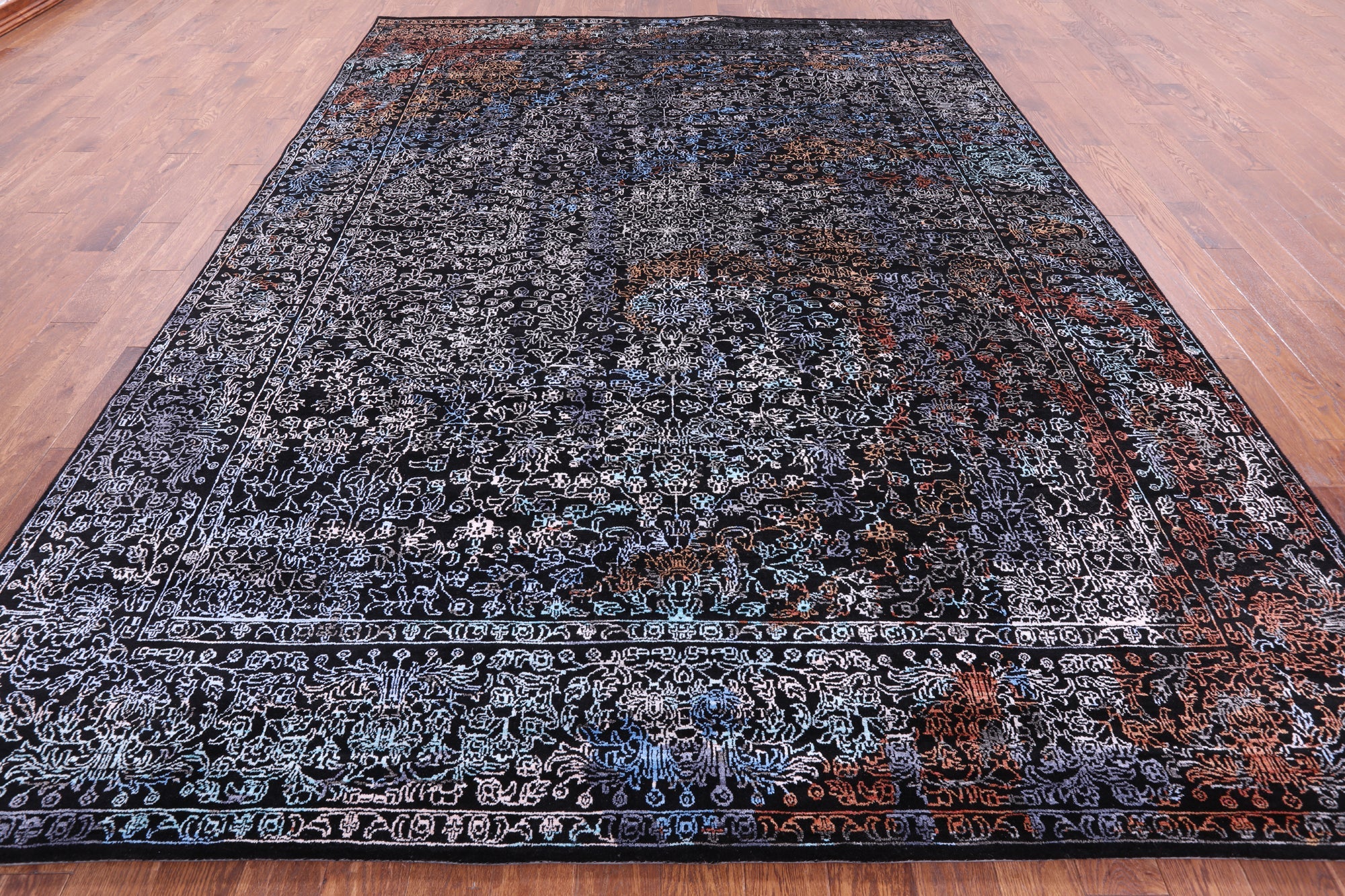 Black Wool & Silk Modern Handmade Rug 9' 1" X 11' 11" - Q8712 is backordered and will ship as soon as it is back in stock.