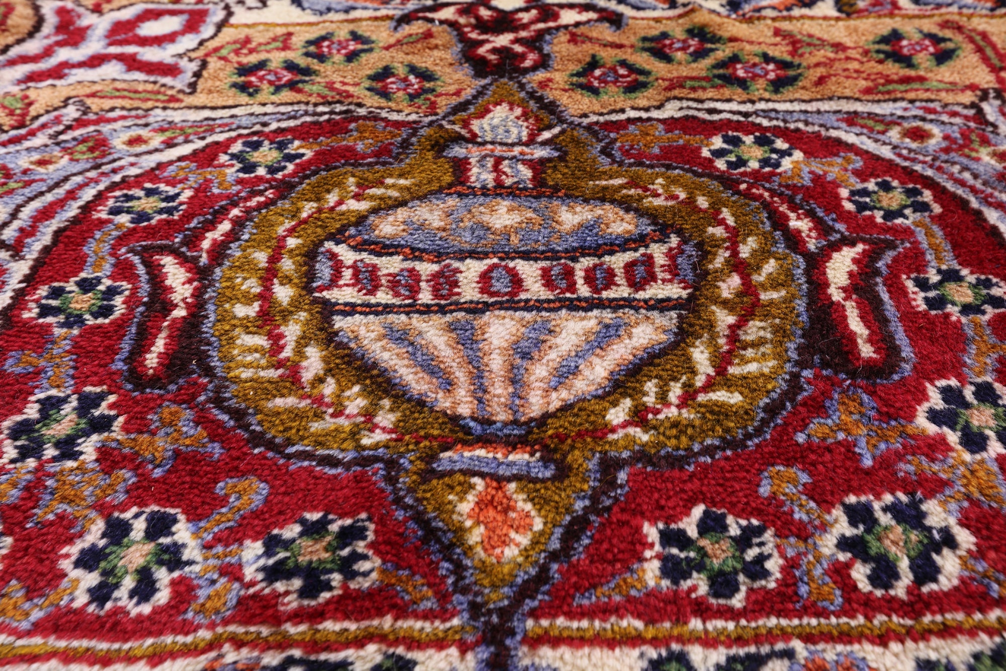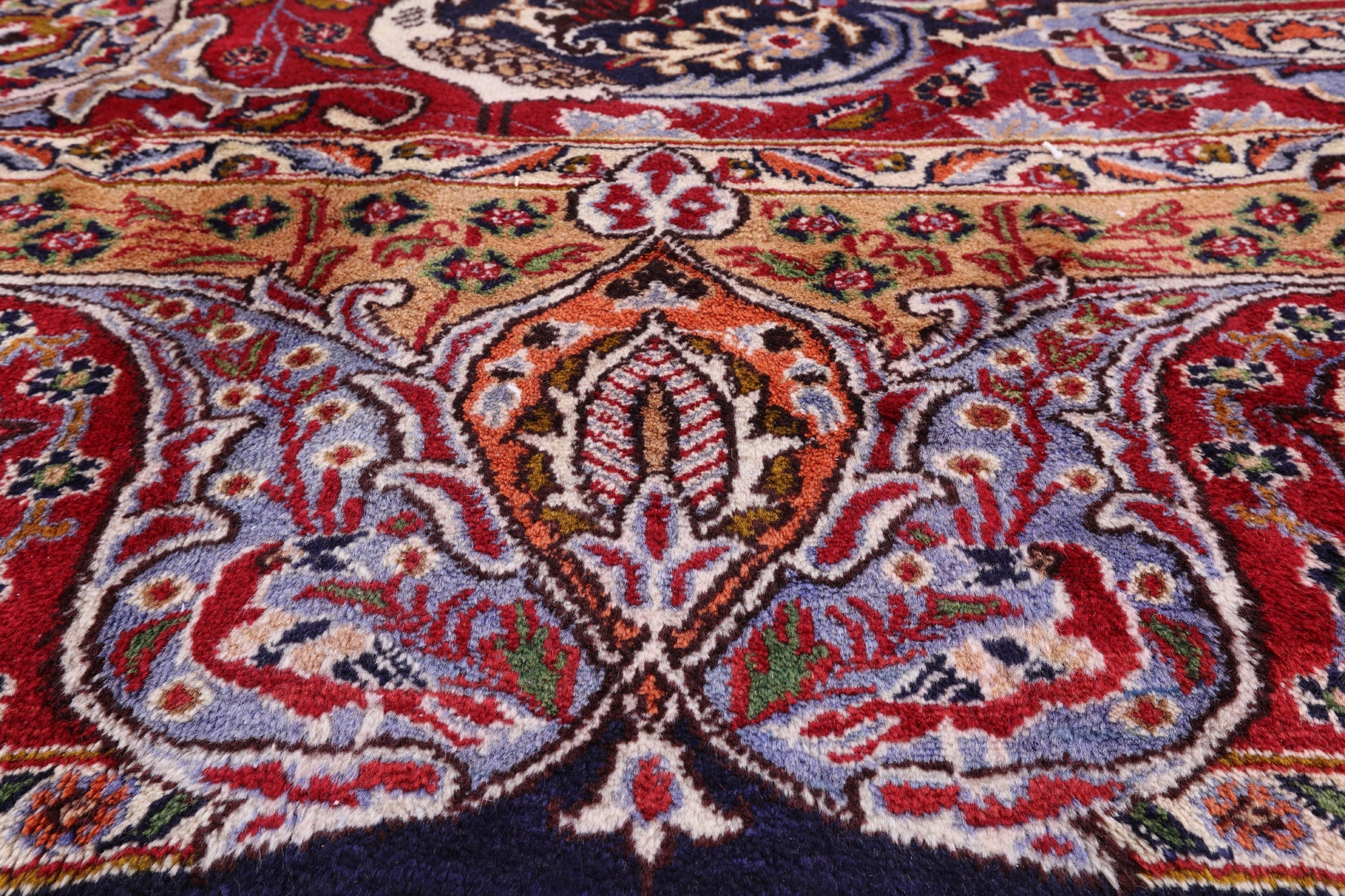 Kashmar rugs are extremely detailed and are known for their unique patterns. These rugs often display a historic or pictorial design. Kashmar rugs are very elegant and desirable. The texture of the pile is high in quality, which makes it very soft and adds a sense of comfort to any room.