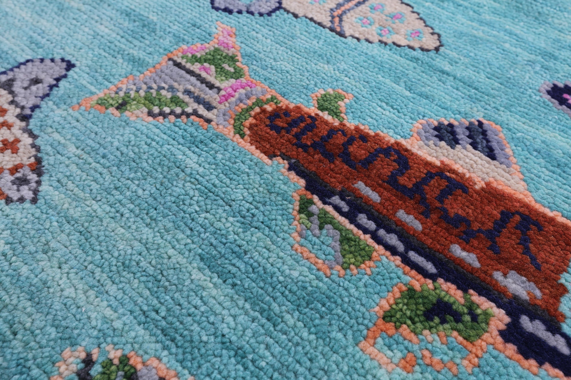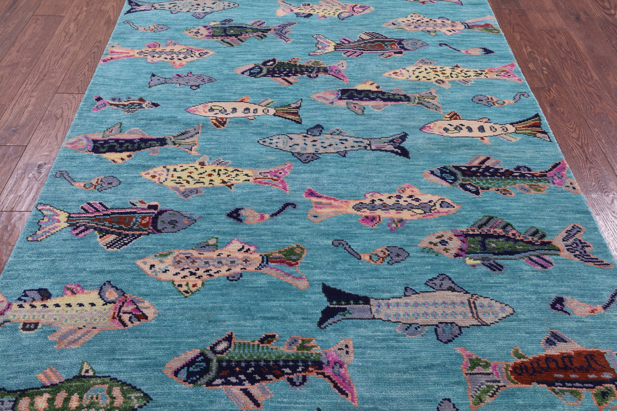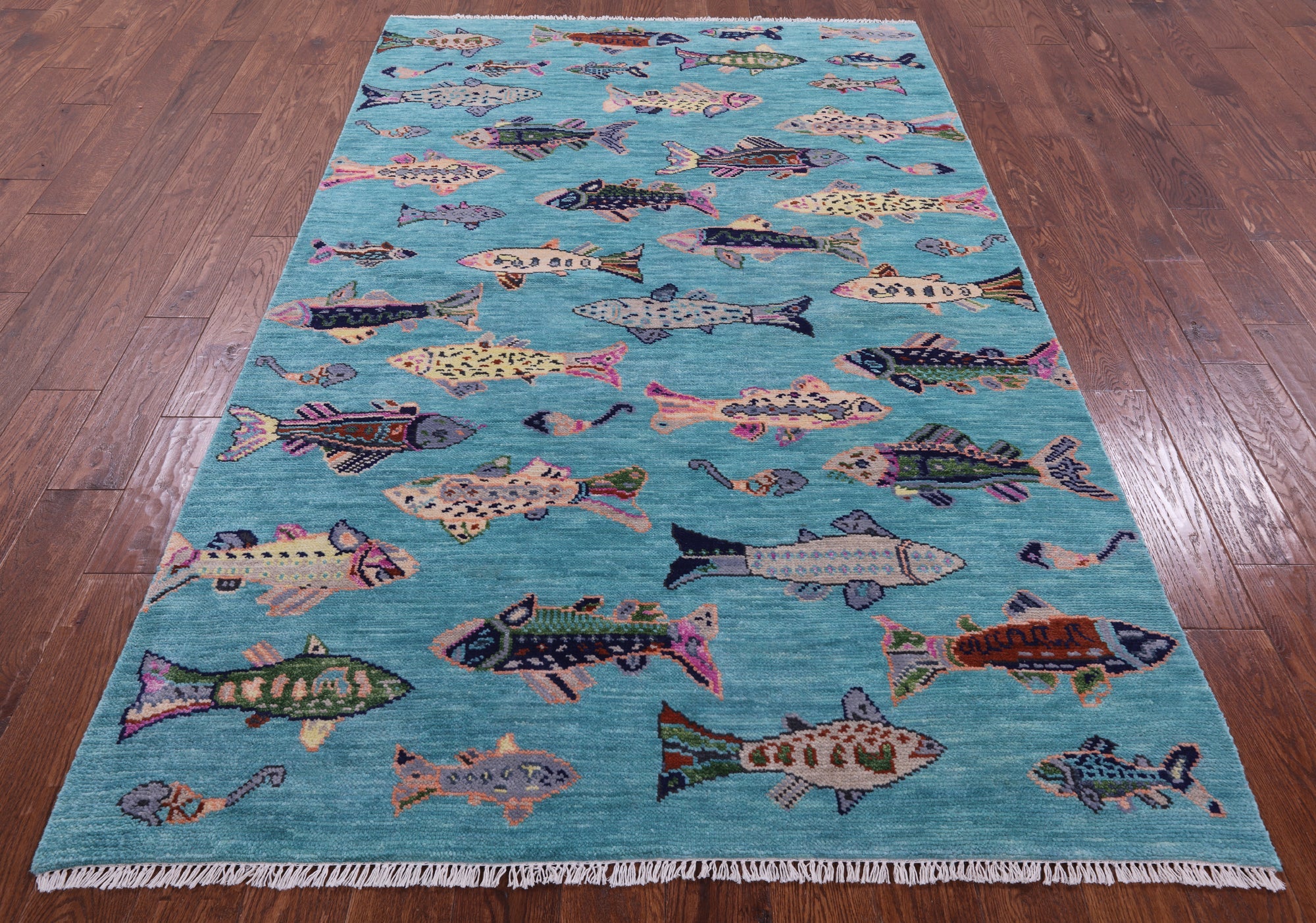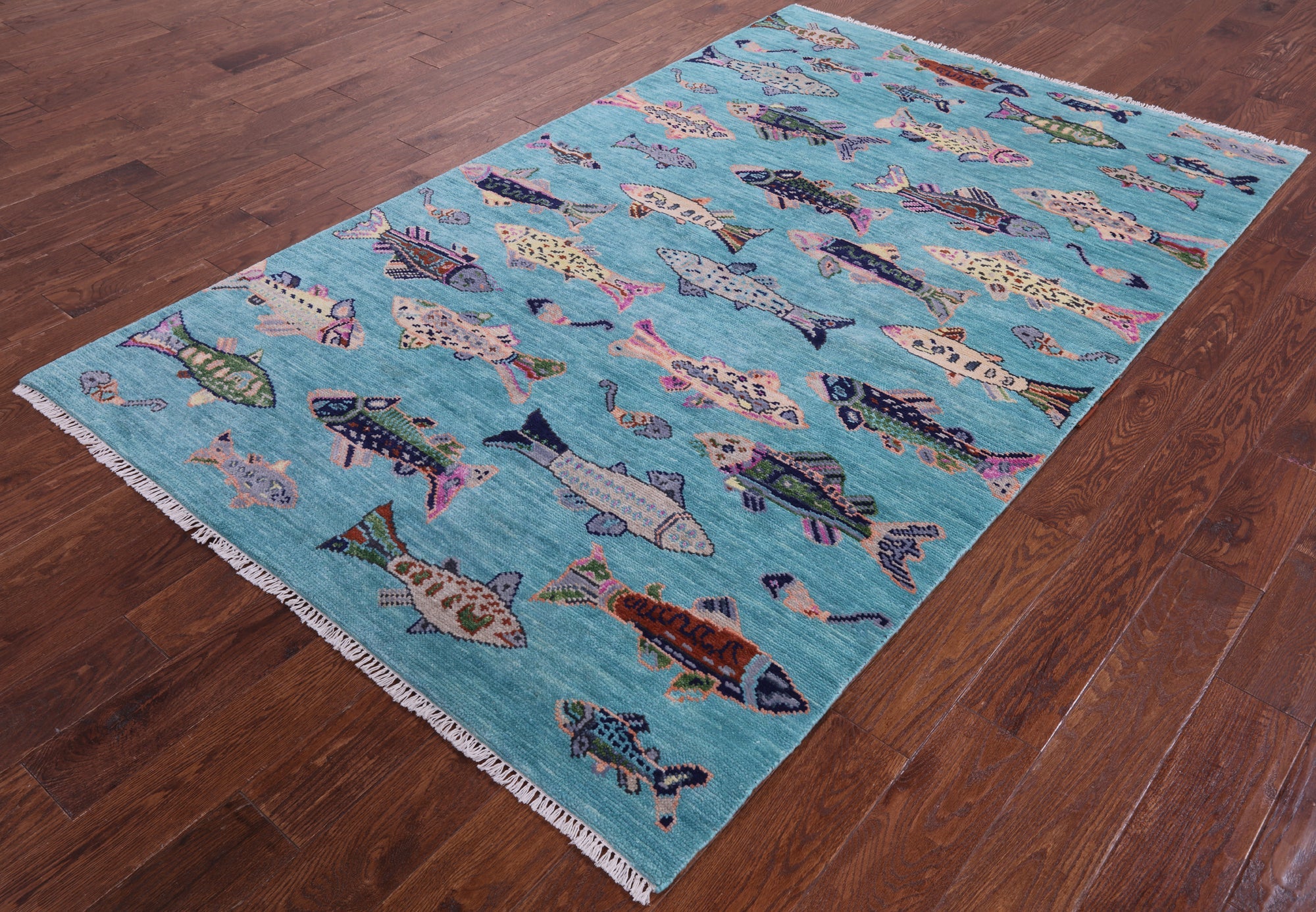Blue 5' 1" X 8' 2" Gabbeh Fish Design Hand-Knotted Wool Rug - Q15349 is backordered and will ship as soon as it is back in stock.