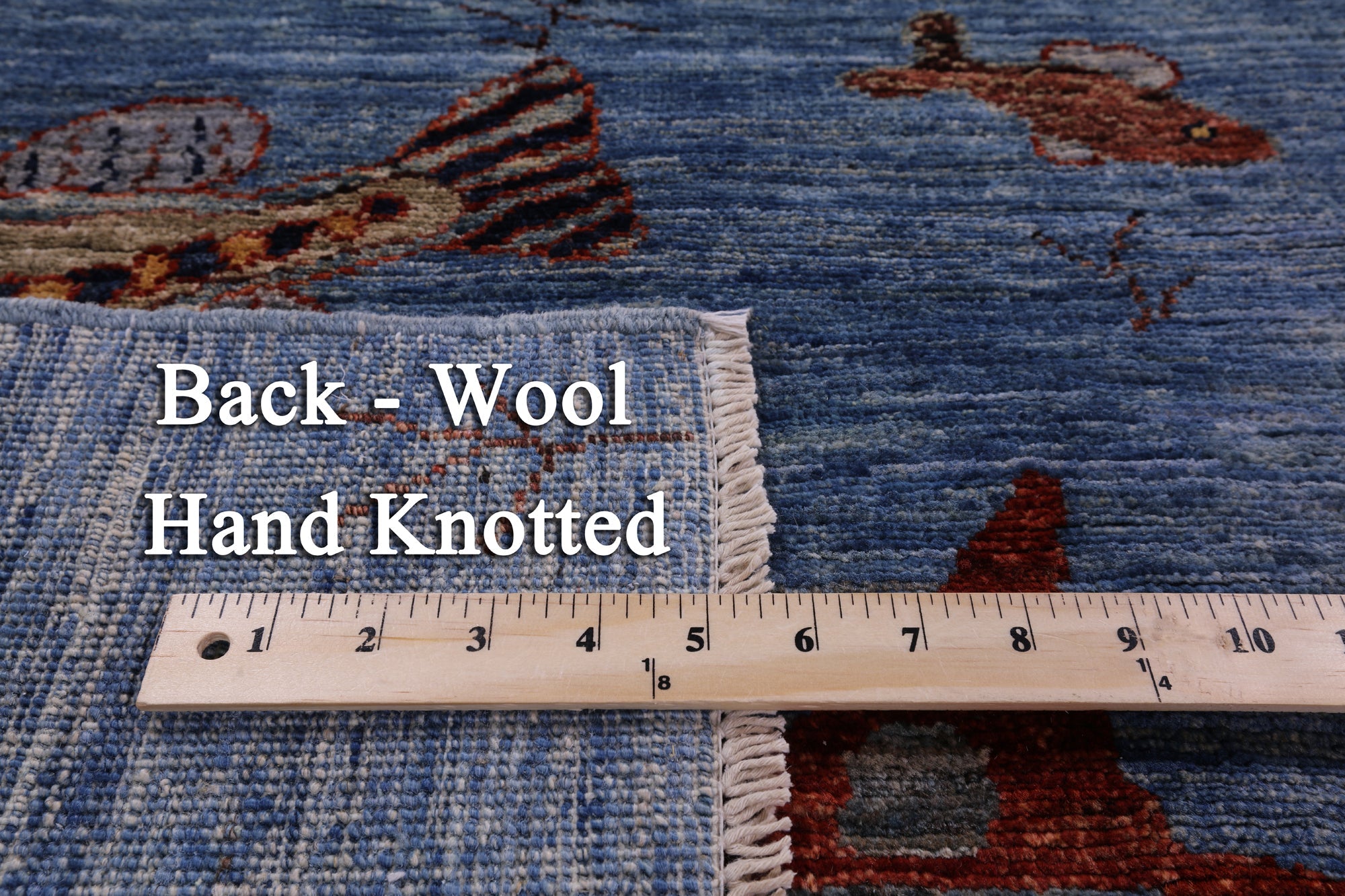 Blue 6' 1" X 8' 8" Gabbeh Fish Design Handmade Wool Rug - Q18677