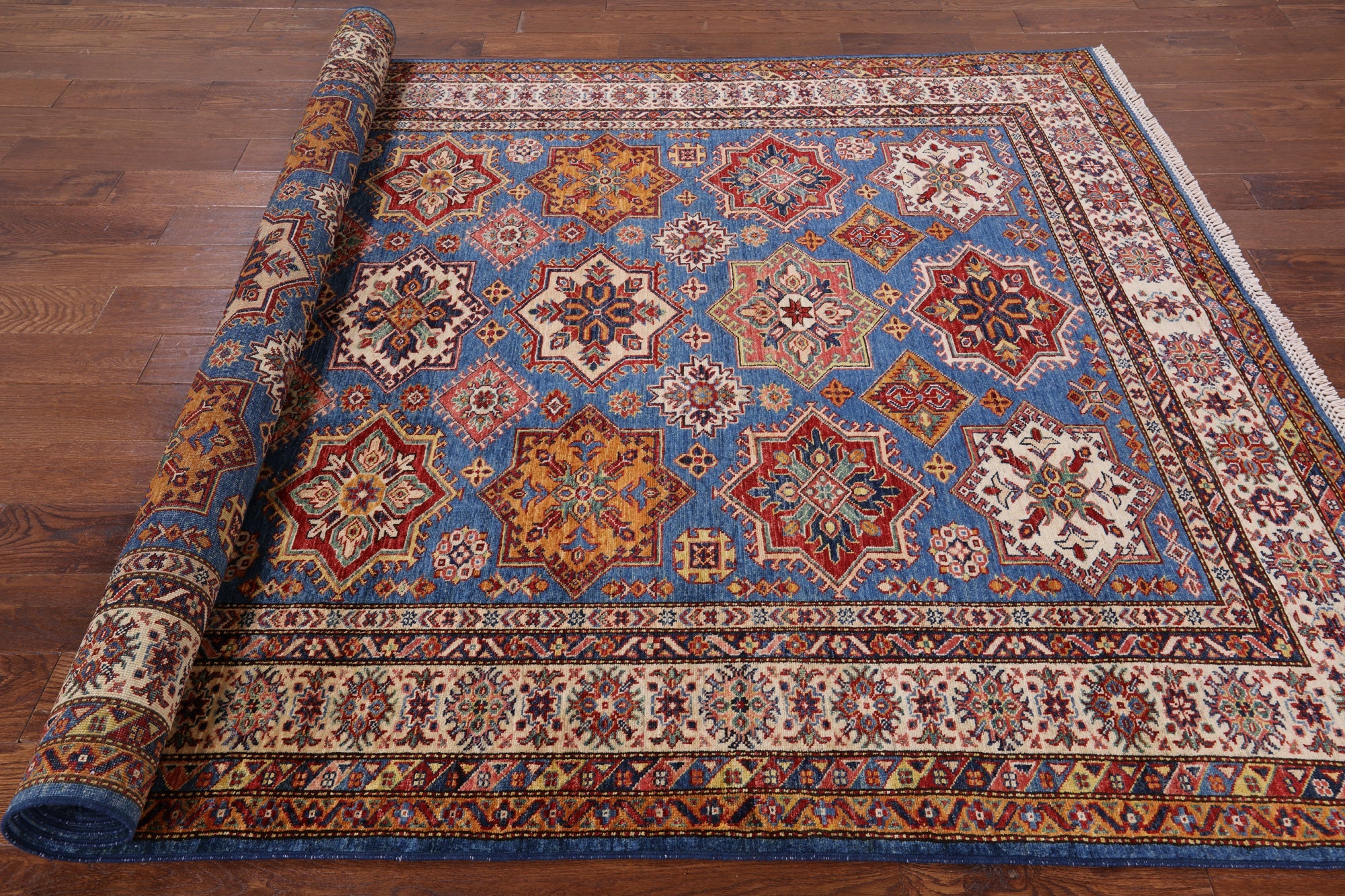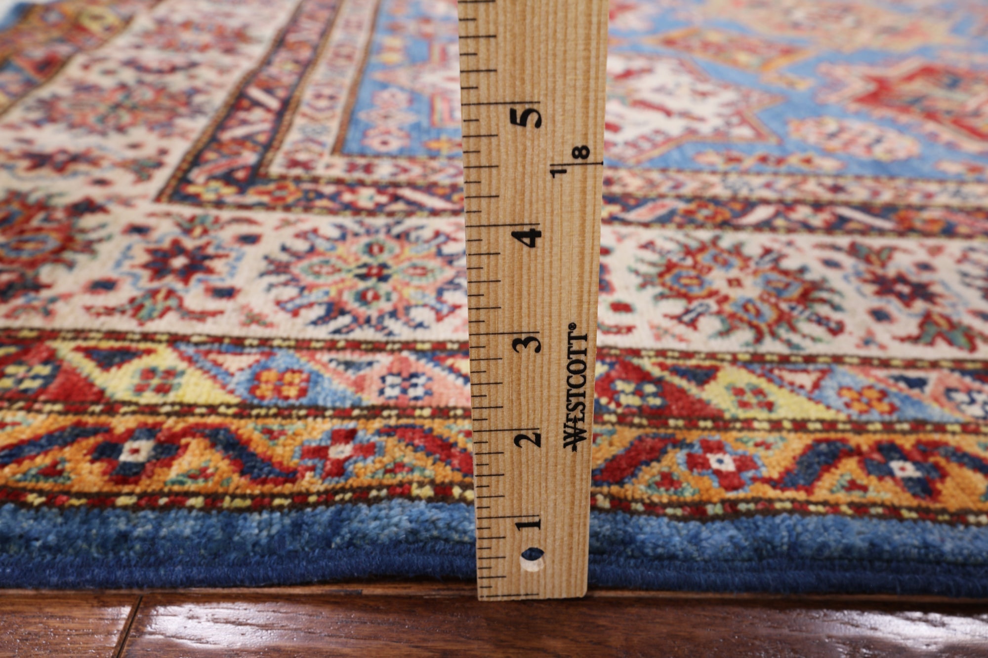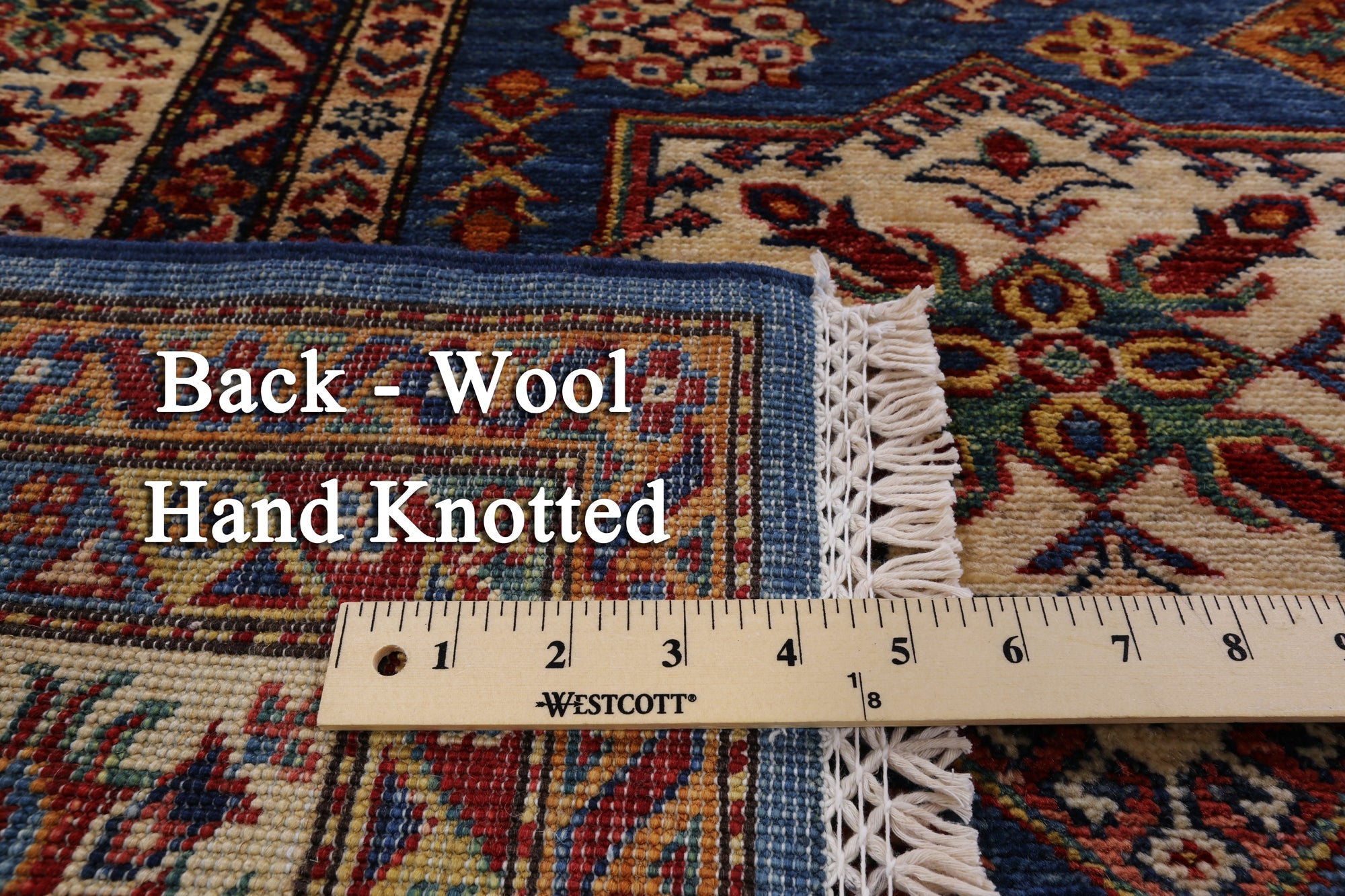 Blue Geometric Super Kazak Hand Knotted Area Rug 6' 3" X 9' 9" - P8986