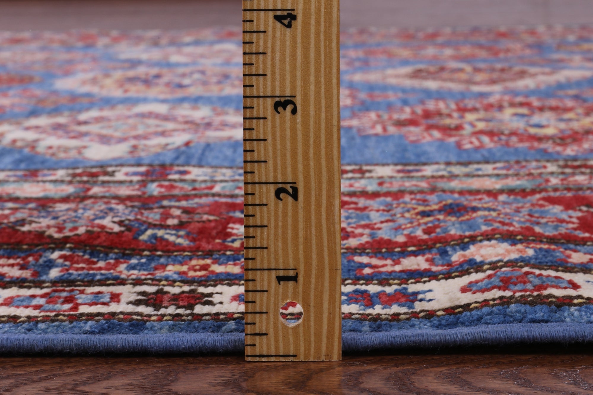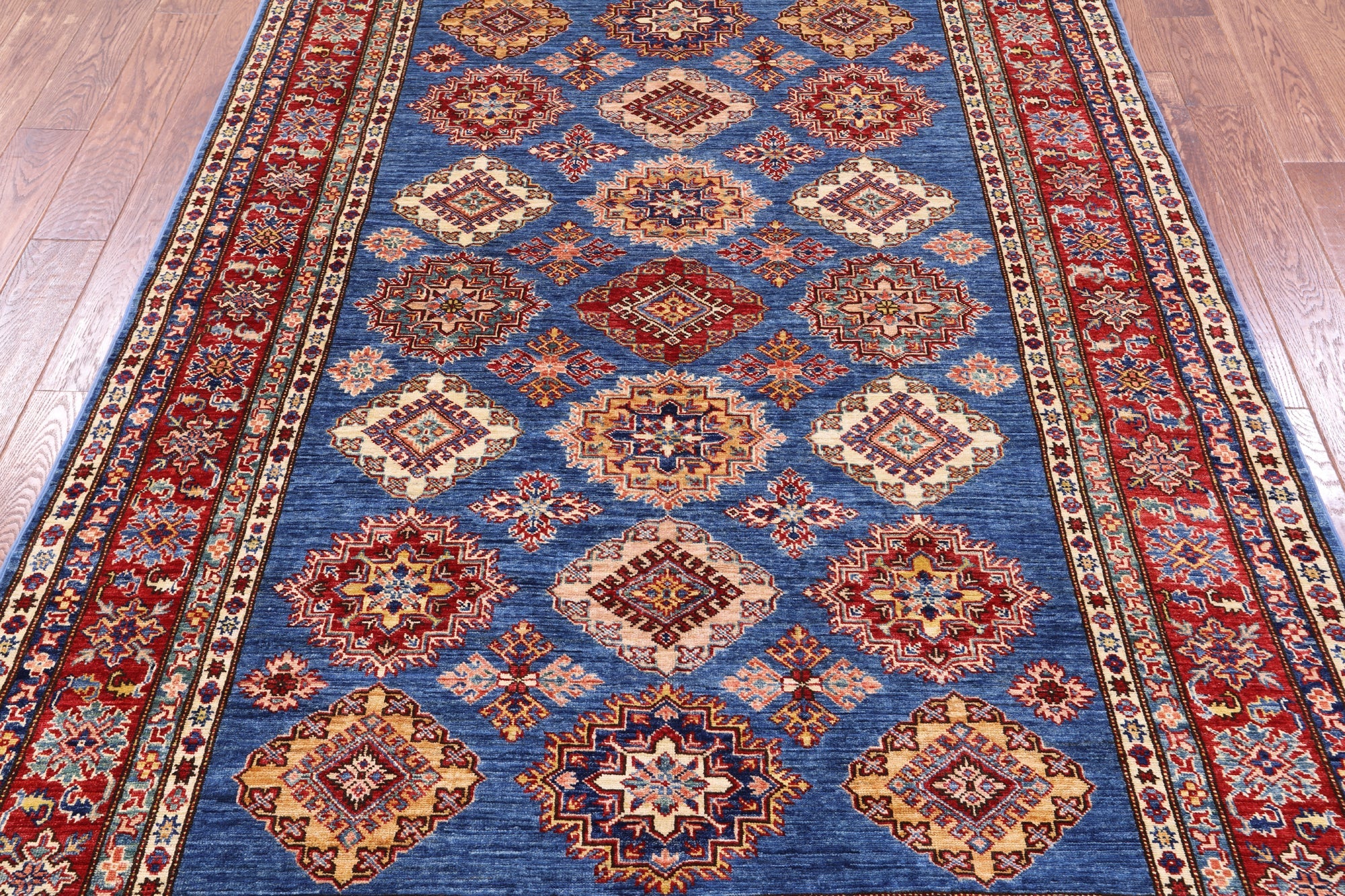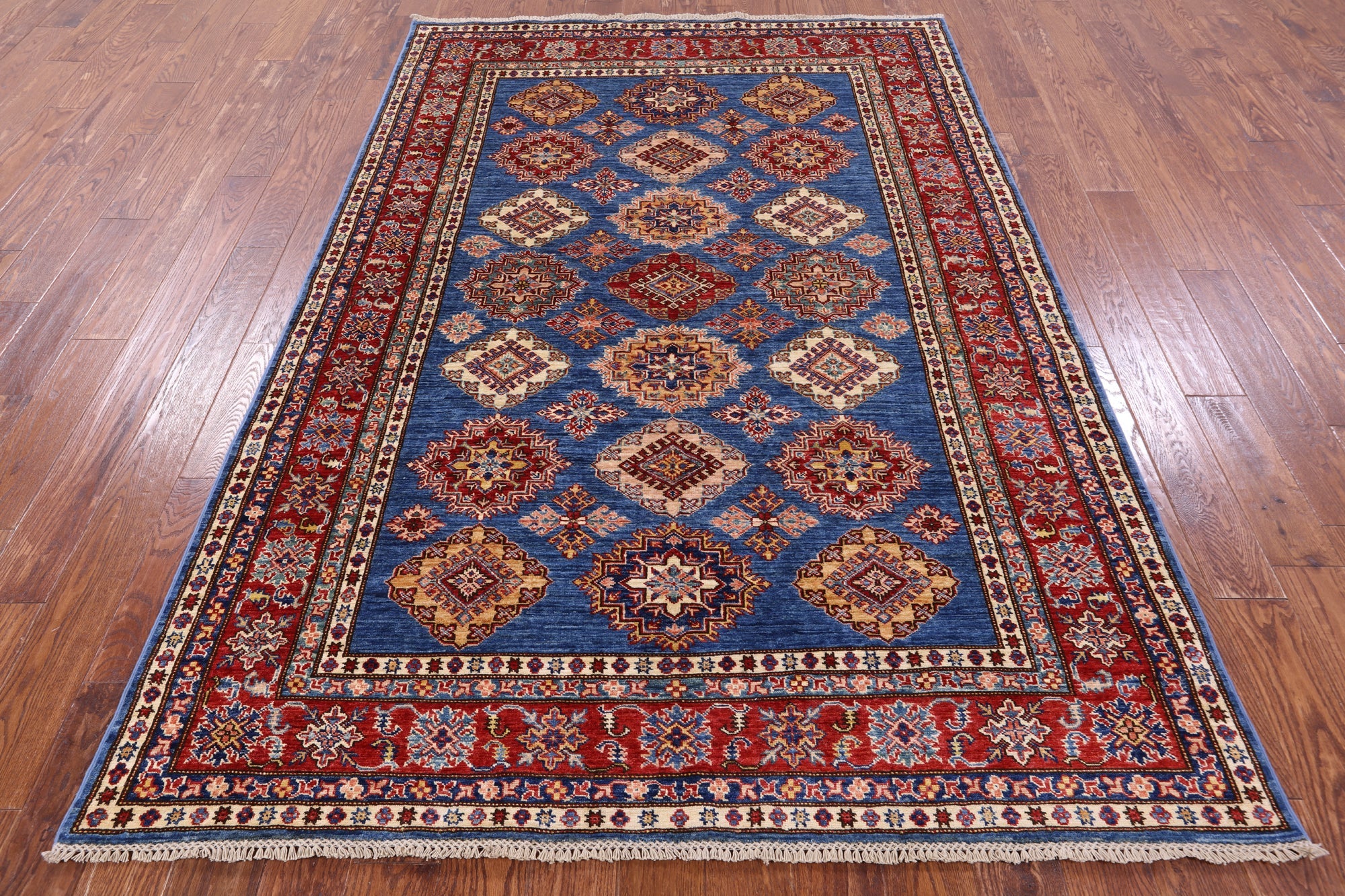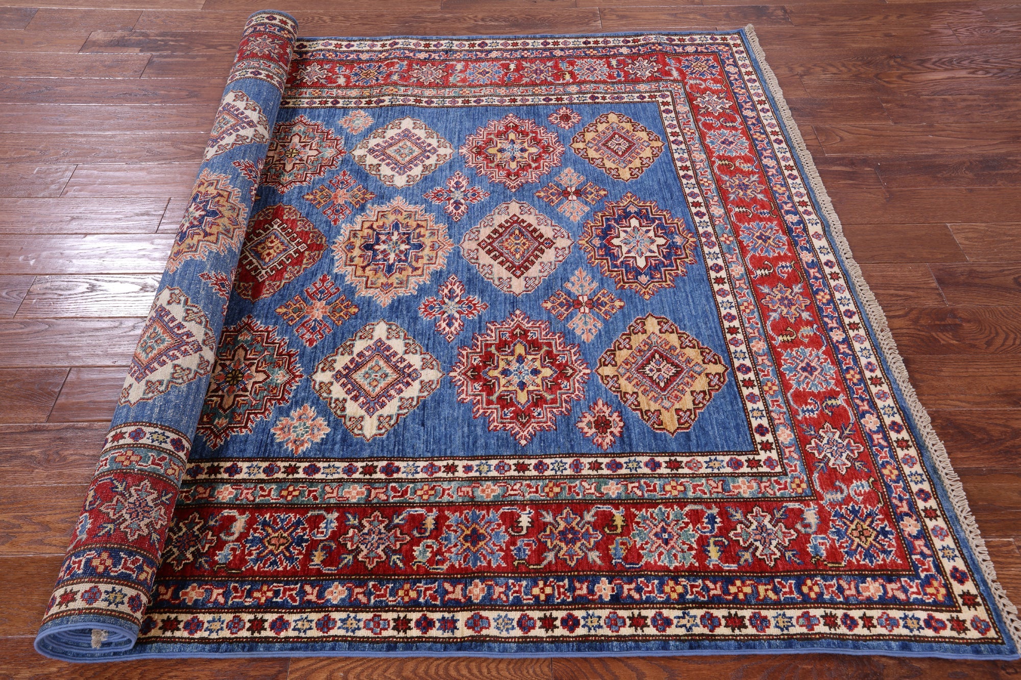 Blue 5' 10" X 8' 7" Geometric Super Kazak Hand-Knotted Wool Rug - Q12941 is backordered and will ship as soon as it is back in stock.