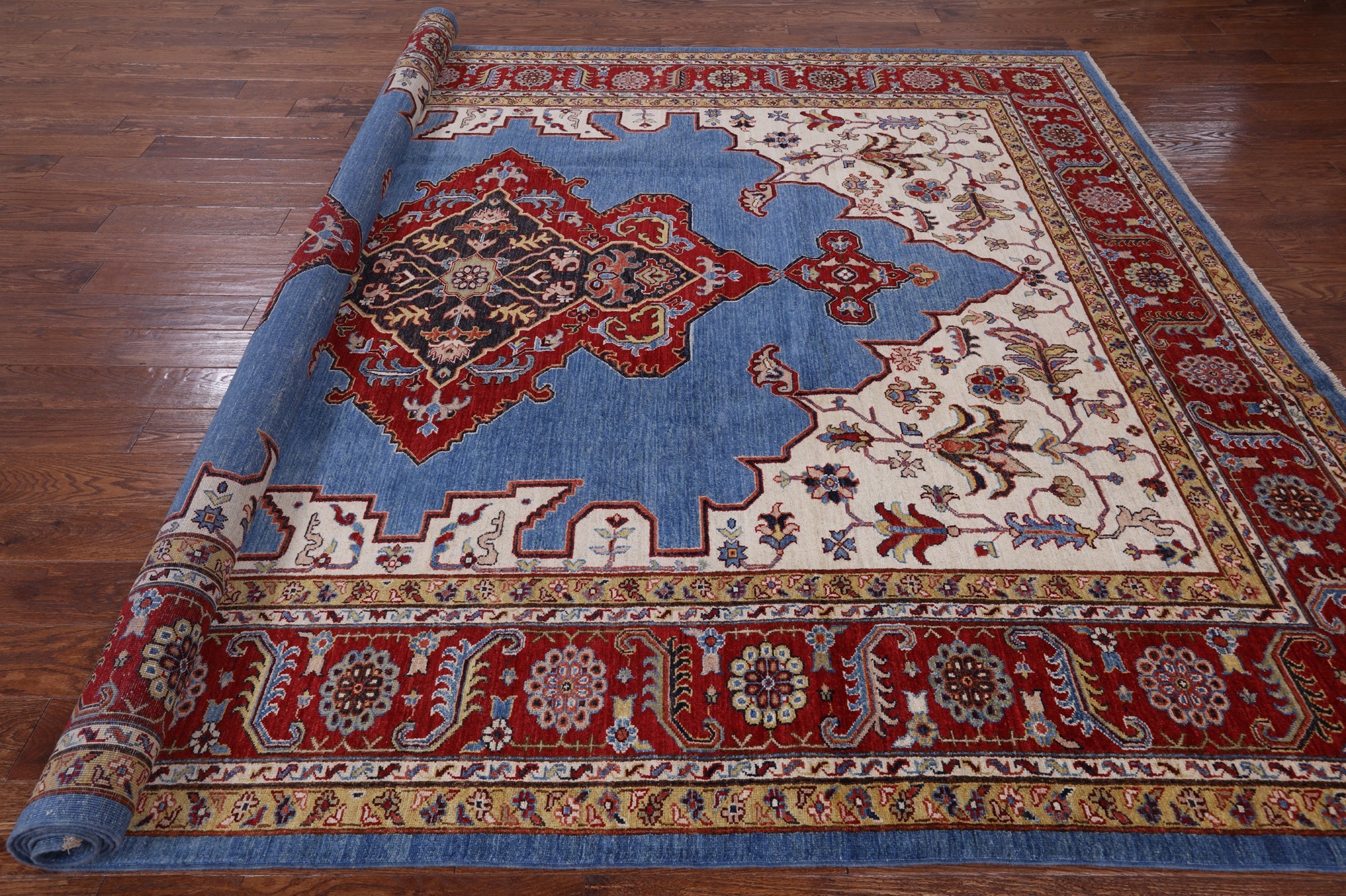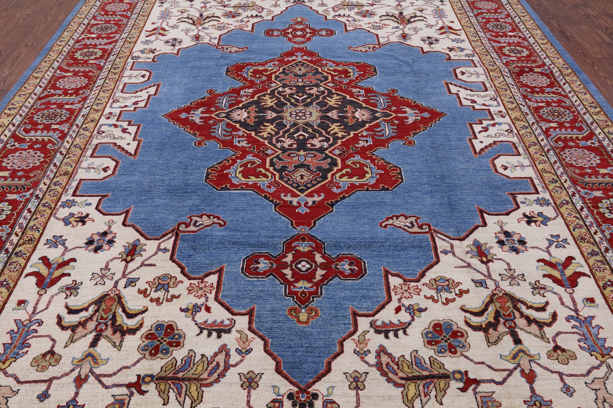 Blue Hand-Knotted Fine Serapi Area Rug 8' 10" X 11' 9" - P8728 is backordered and will ship as soon as it is back in stock.