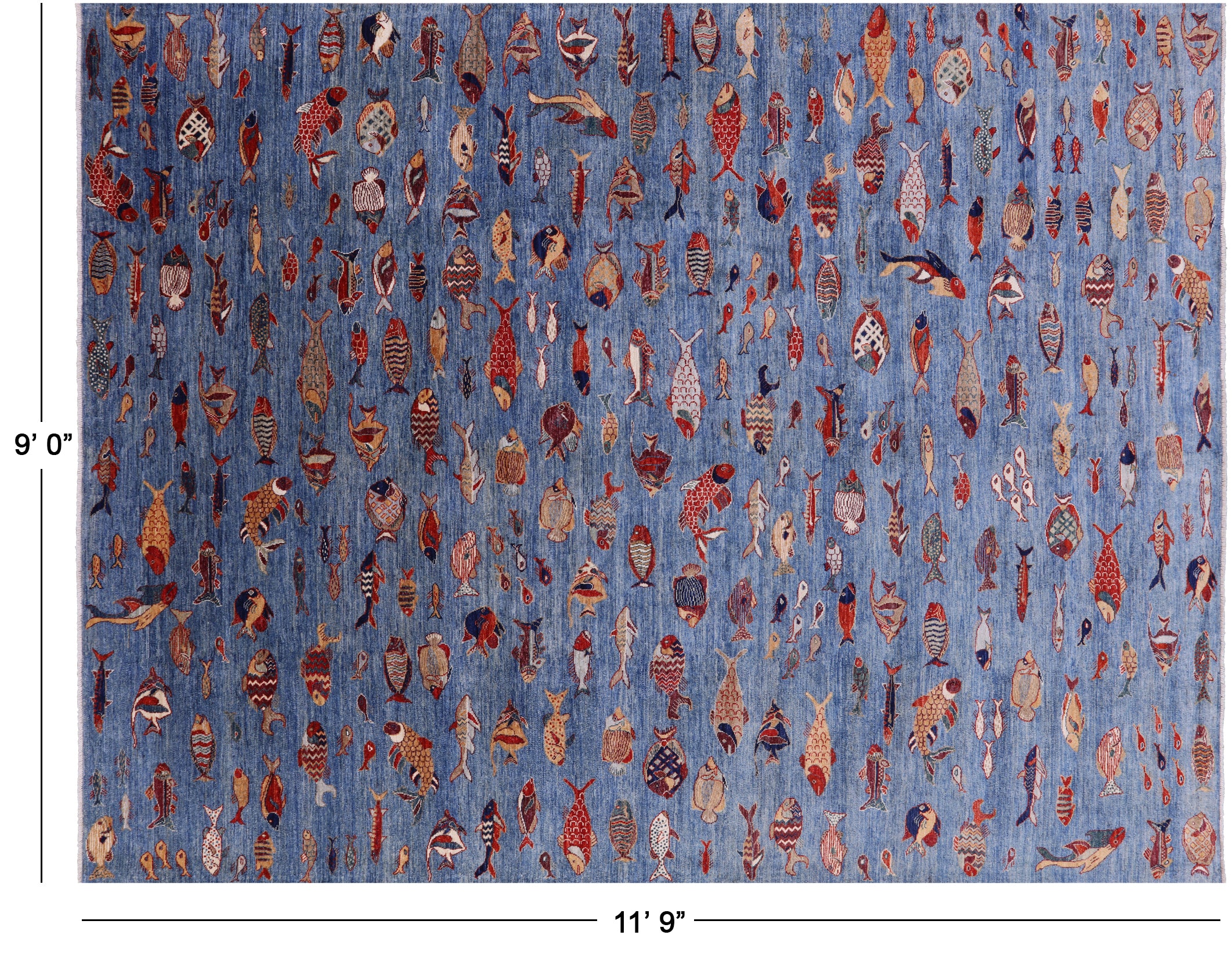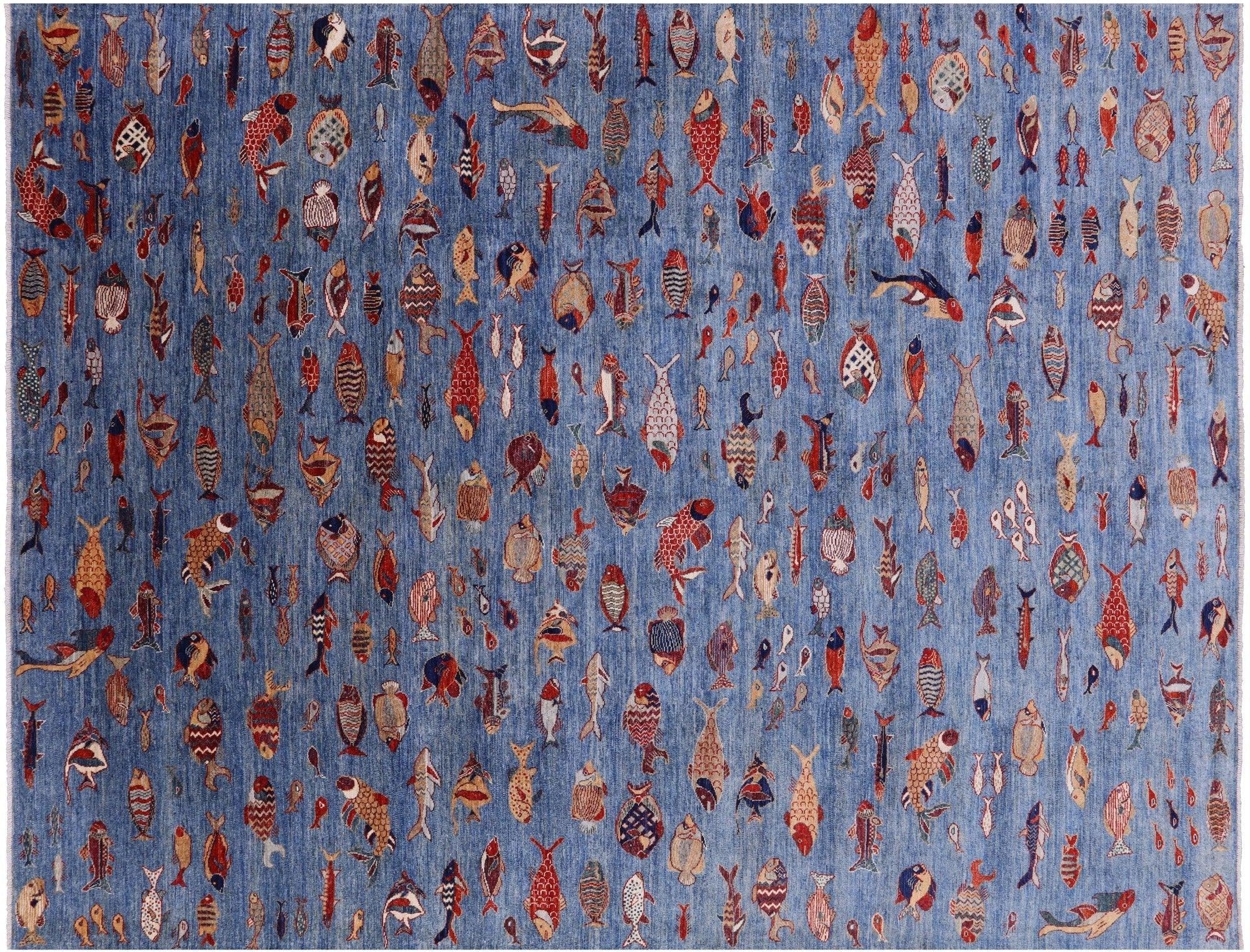 Blue 9' 0" X 11' 9" Hand-Knotted Gabbeh Fish Design Rug - Q20406