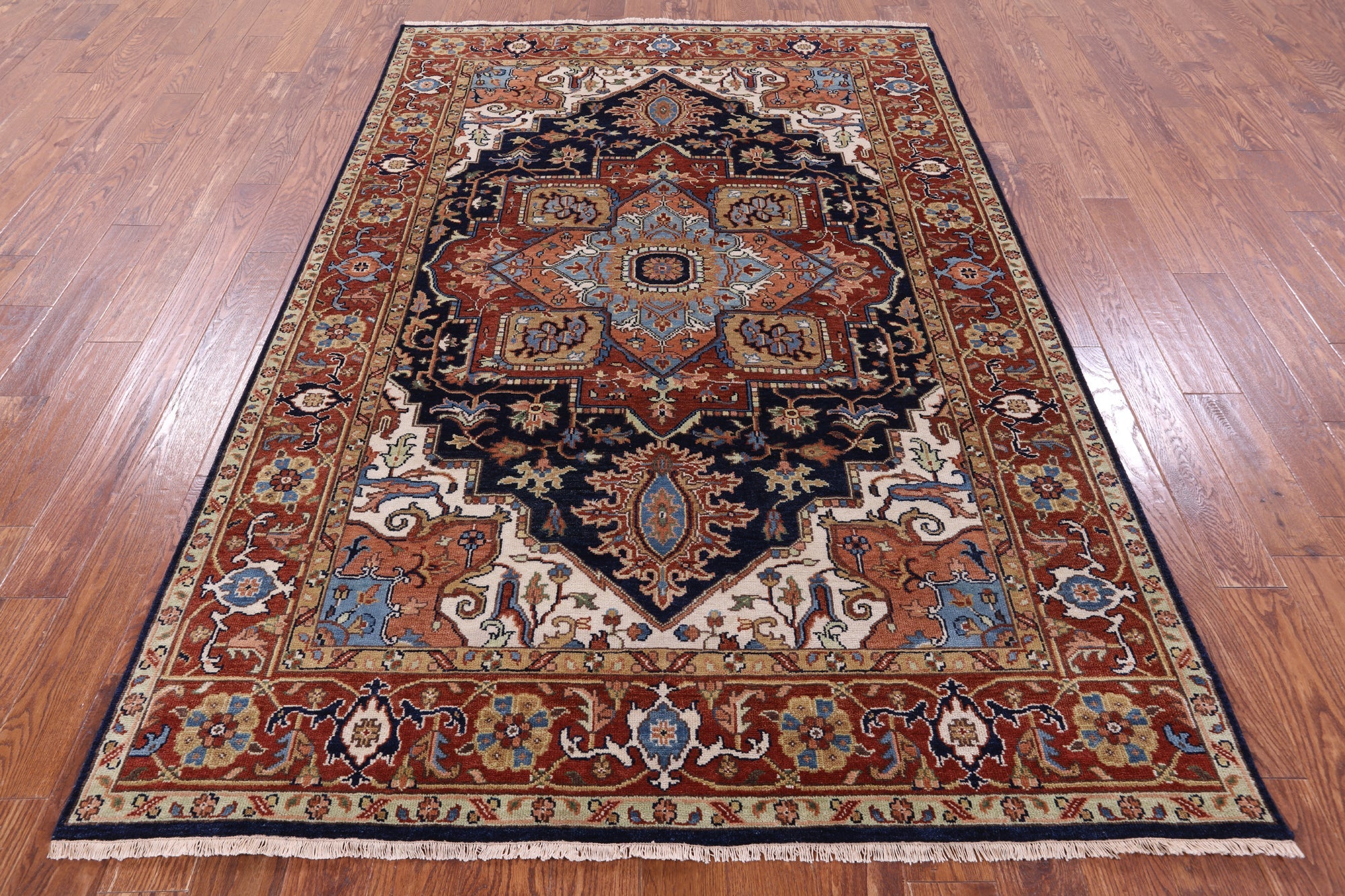 Blue Hand-Knotted Heriz Serapi Wool Rug 5' 11" X 8' 11" - Q11561 is backordered and will ship as soon as it is back in stock.