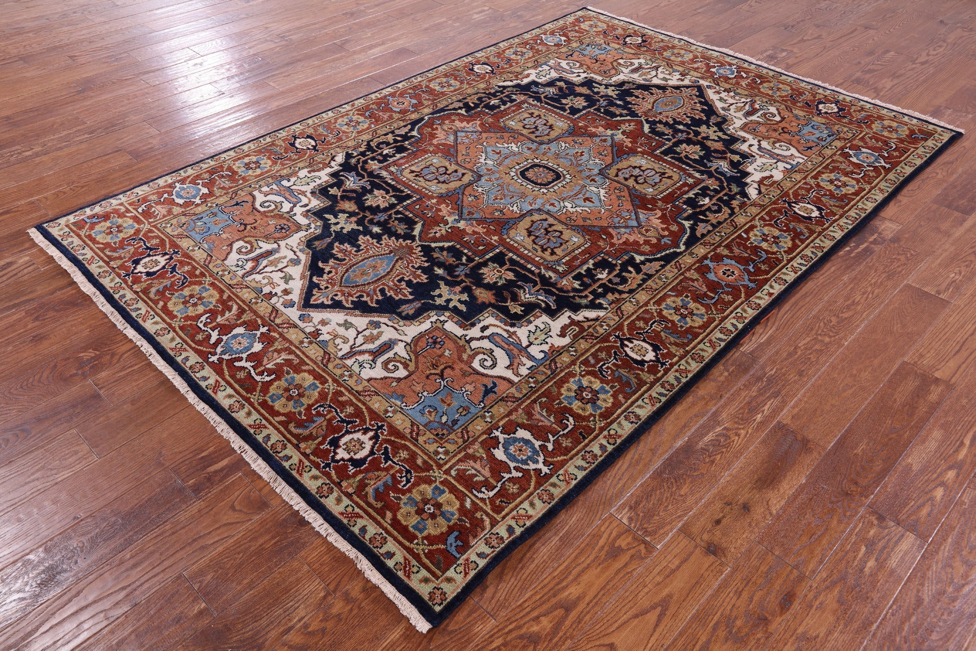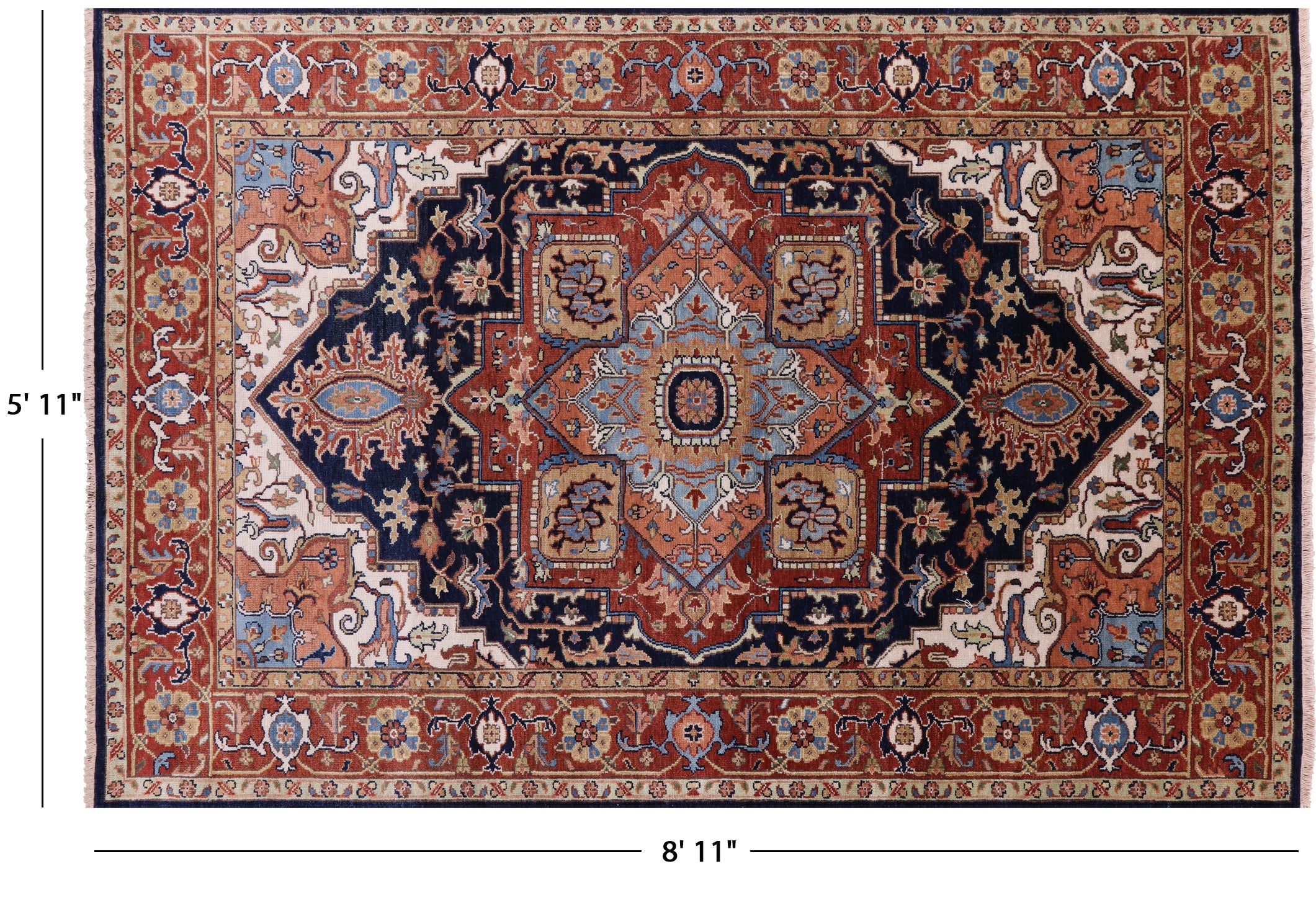 Blue Hand-Knotted Heriz Serapi Wool Rug 5' 11" X 8' 11" - Q11561