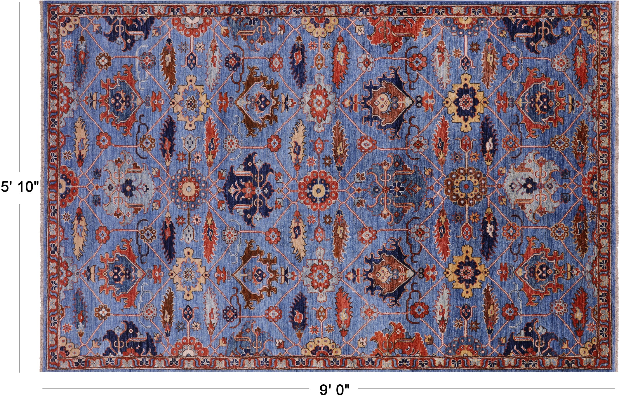 Blue 5' 10" X 9' 0" Hand Knotted Persian Fine Serapi Wool Rug - Q12868