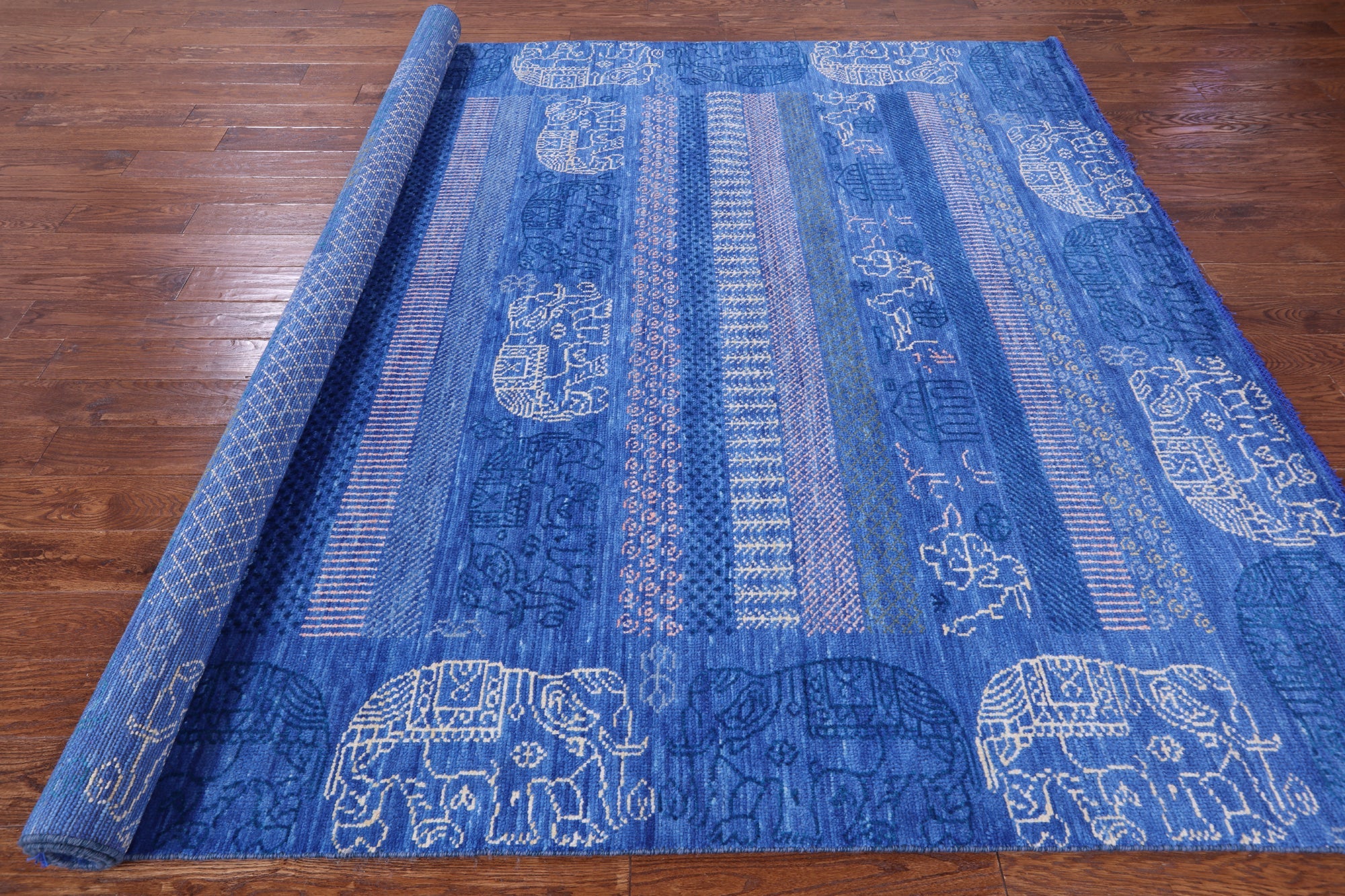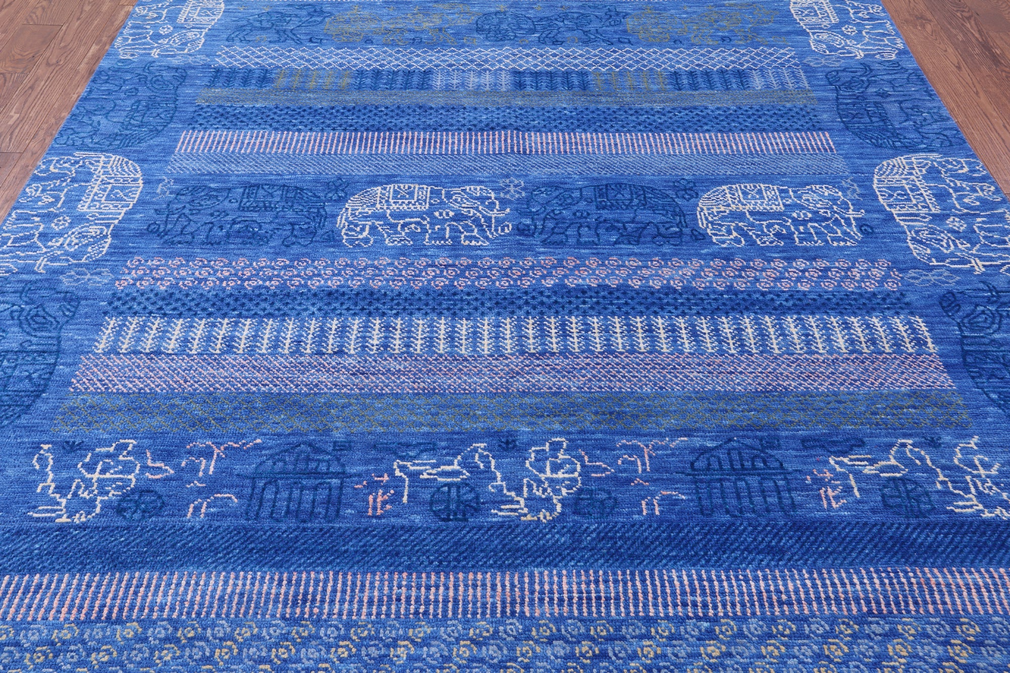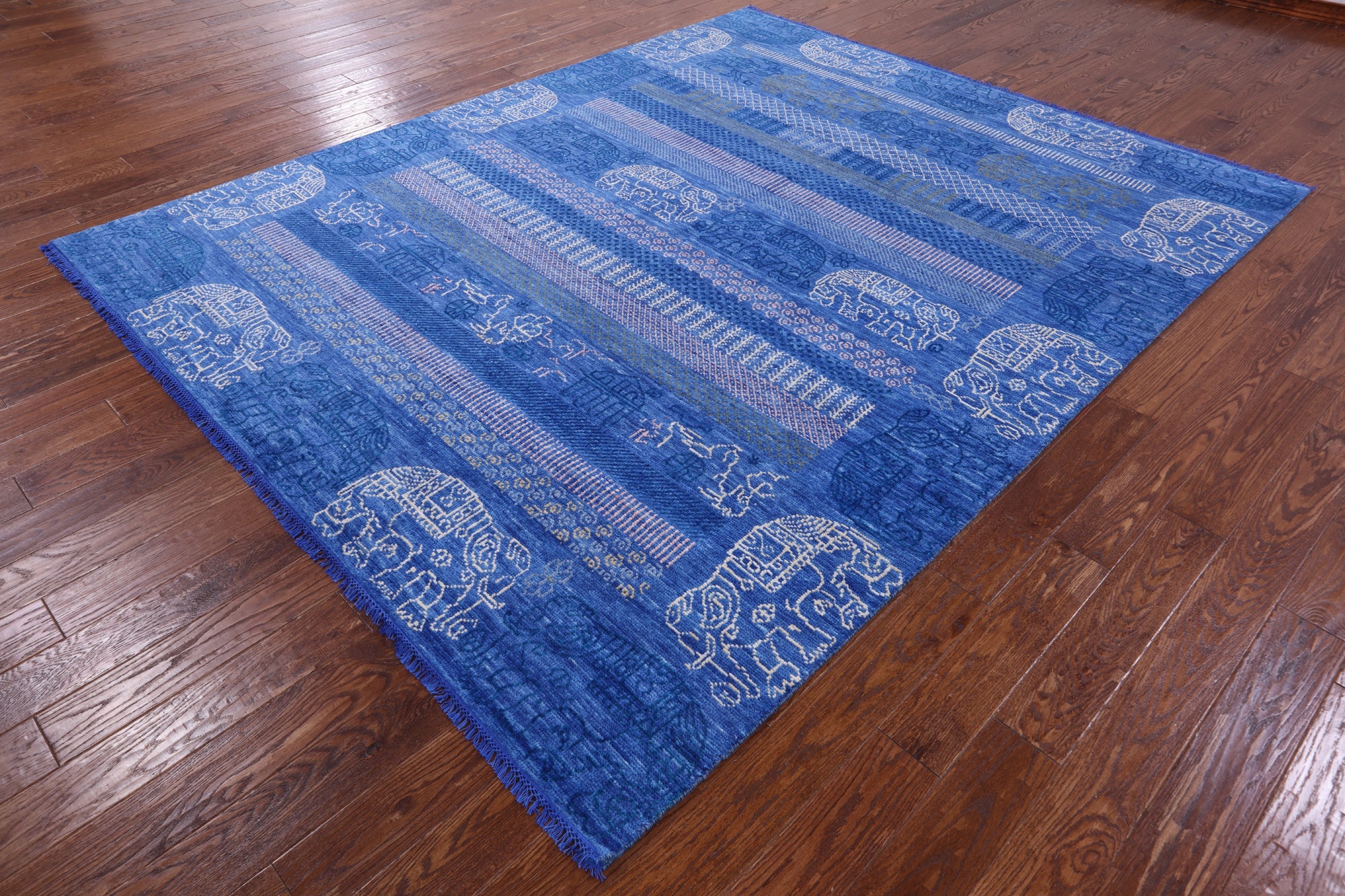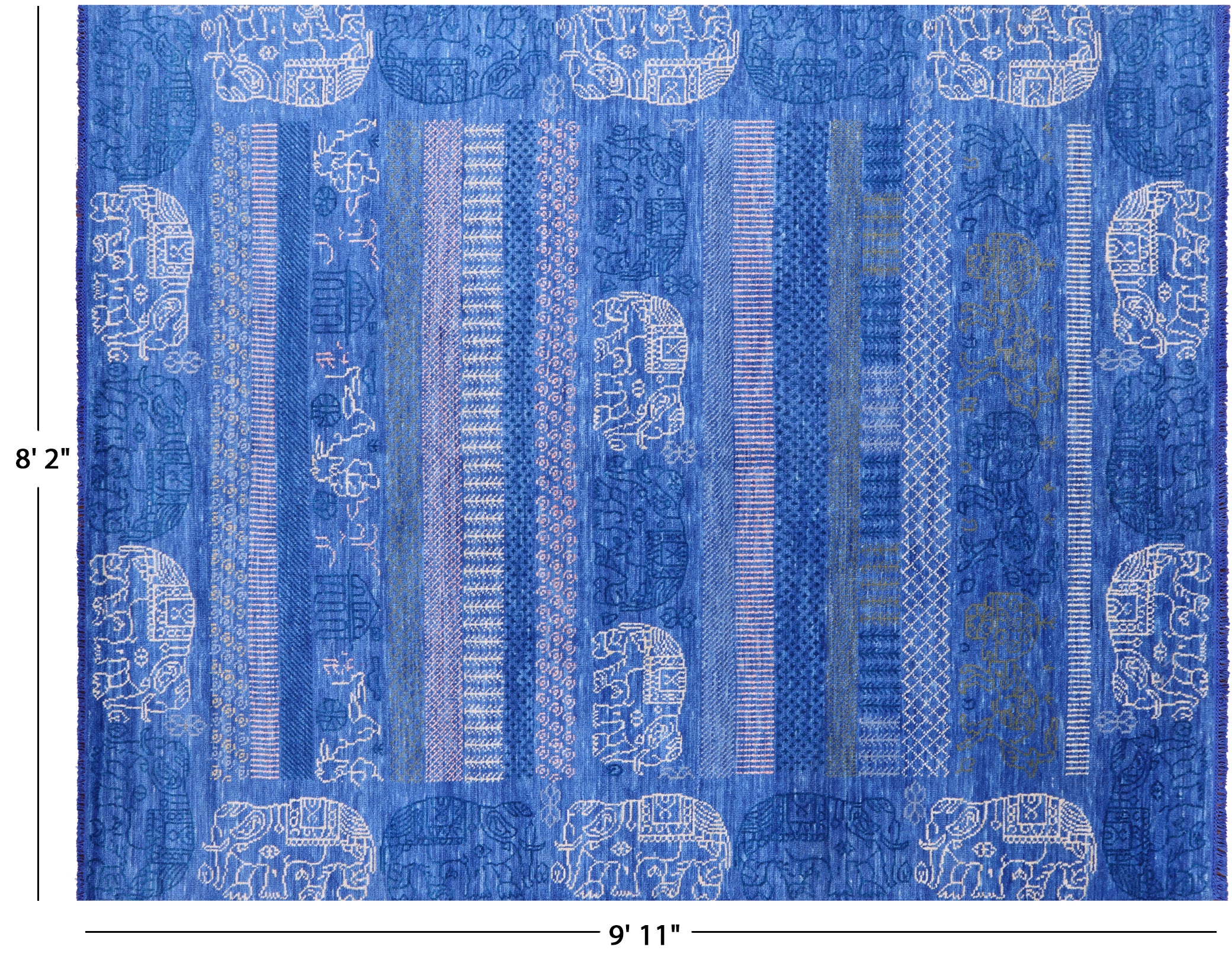Blue Hand Knotted Persian Gabbeh Elephant Design Wool Rug 8' 2" X 9' 11" - Q13611