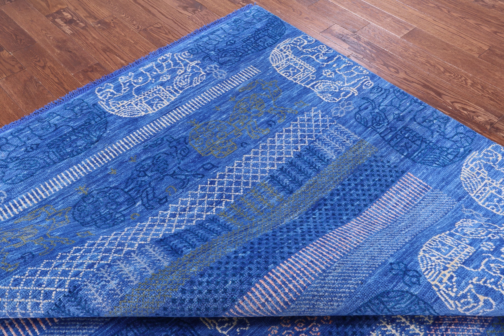 Blue Hand Knotted Persian Gabbeh Elephant Design Wool Rug 8' 2" X 9' 11" - Q13611 is backordered and will ship as soon as it is back in stock.