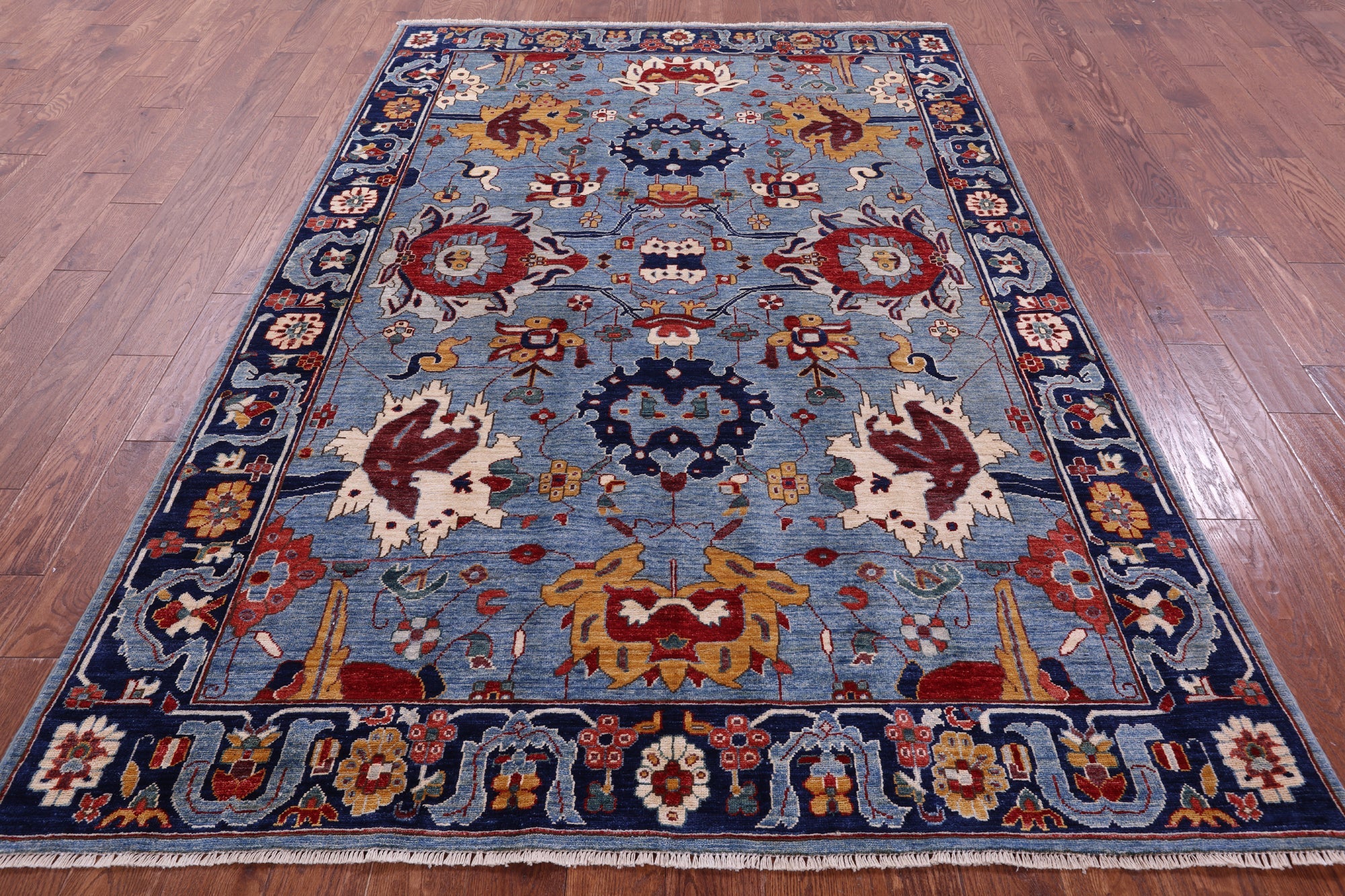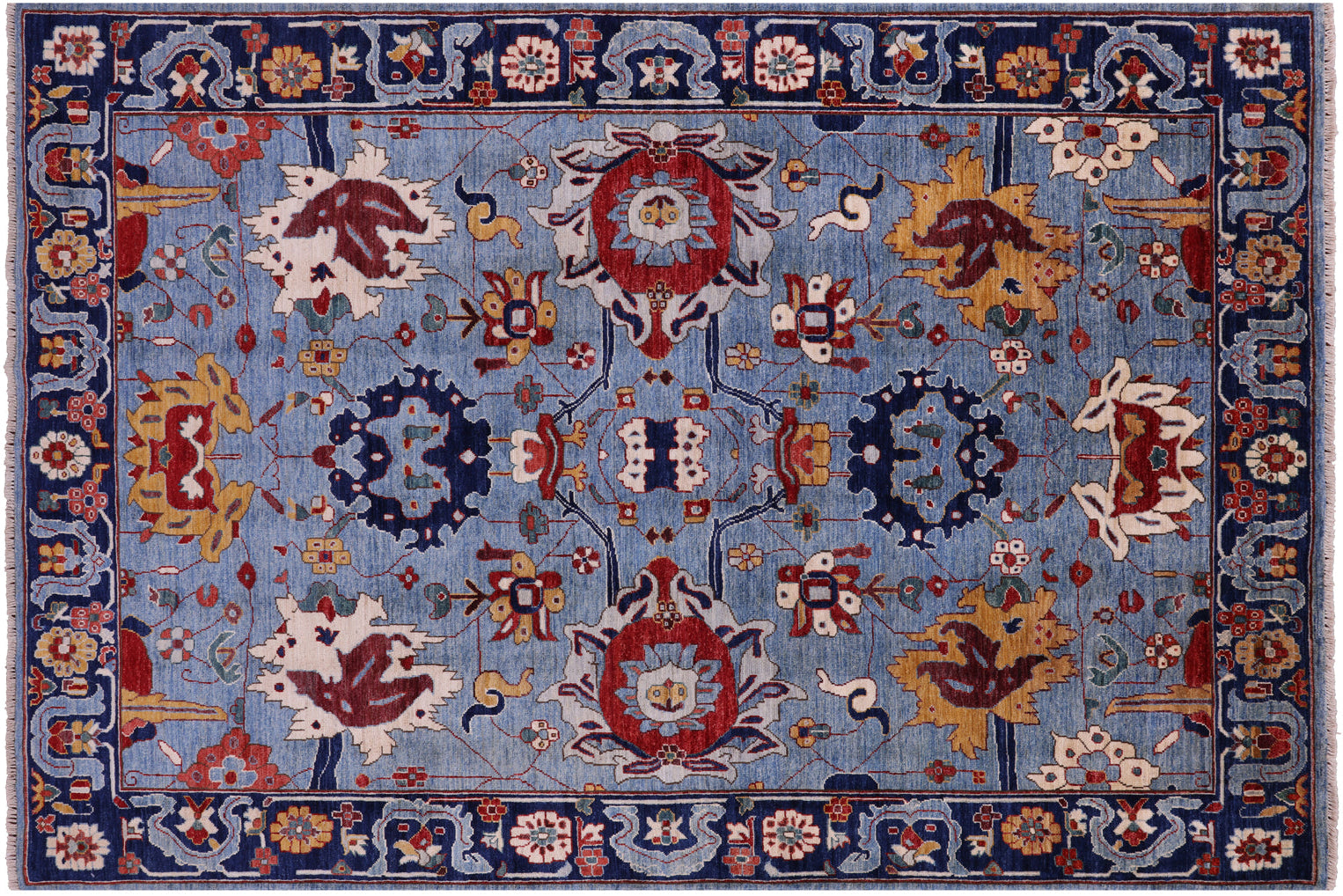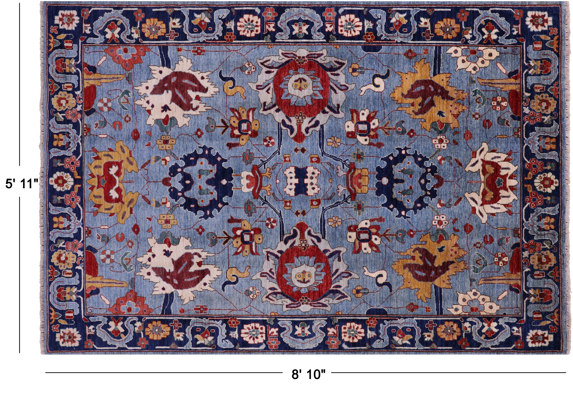 Blue 5' 11" X 8' 10" Hand-Knotted Persian Heriz Serapi Wool Rug - Q22746