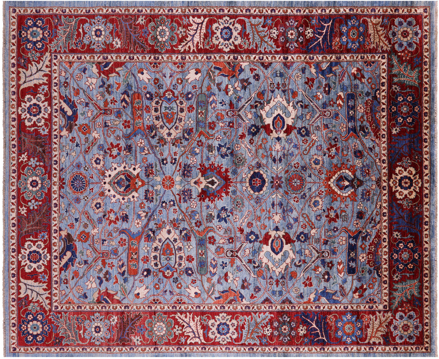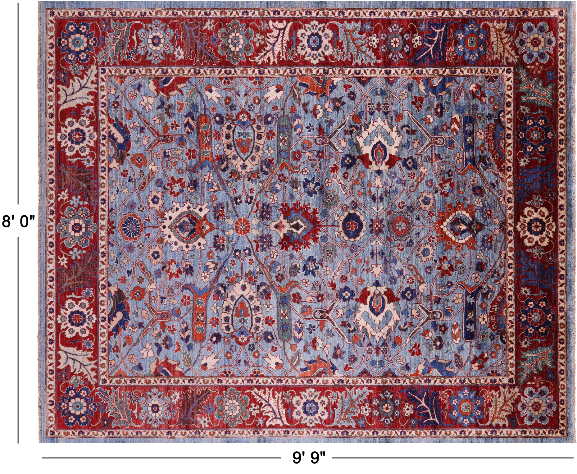 Blue Hand Knotted Persian Heriz Serapi Wool Rug 8' 0" X 9' 9" - Q23068