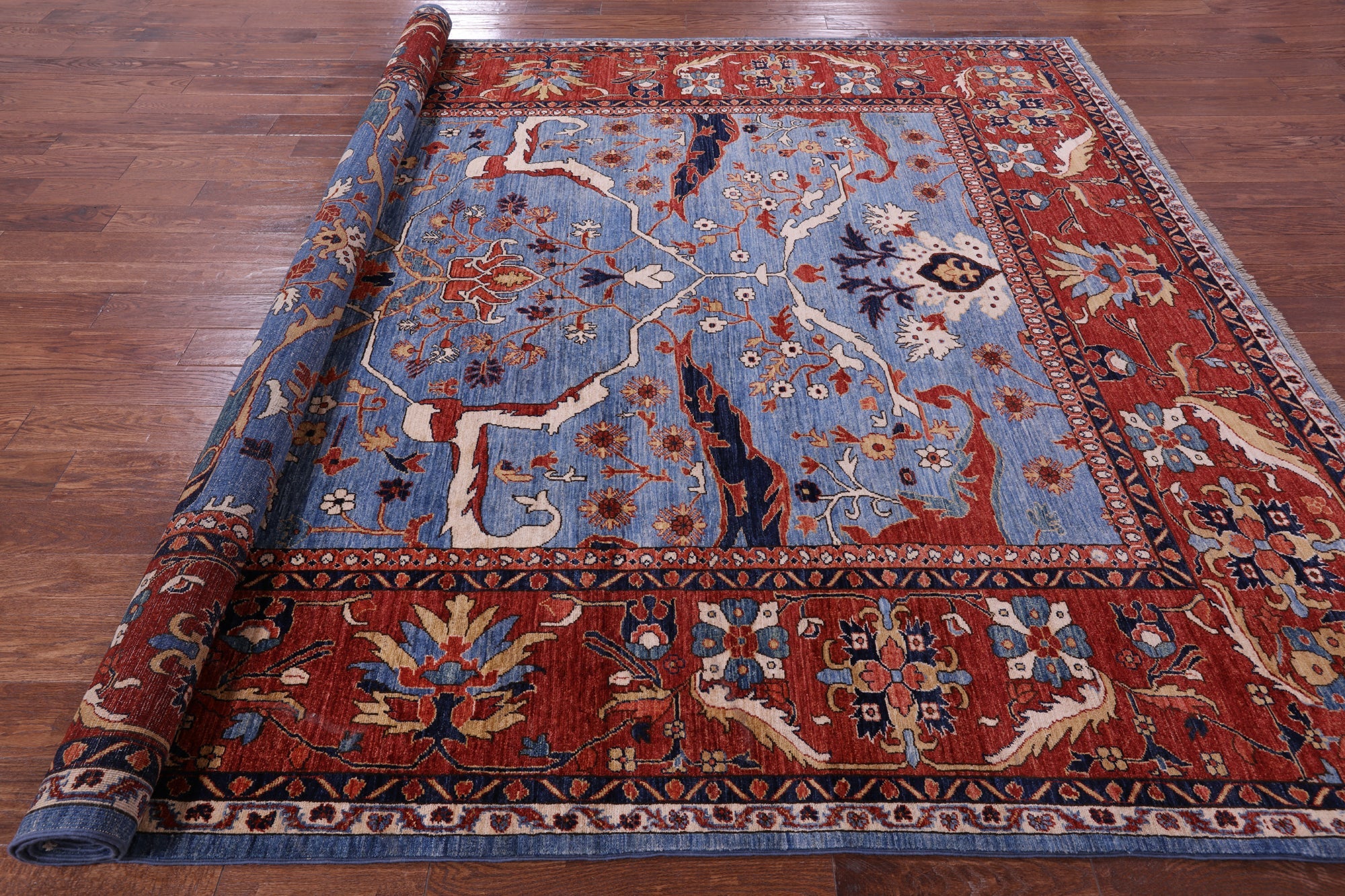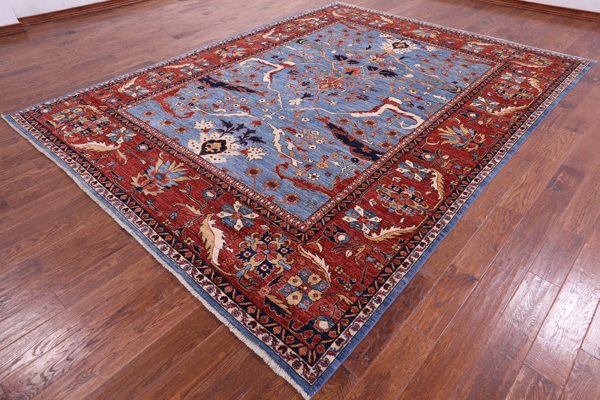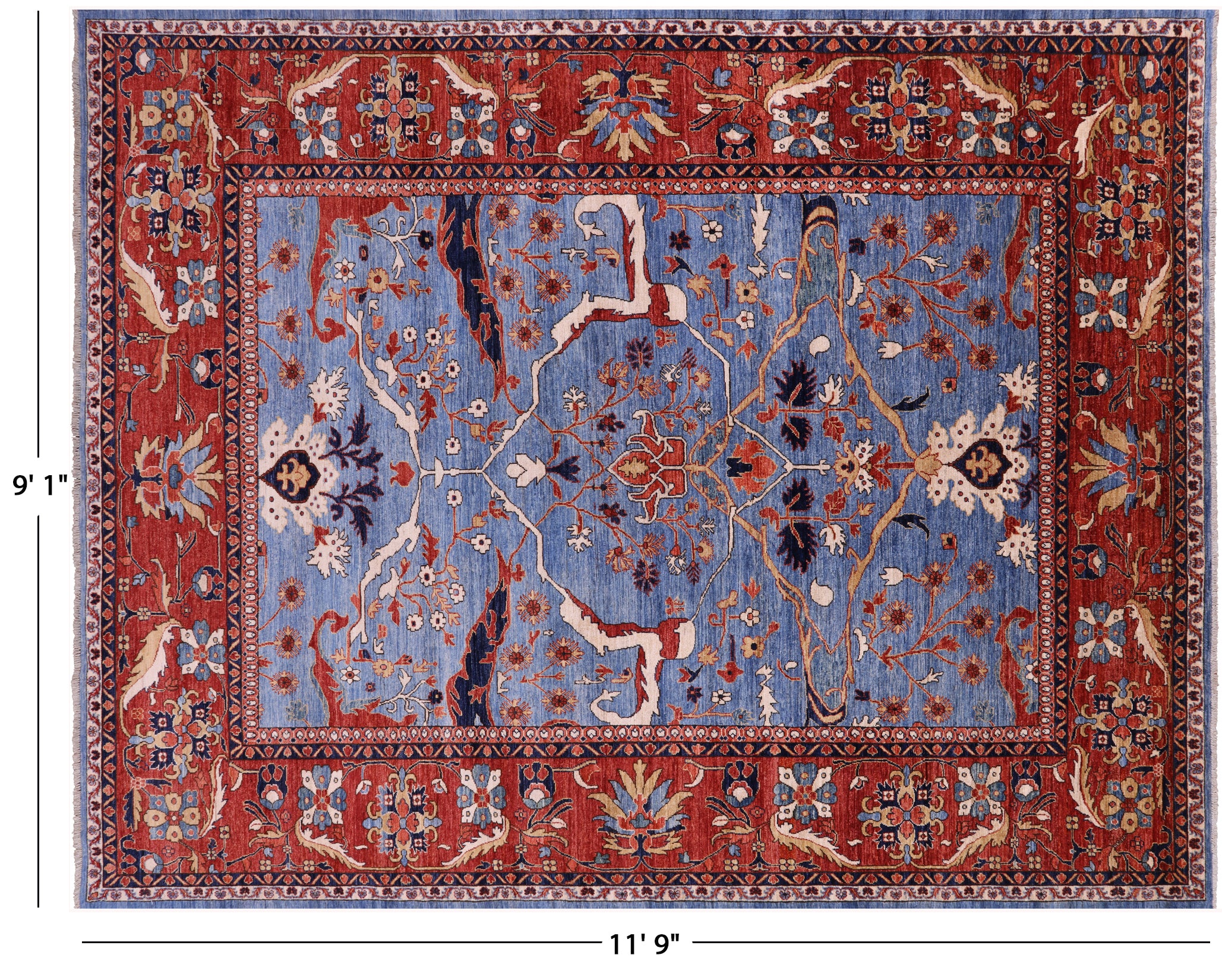 Blue 9' 1" X 11' 9" Hand Knotted Super Heriz Serapi Wool Rug - Q18641