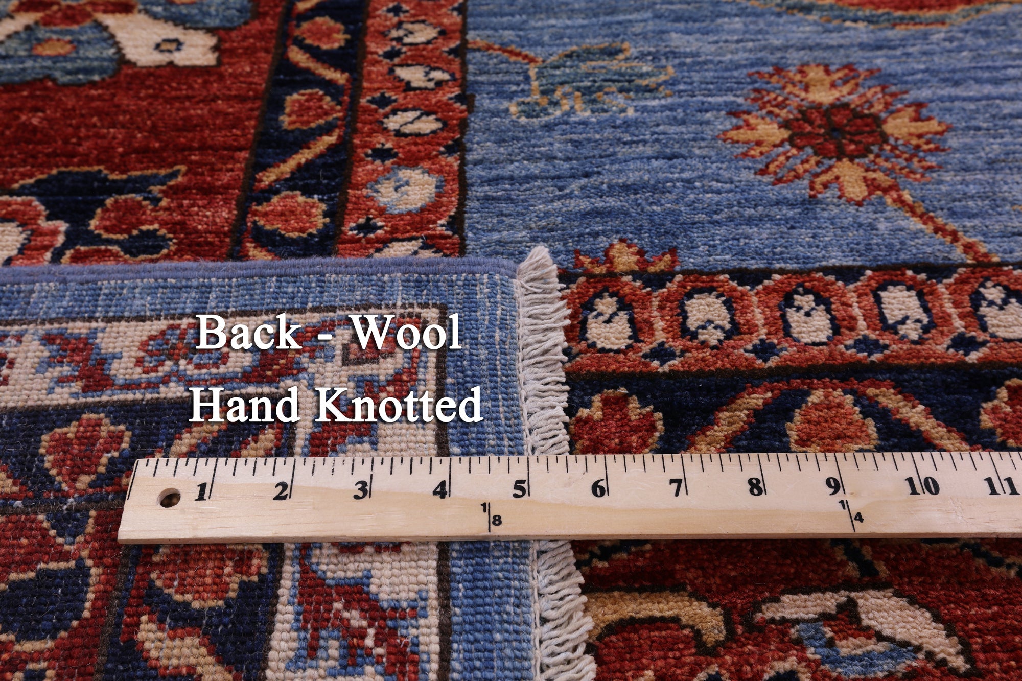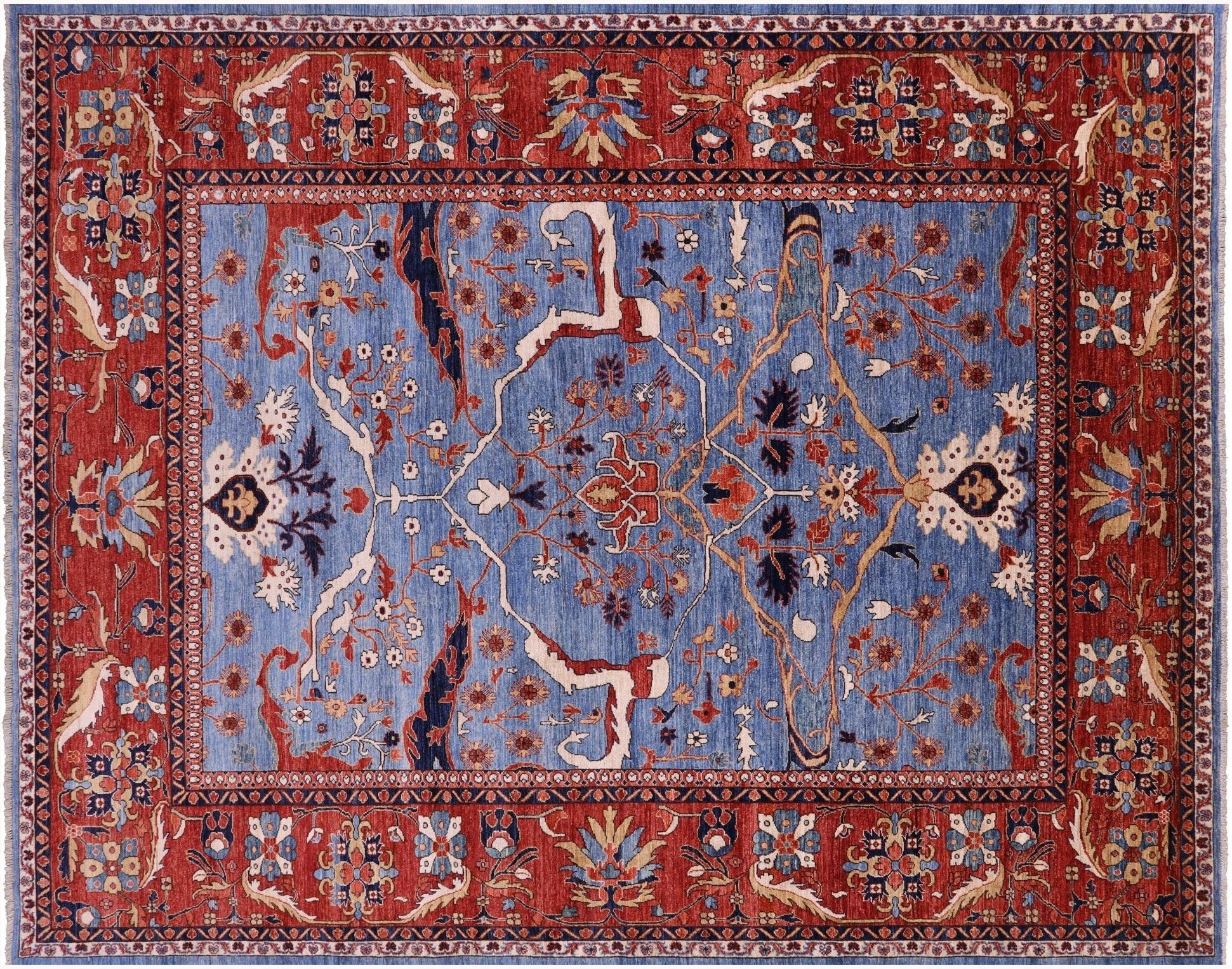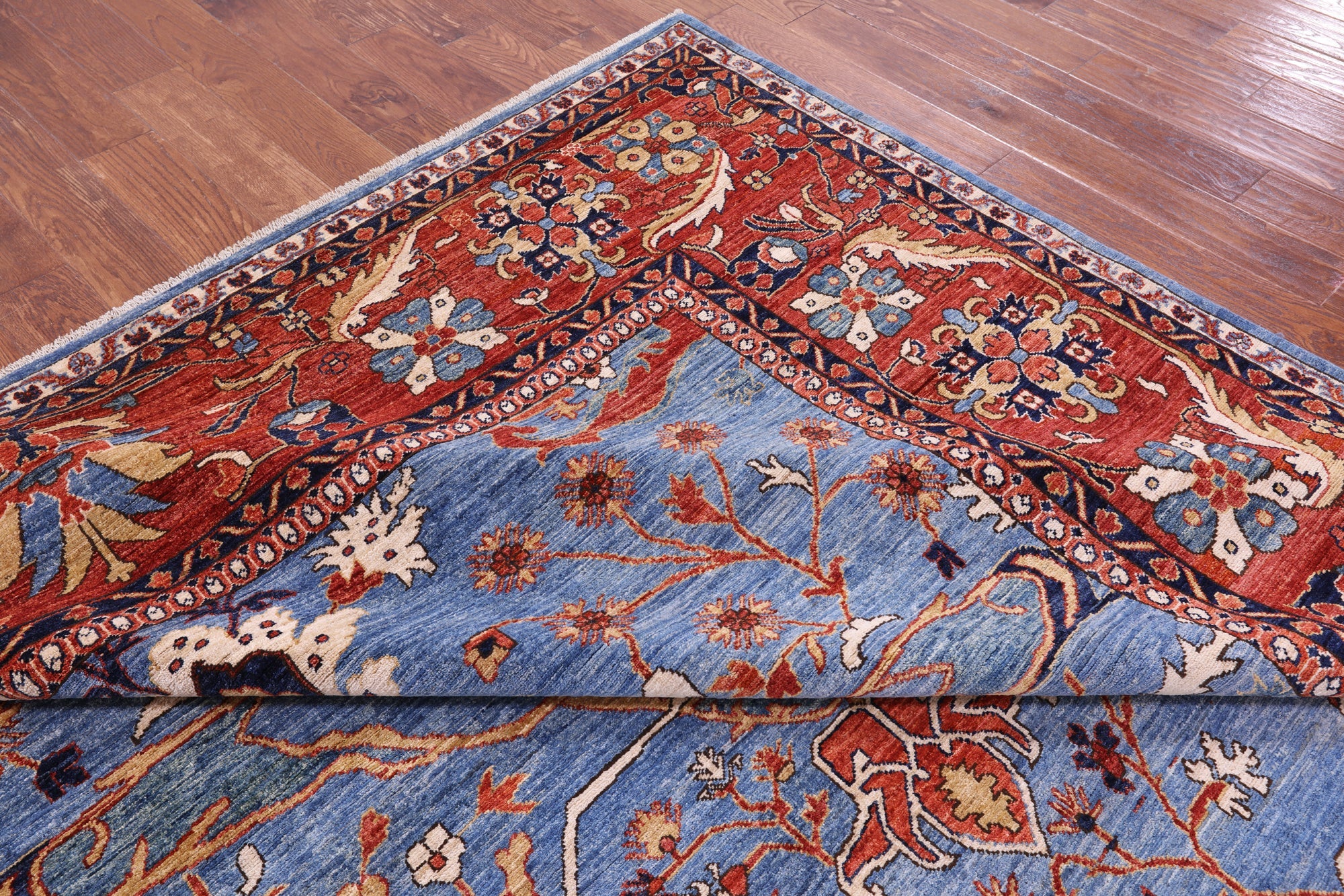 Blue 9' 1" X 11' 9" Hand Knotted Super Heriz Serapi Wool Rug - Q18641