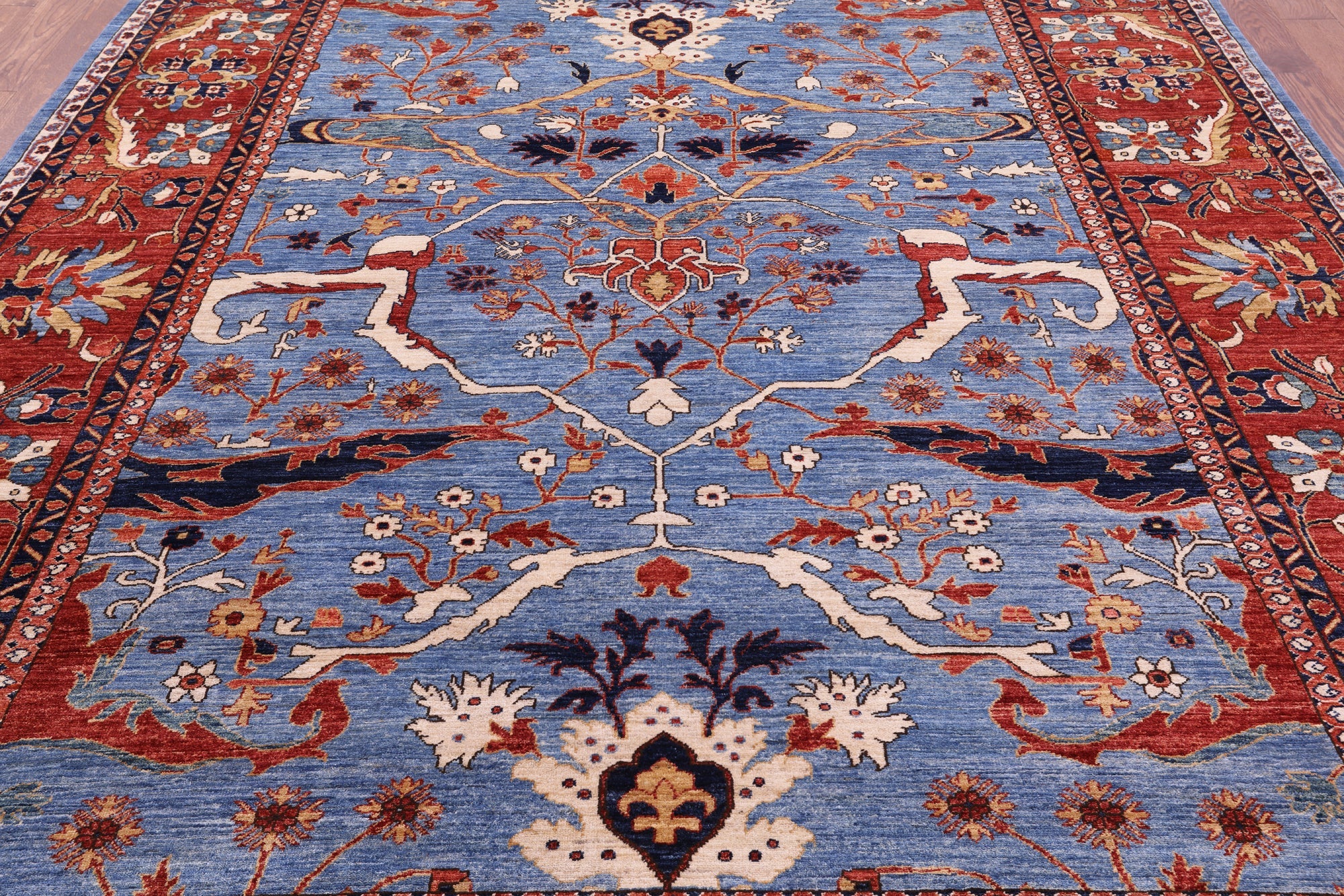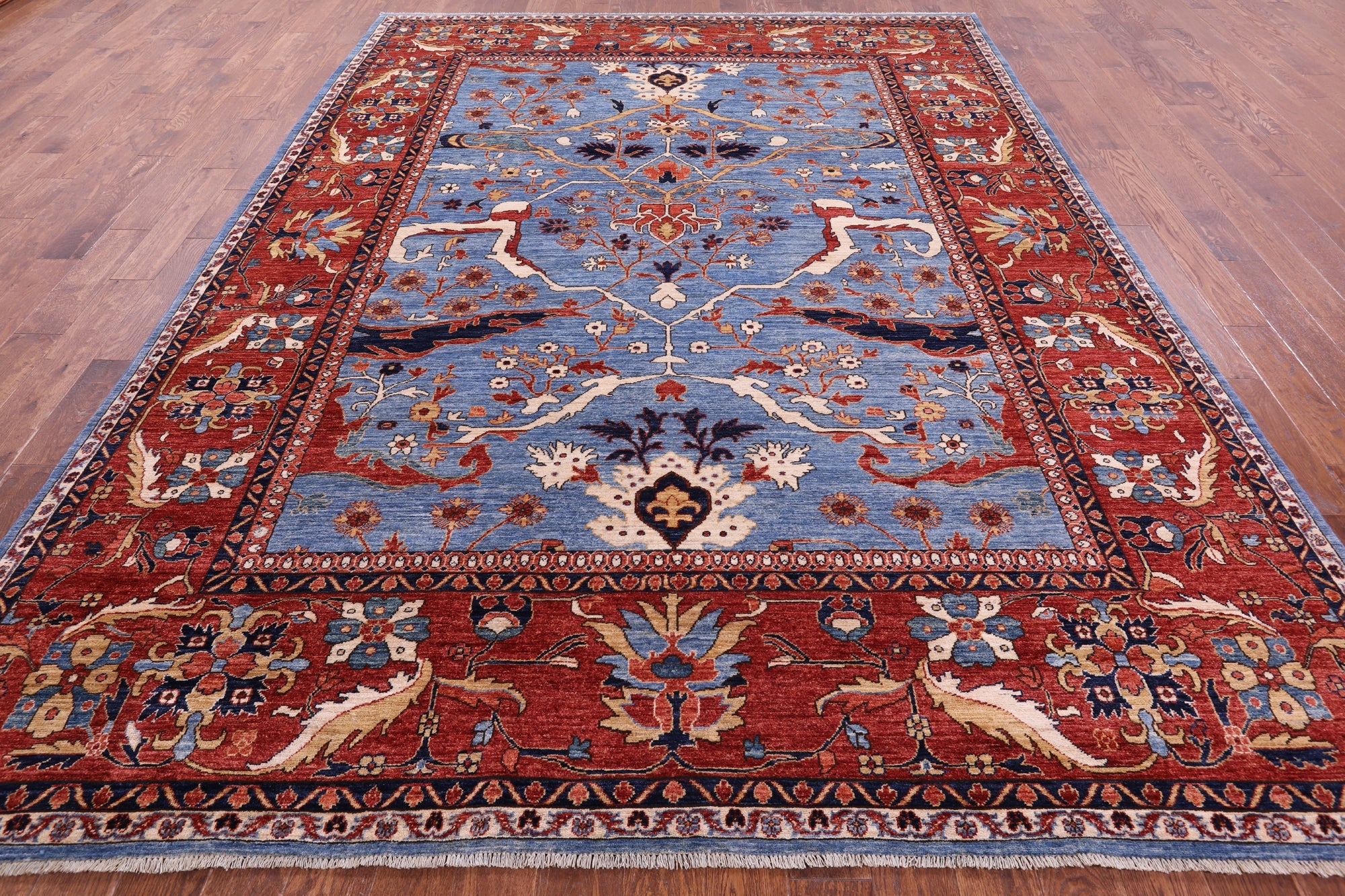 Heriz, Serapi rugs are well known for their bold and angular designs. Many being symmetric, they withhold boldly done geometric and floral-inspired shapes. These shapes are brought out with rich reds, blues, greens, and yellows contrasted against ivory. Heriz, Serapi rugs are very elegant and durable, perfect for a variety of different rooms and spaces within a home.
