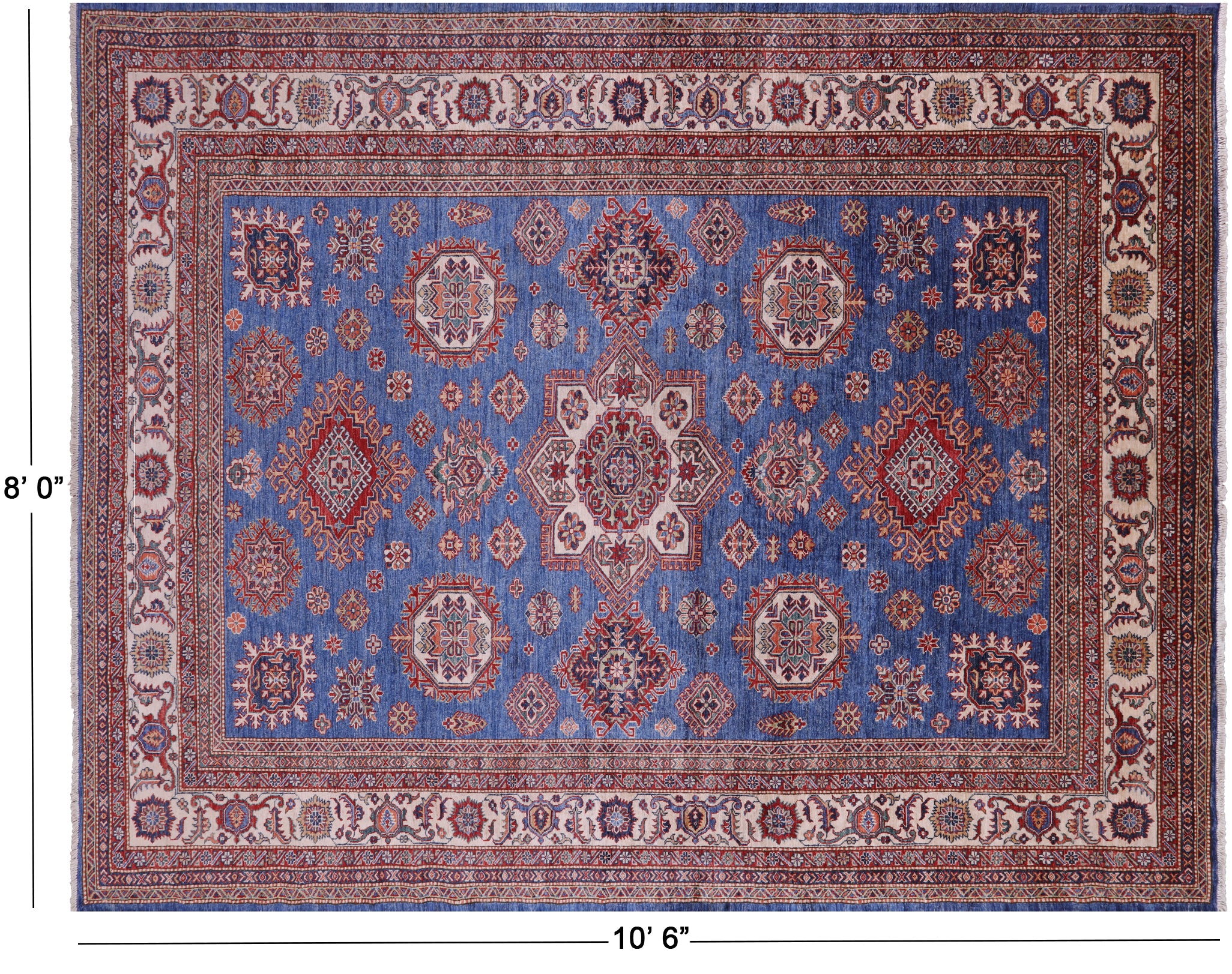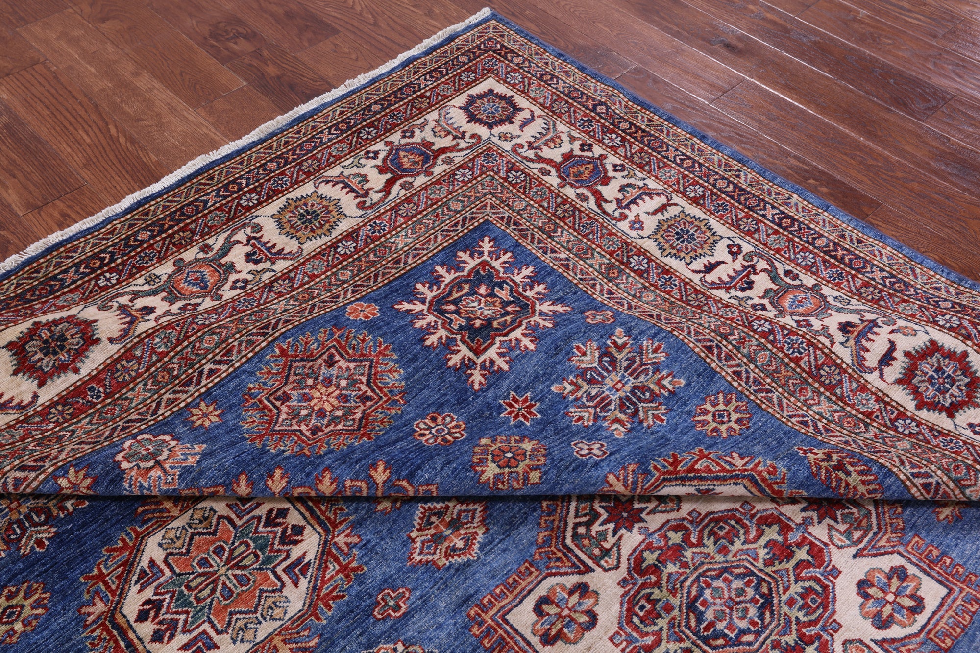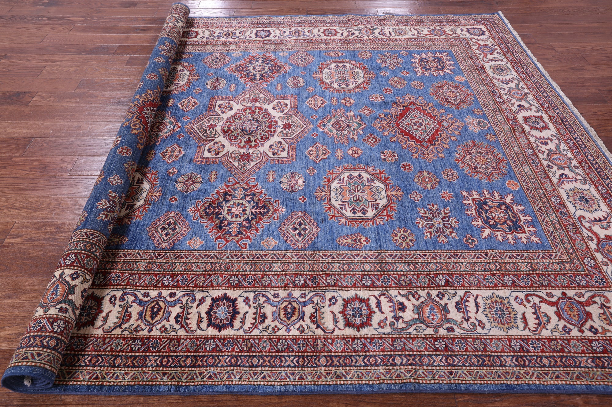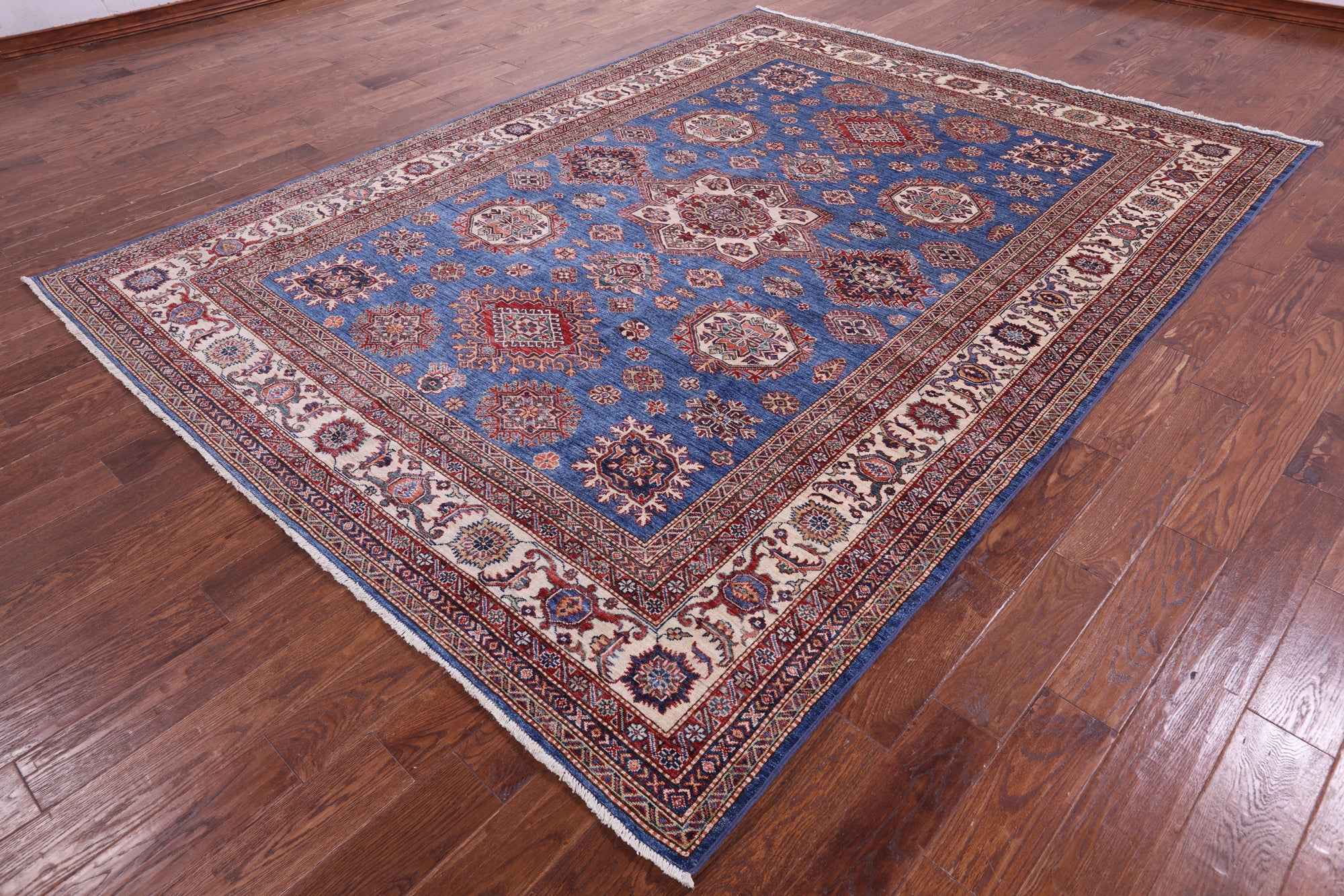 Blue Hand Knotted Super Kazak Wool Rug 8' 0" X 10' 6" - Q22042 is backordered and will ship as soon as it is back in stock.